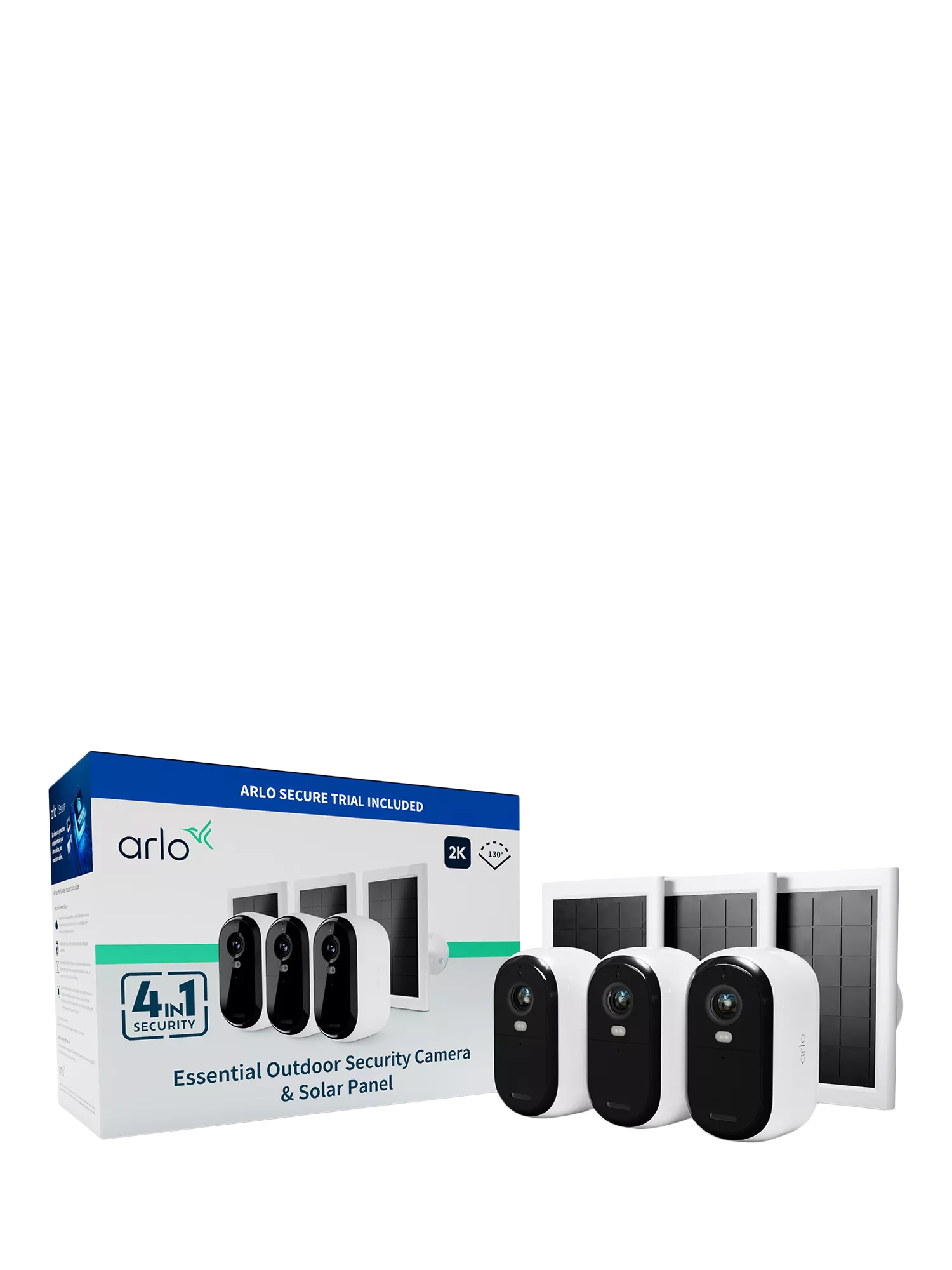 ArloEssential 2 Outdoor Wireless Smart Security System with Three 2K Cameras & Solar Panels, White