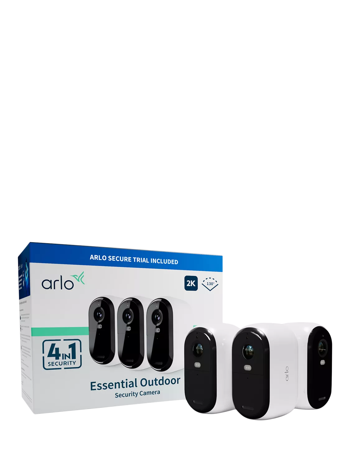 ArloEssential 2 Outdoor Wireless Smart Security System with Three 2K Cameras, White