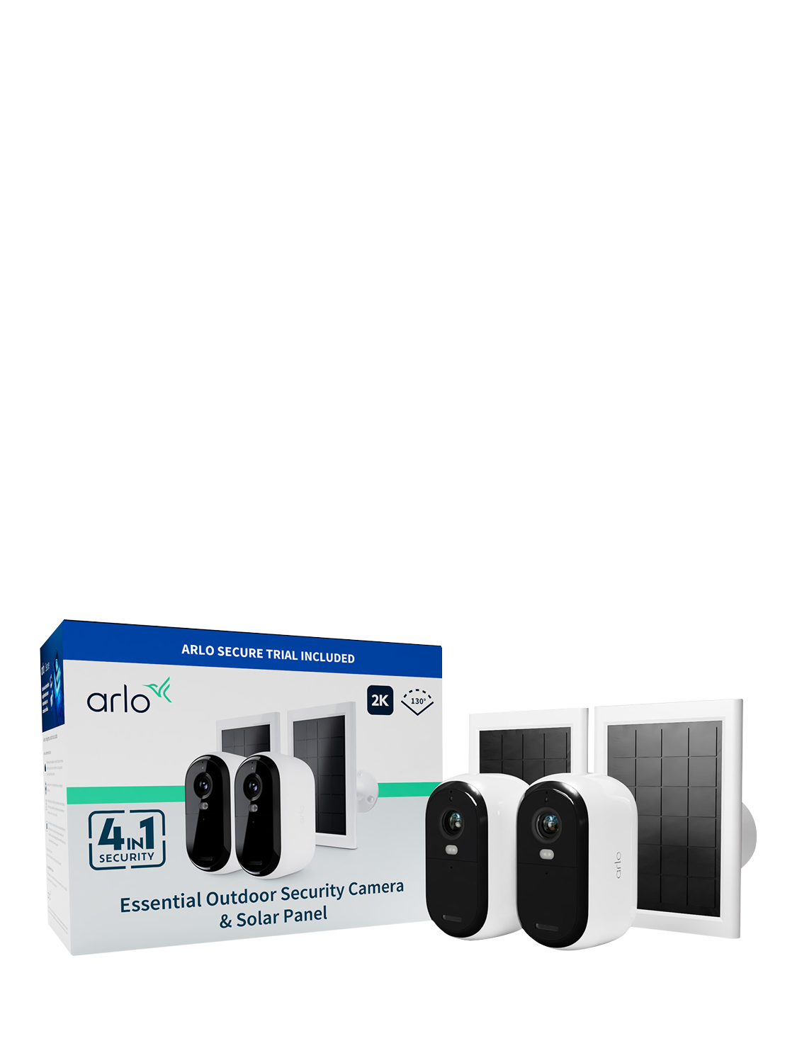 ArloEssential 2 Outdoor Wireless Smart Security System with Two 2K Cameras & Solar Panels, White