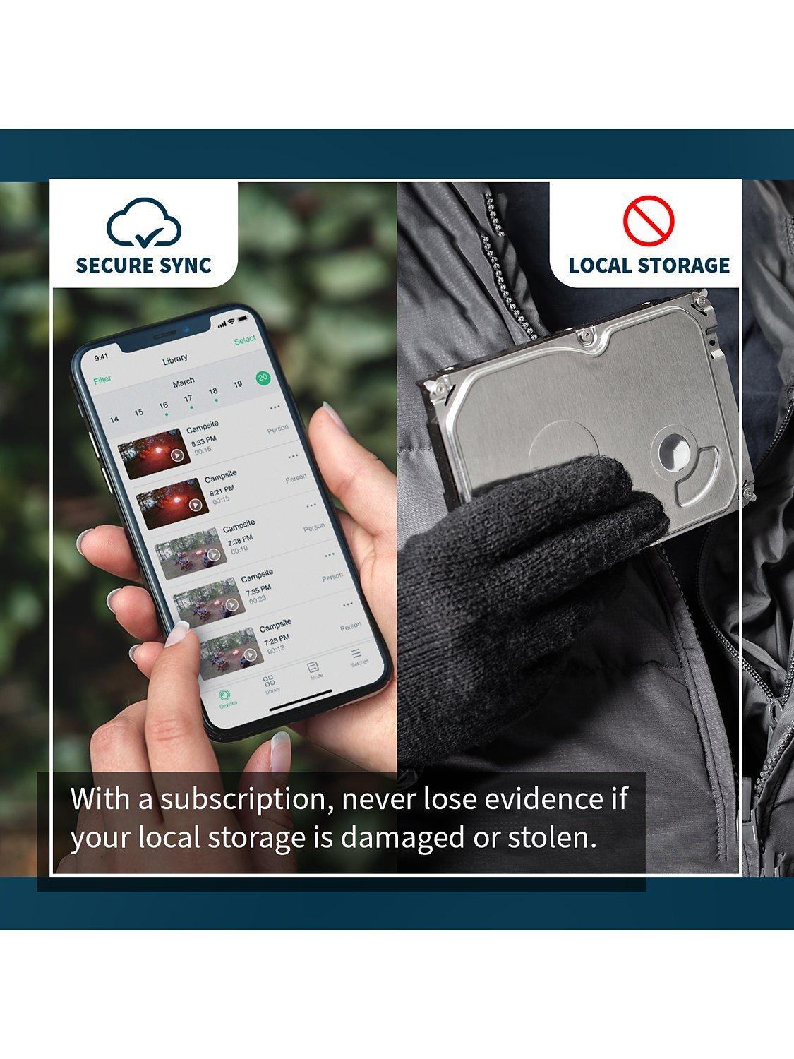 An Arlo Secure subscription (sold separately) backs up your videos securely to the cloud. With it, you can identify & prioritise people, cars, pets & packages, and focus with activity zones. Subscription also includes camera theft protection insurance. Without subscription, Arlo Cameras offer live stream, motion alerts and two-way talk direct to your mobile. Paired with a base station, local storage is also an option. CCTV: For ultimate protection plug your camera into mains power and add CVR (Continuous Video Recording) to your subscription for CCTV style 24/7 recording. A free 90-day trial of Arlo Secure Subscription is included as standard.