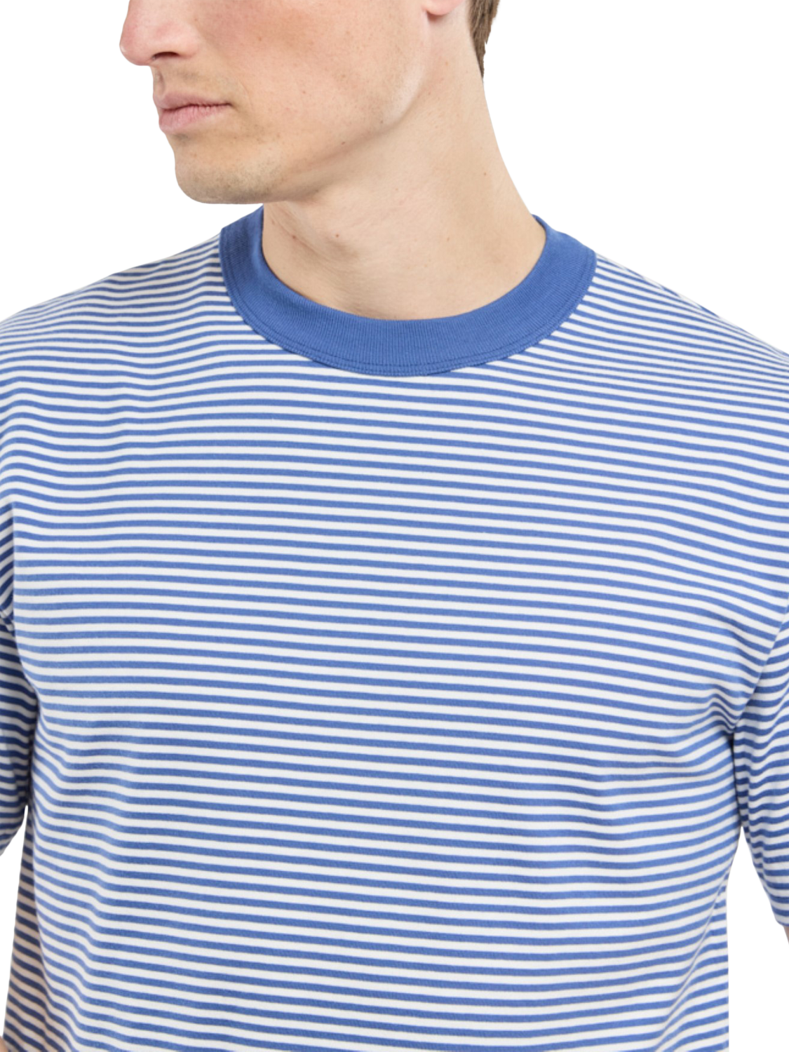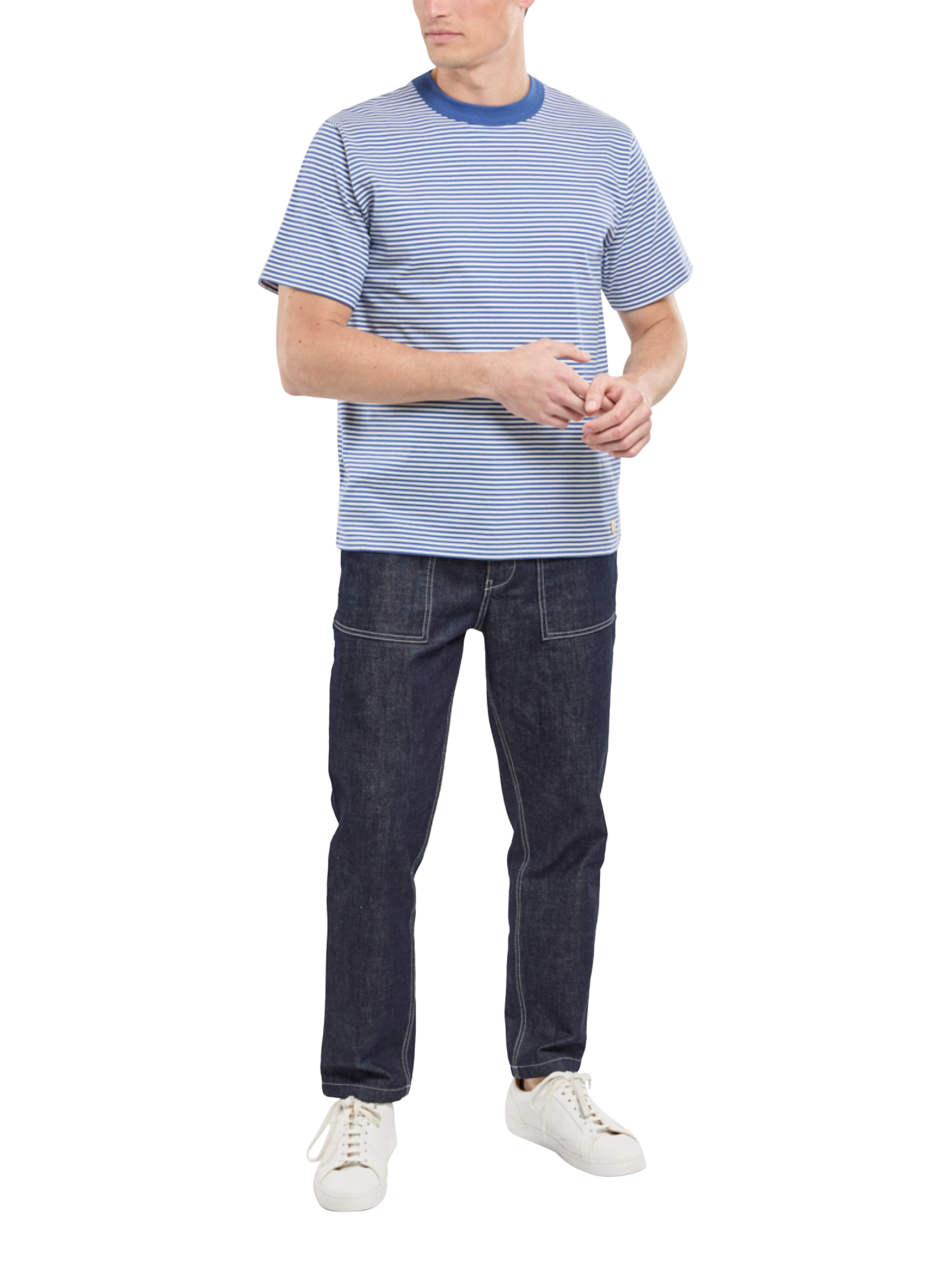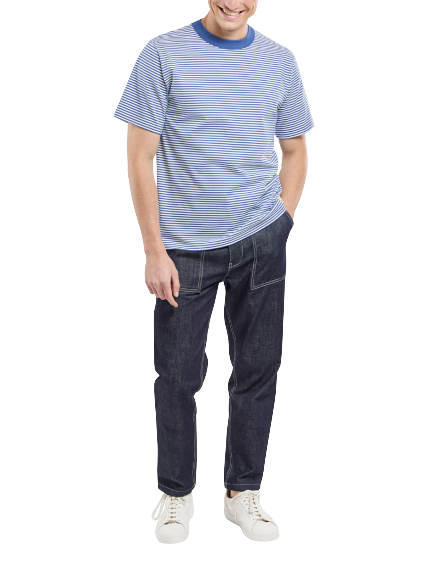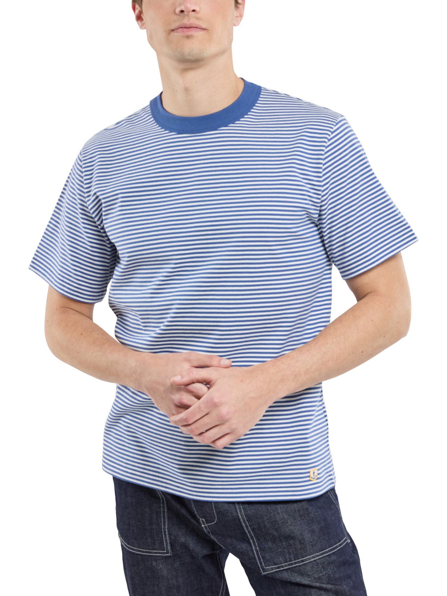 Bolster your staples with this cotton crew neck t-shirt by Armor Lux. Slicked from one side to the other with naval stripes, chinos should be your go-to for this one.