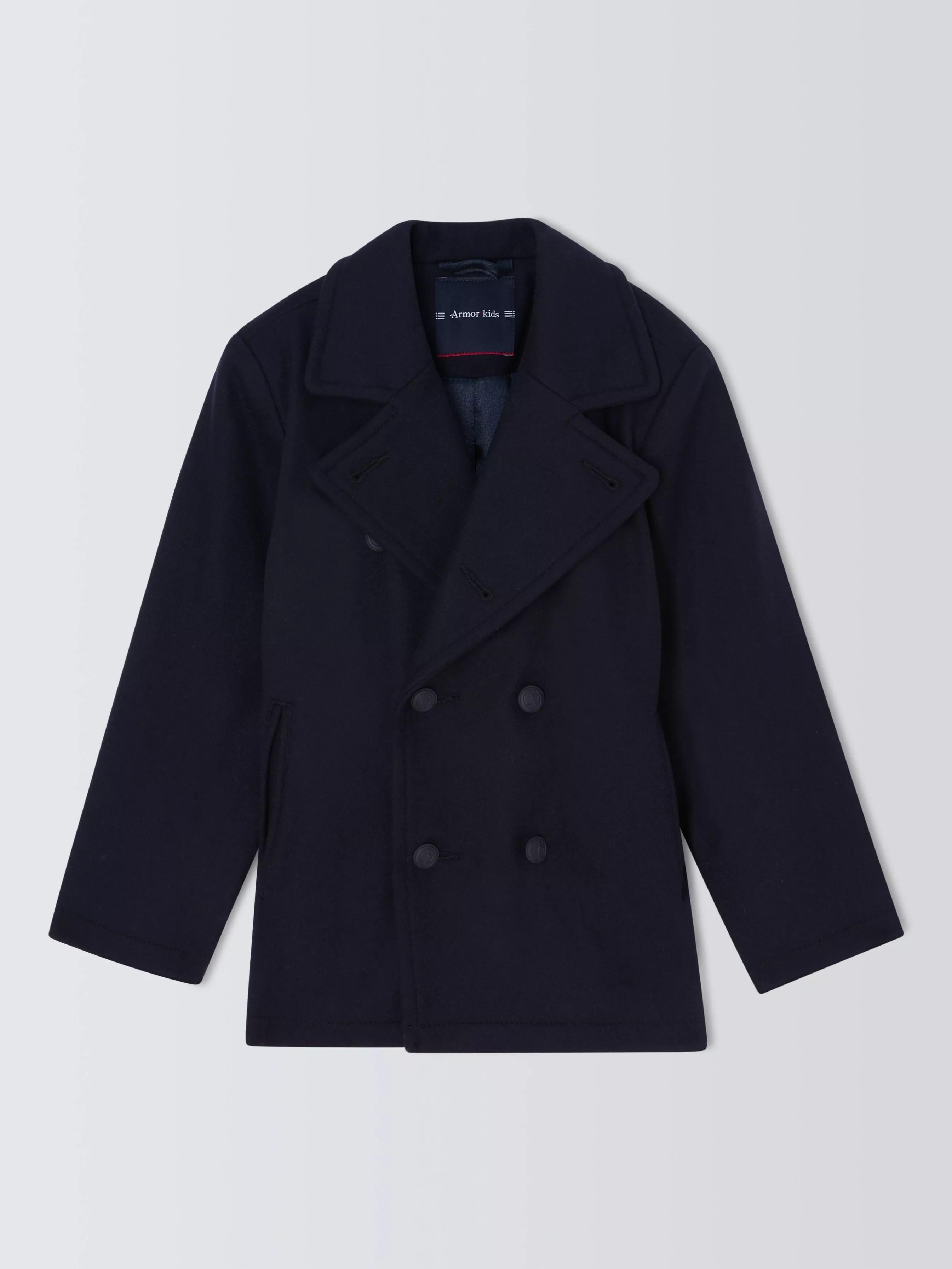 This authentic woollen peacoat is ideal for protecting little sailors from the cold and bad weather. Featuring two hand-warmer pockets, a wide collar, double-breasted silhouette with engraved shank buttons and a matching lining.