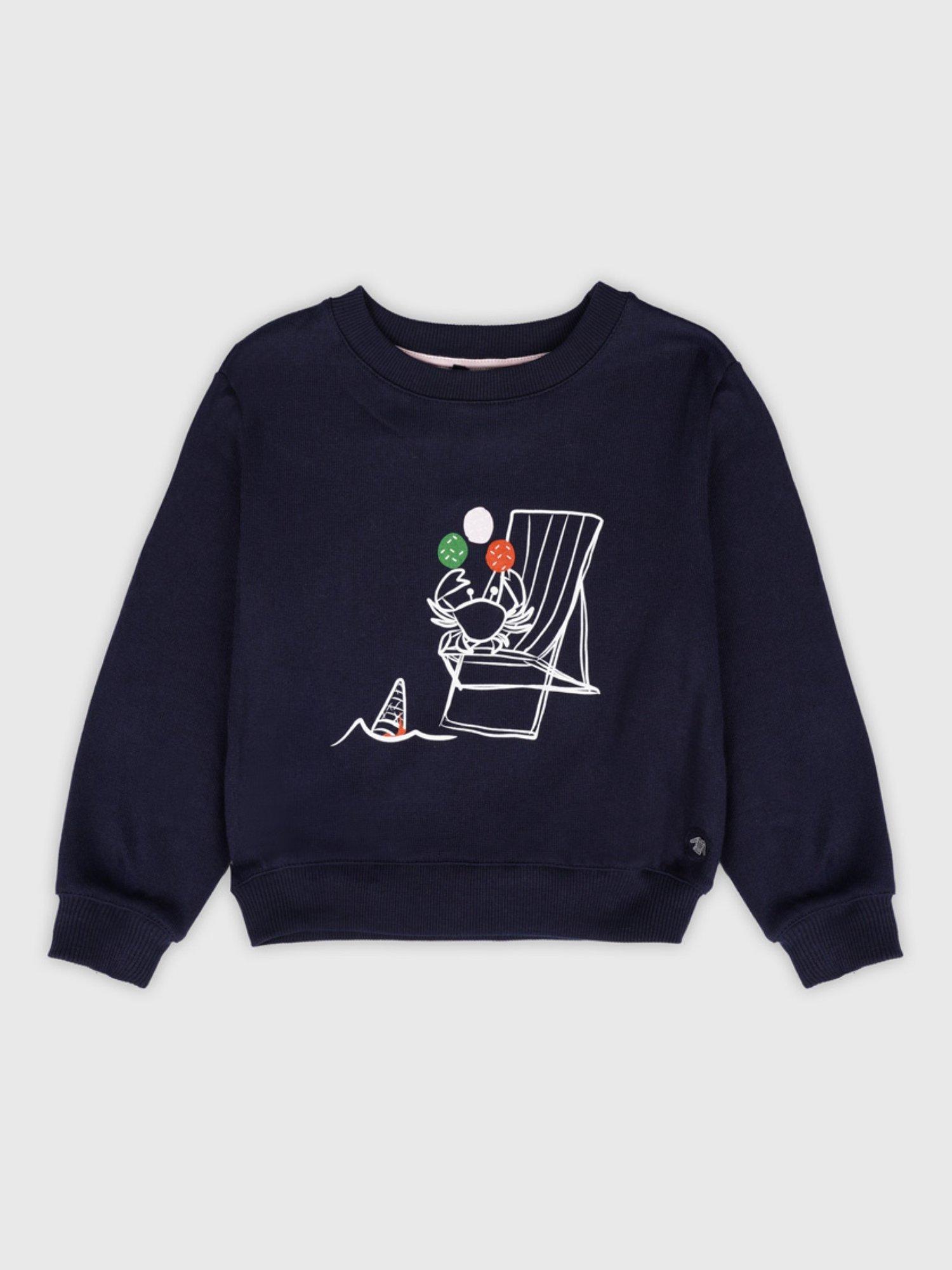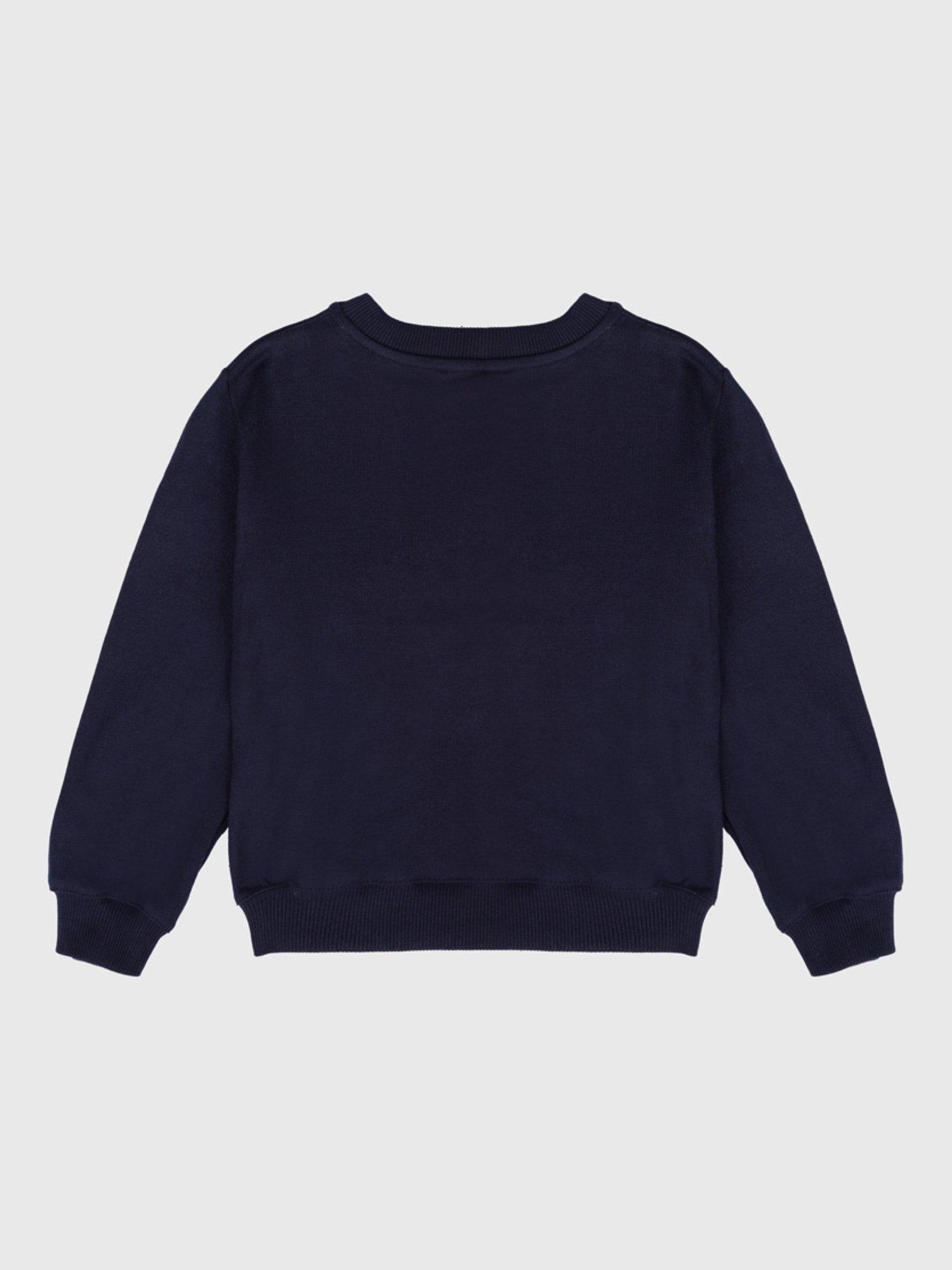 This fun sweatshirt has a multicoloured large chest print with ribbed cuffs and bottom body hem. A crew neck, rustic knit and brand badge at bottom of garment complete the look.