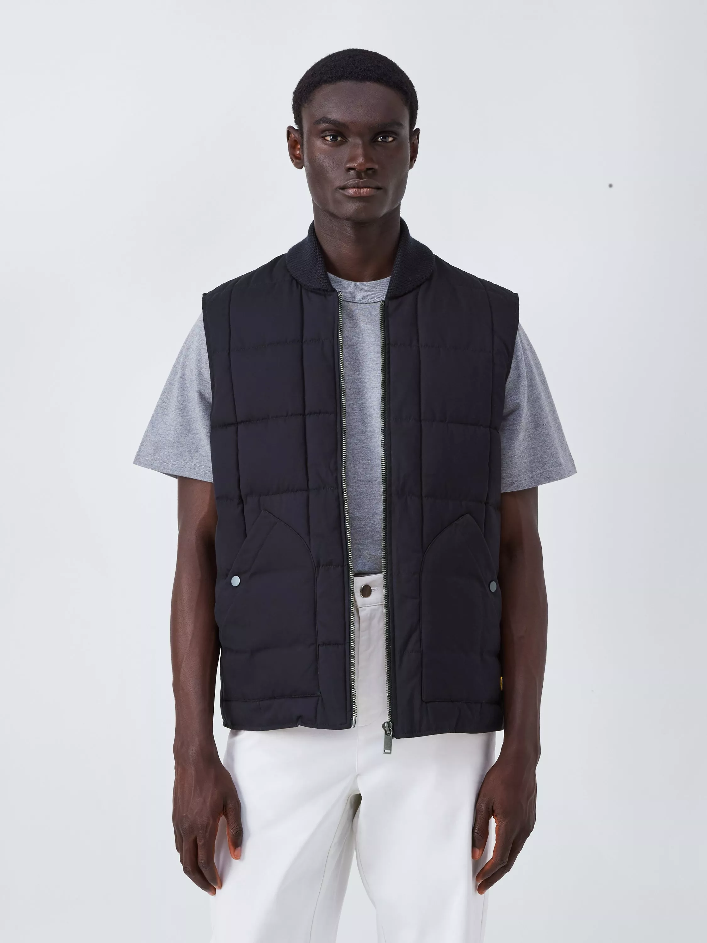 A sleeveless quilted gilet from Armor Lux, featuring a contrasted lining and Ribbed neck trim for added comfort.