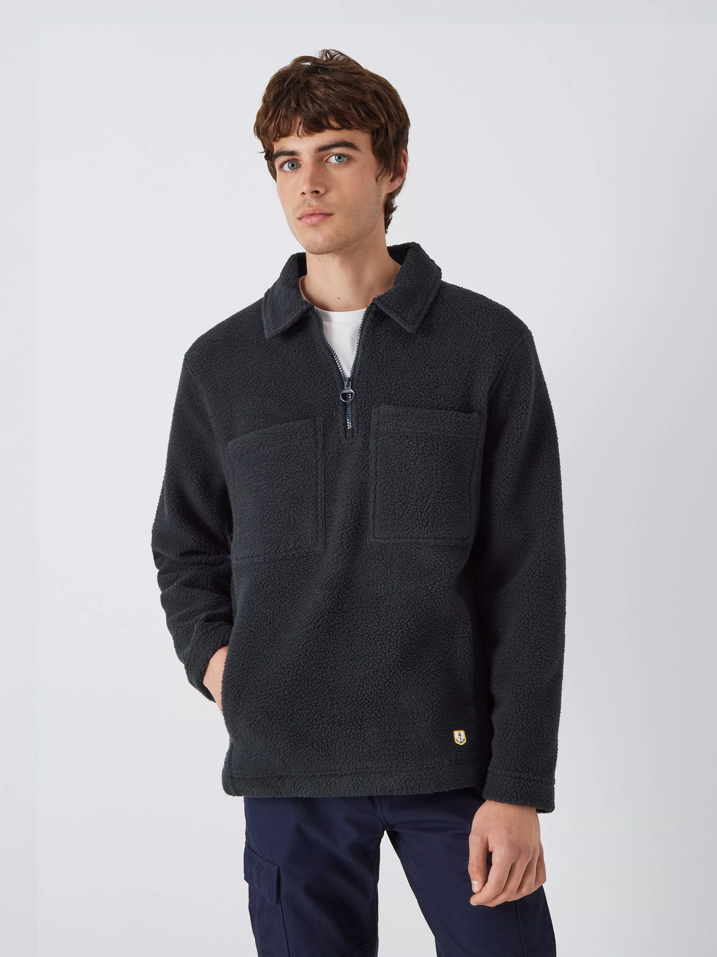 Keep trends simple with this effortlessly cool sherpa style microfleece sweatshirt. With a zipped collar, two chest pockets and 2 front pockets it has lots of practical storage solutions. An anchor badge at the bottom of shirt adds a defining brand detail.