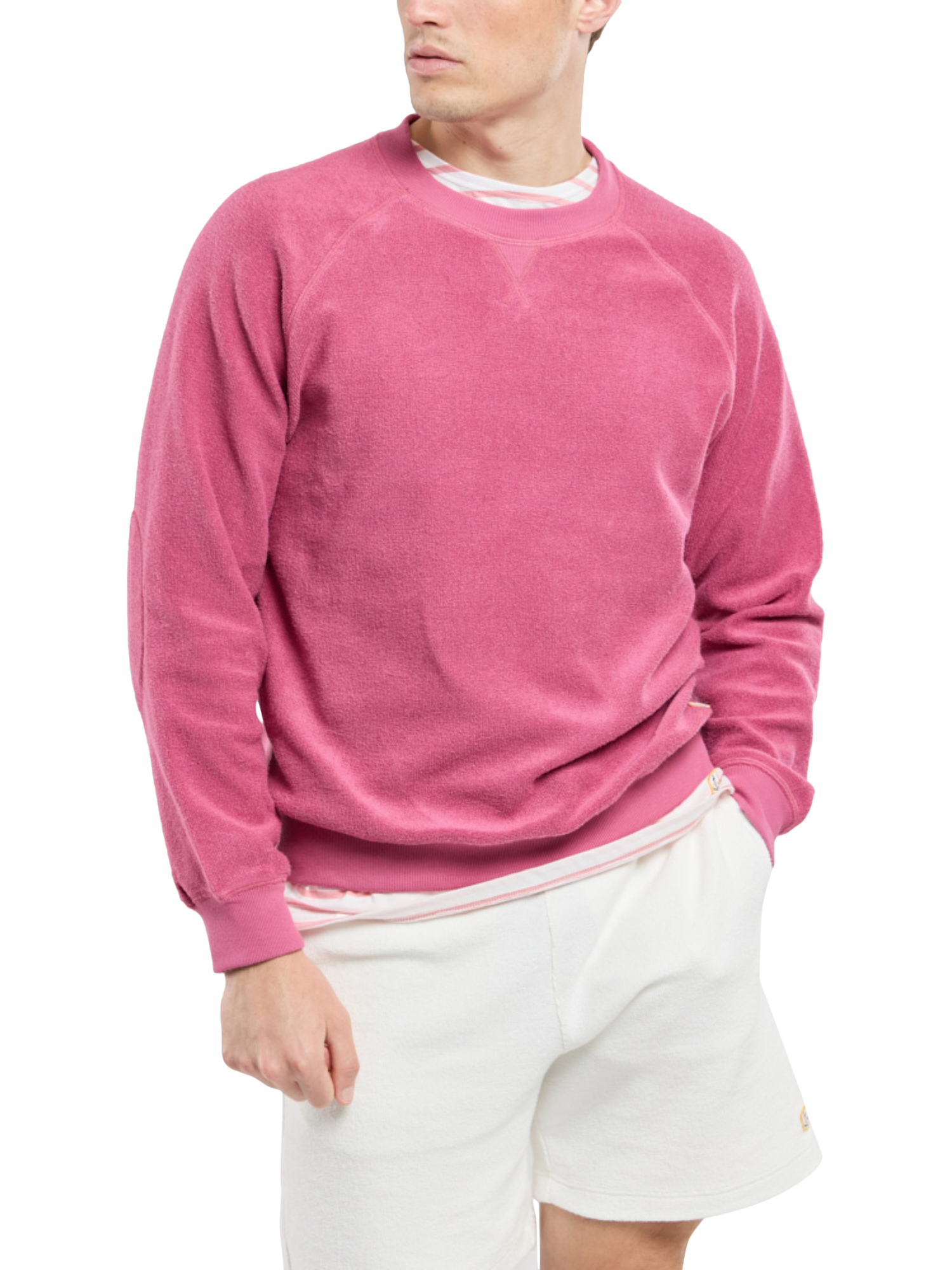 Crafted from terry cotton, this comfy sweatshirt is cut with a crew neck and features tone-on-tone elbow patches.