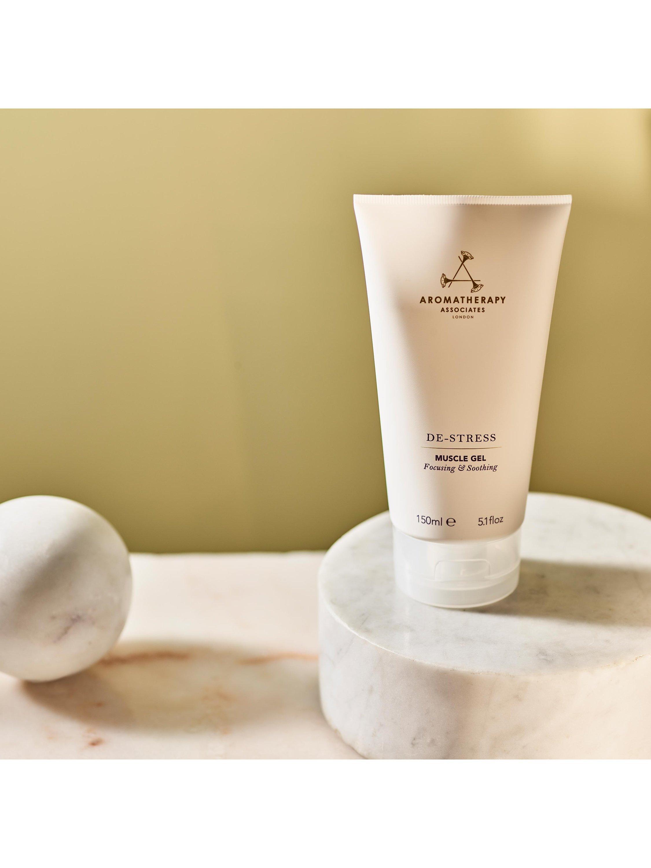 - DE-STRESS MUSCLE GEL Focusing and Soothing. Experience the warming and easing powers of rosemary, black pepper, lavender and ginger to de-stress your body after spending too long in one position or after too much physical activity The Ritual Apply generously and massage into overworked joints and muscles as often as necessary. Sensible cautions Not recommended during pregnancy. For adults only. If suffering from a medical condition seek advice from a doctor before use. Keep out of reach of chi