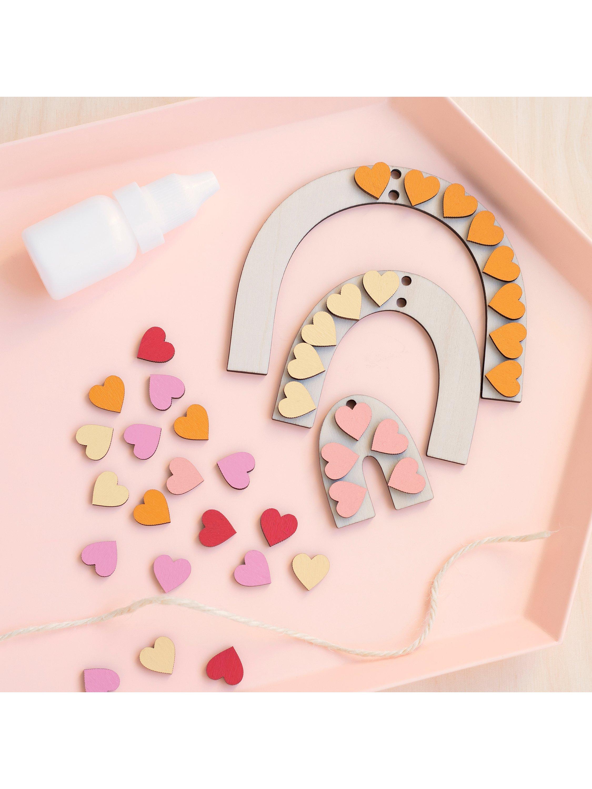 Featuring ombre coloured hearts in lovely warm hues, the finished rainbow is sure to brighten your home. With the helpful step-by-step instructions to guide you, combine wood with the joys of making to turn nature into art. This kit has been designed for all levels of makers to enjoy.