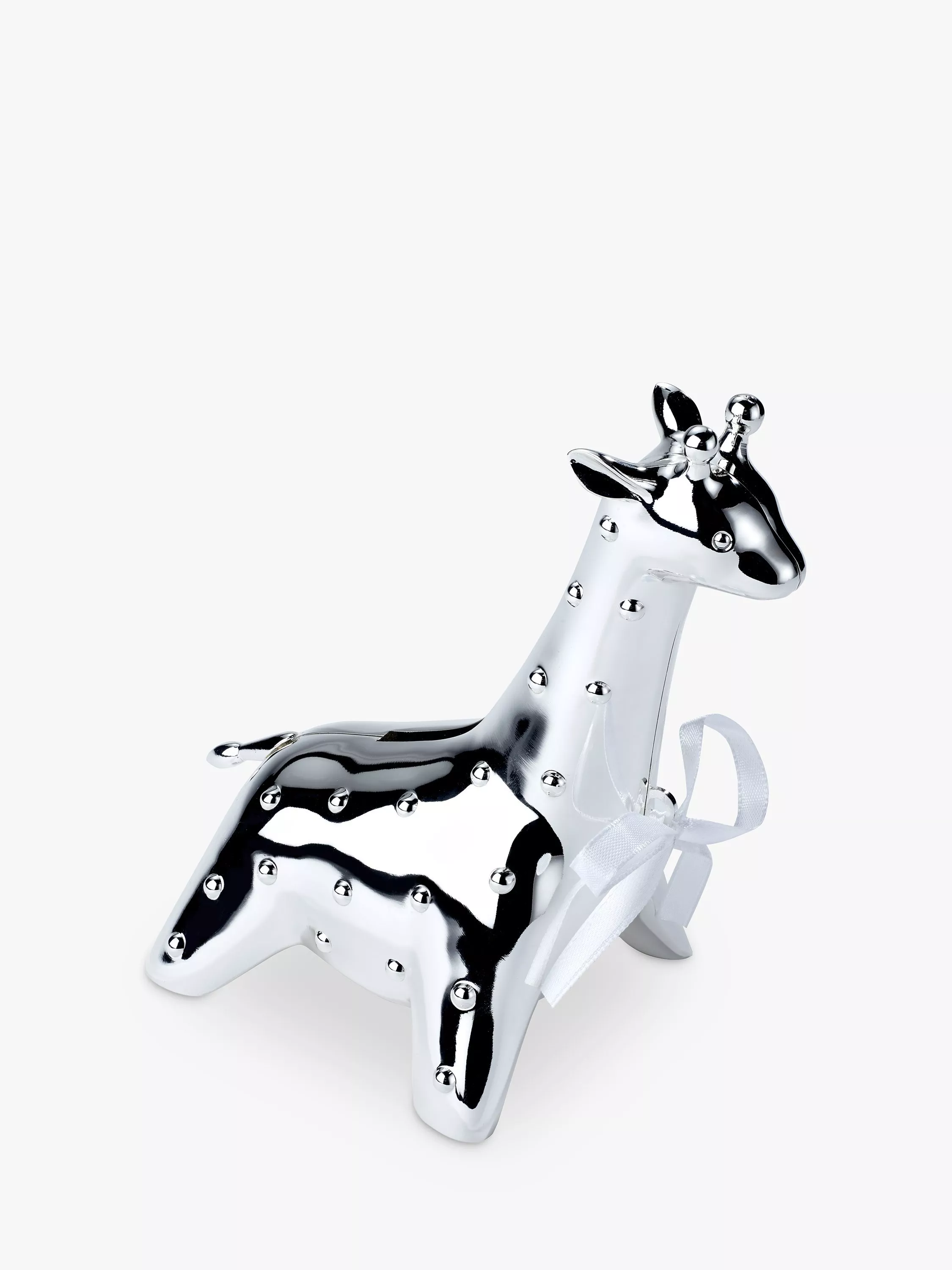 The perfect gift to kickstart a newborn's savings this giraffe money box from Arthur Price is silver-plated and finished with a sweet white ribbon bow.