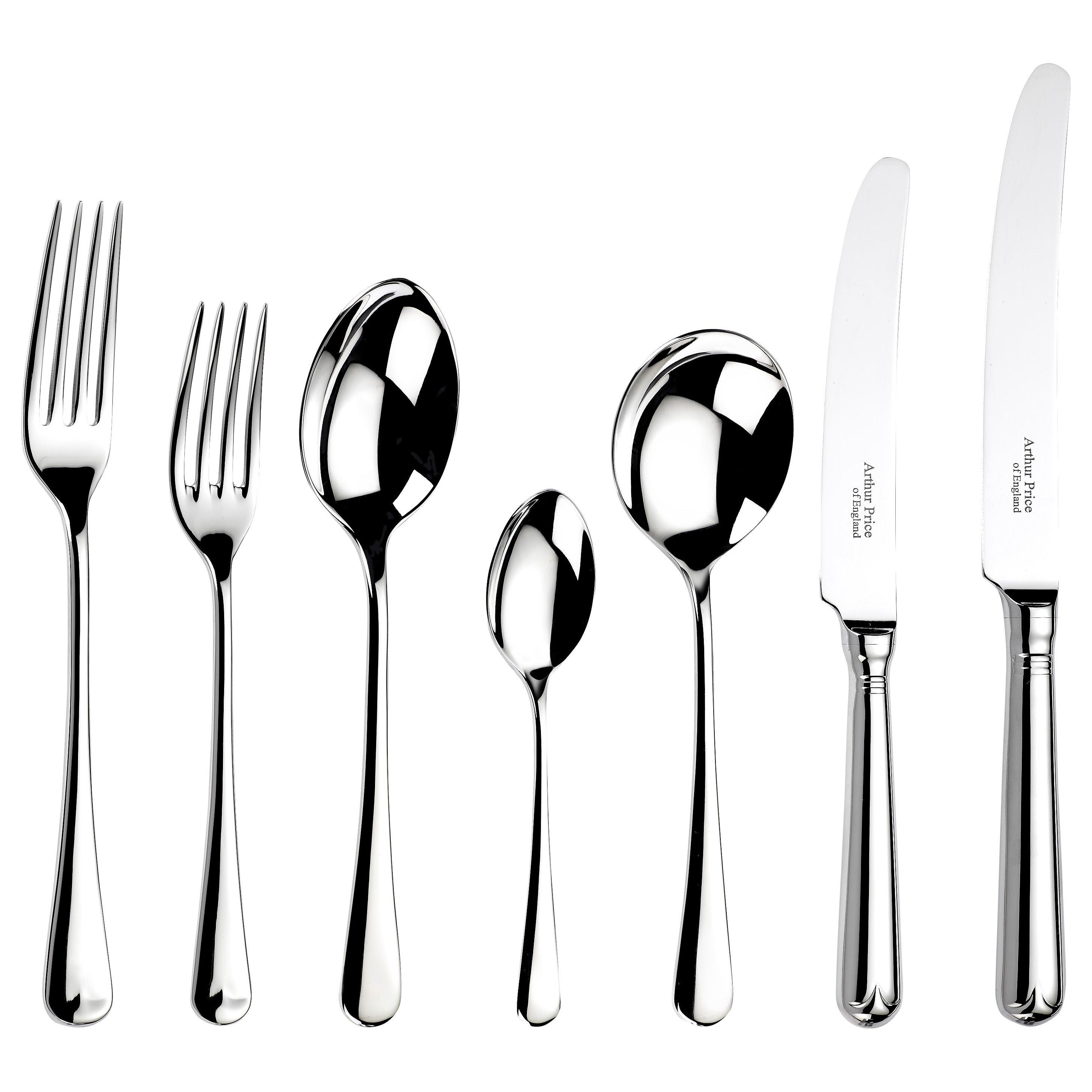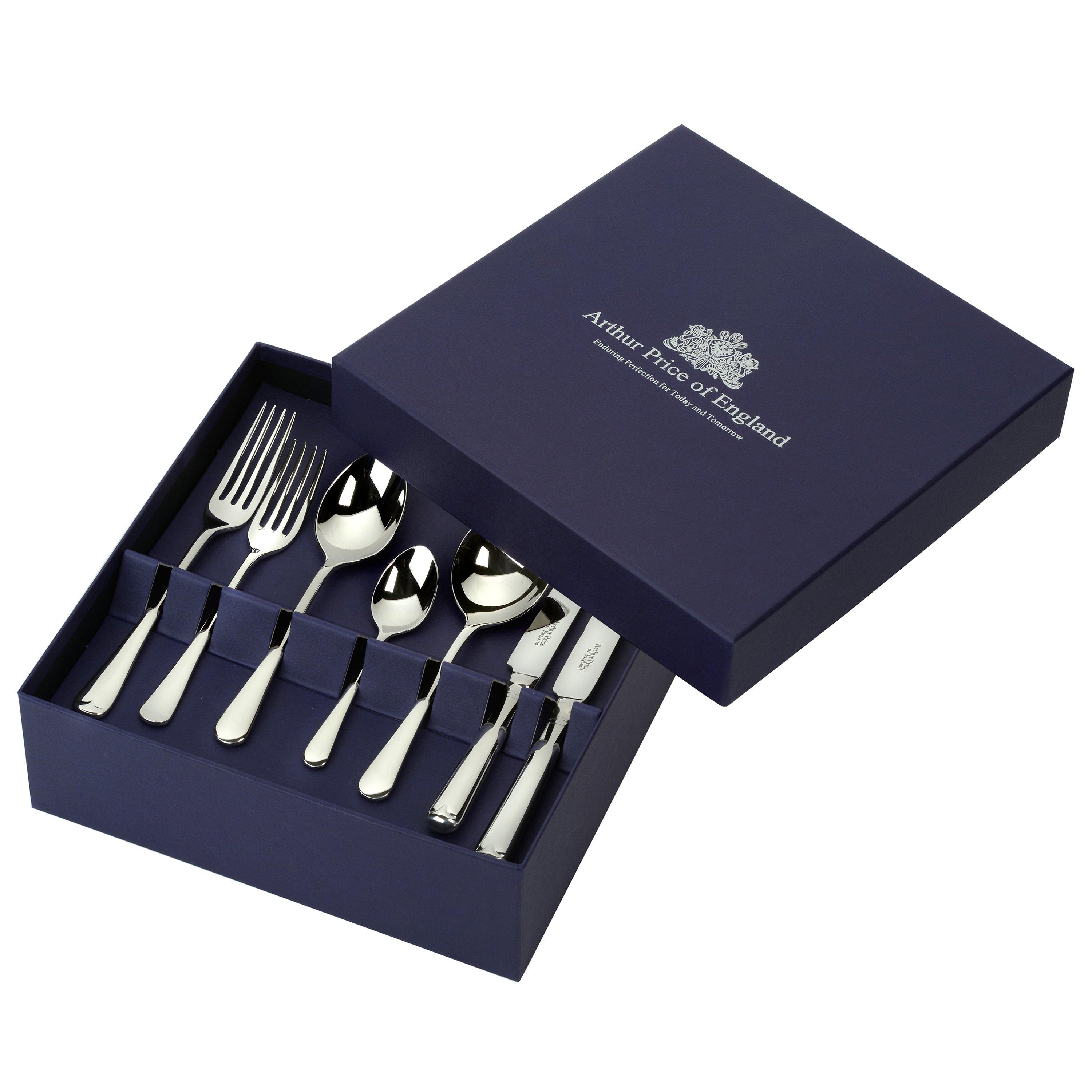 The 56-piece cutlery set is for eight people. It's guaranteed for 50 years and is dishwasher safe for easy and hygienic cleaning. The cutlery set is presented in a stylish Arthur Price gift box.