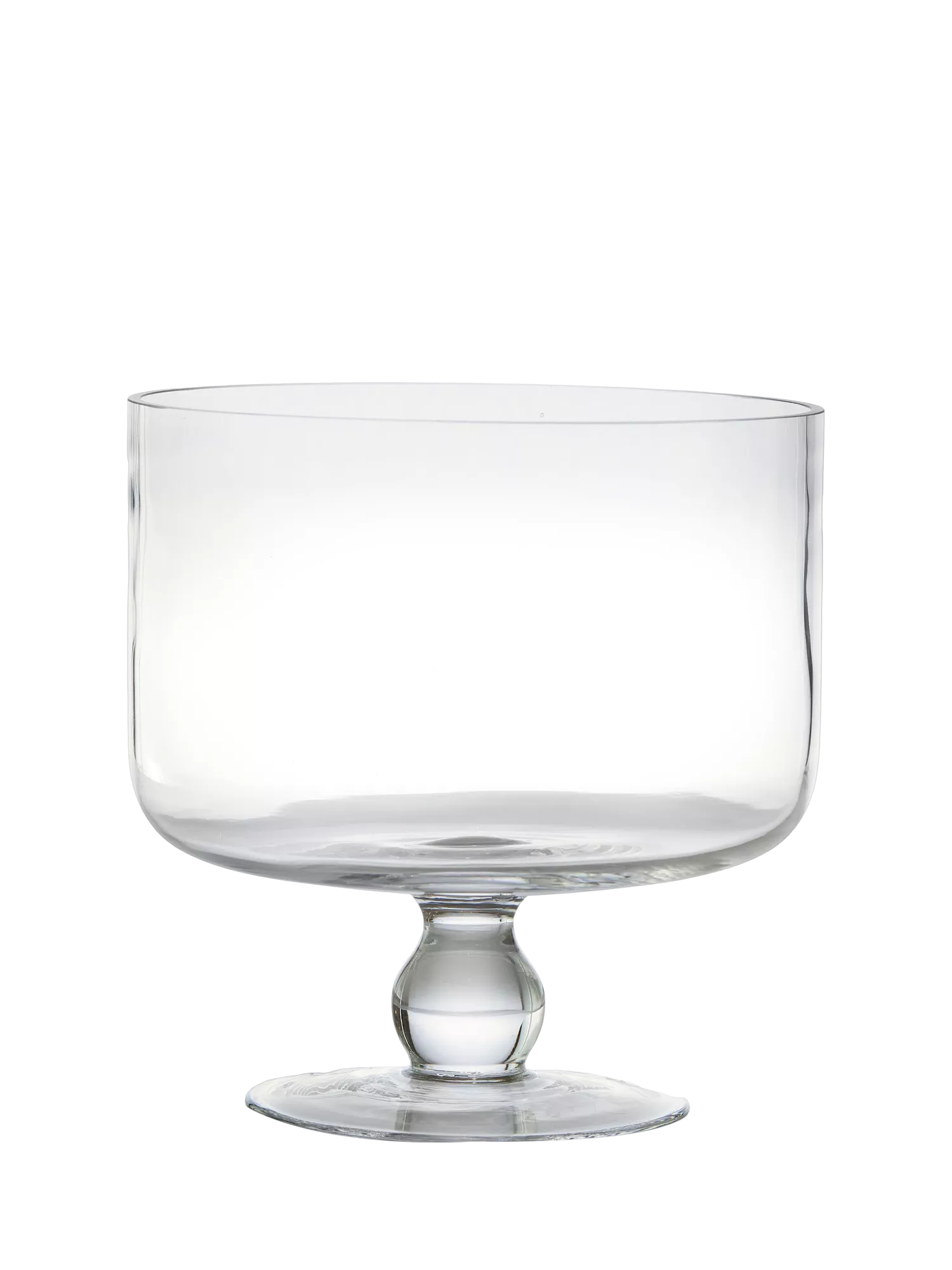 Extra-deep trifle bowl with straight sides, allowing for an equal covering of each layer of the trifle. The handmade glassware has a short, elegant stem. Ideal as a fruit bowl display, too.