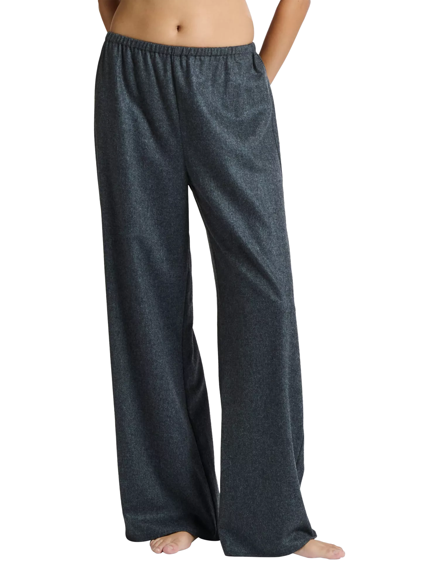 The Austin Trouser is an elevated everyday staple, crafted from a neutral wool cashmere flannel blend; the ultimate winter go-to. The silhouette is an elevated take on a classic pyjama trouser, featuring a slim elasticated waist and a loose wide leg. This luxe trouser is the ultimate versatile piece for both relaxing at home.