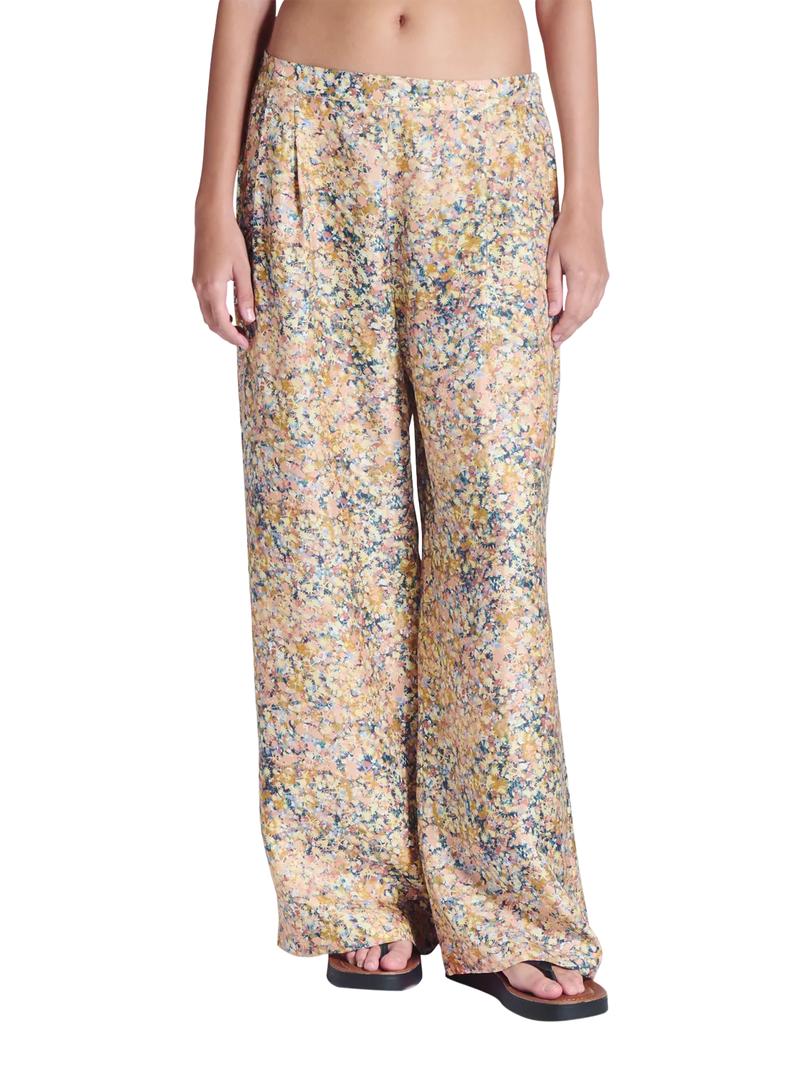 The Isola trouser is cut from silk twill in the ASCENO's Beachscape print. An ideal balance between loungewear and an off-duty vacation staple, with its relaxed straight leg and mid-rise waist. The trousers are elevated by tailored elements in the pleated leg and discreet pockets.