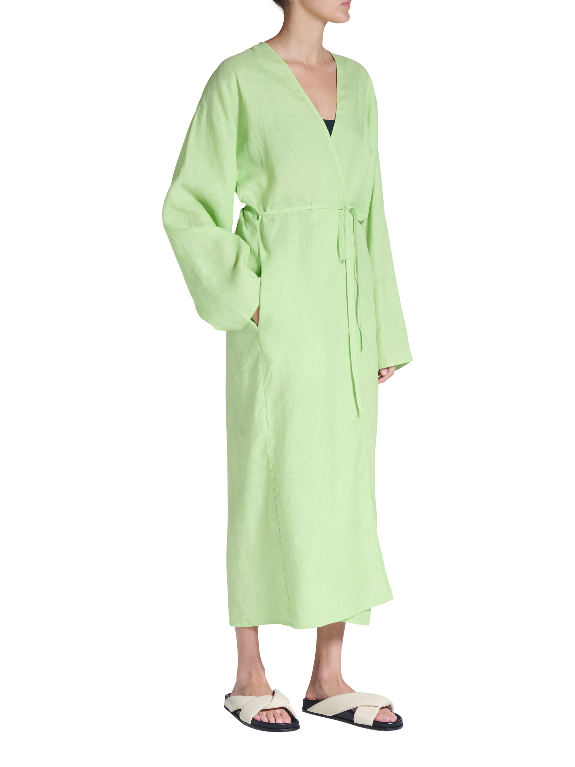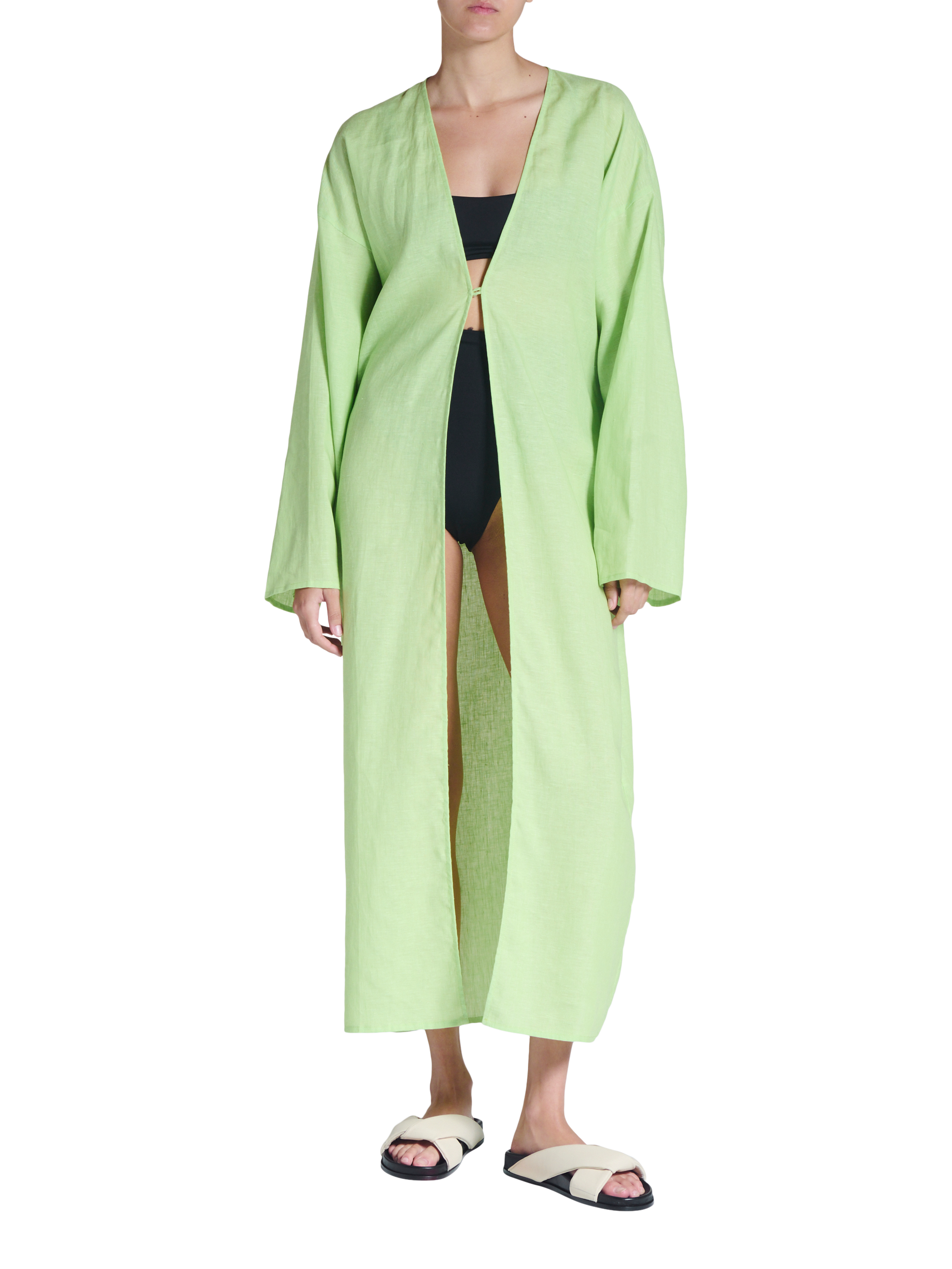 ASCENO's Lorenzo robe is a versatile beach-side design that can be styled over swimwear, closed with the hidden singular button closure or cinched with the optional tie belt. It is also crafted from lightweight linen for maximum comfort.