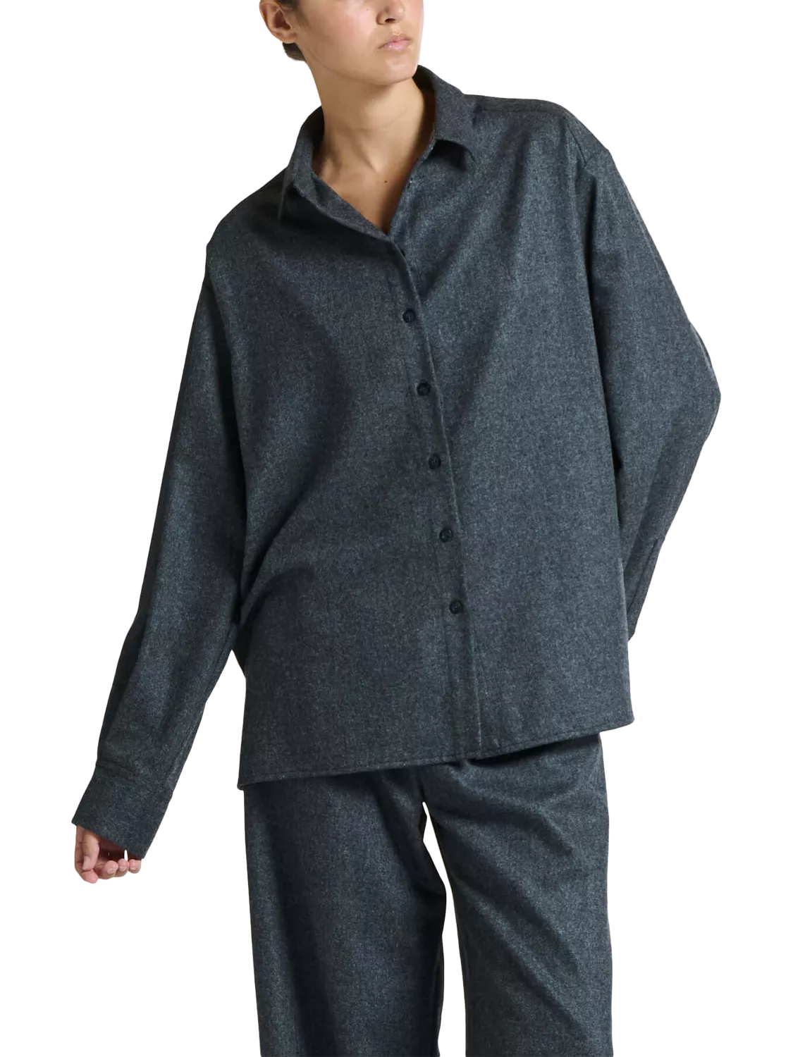 The Maya shirt is a take on a classic menswear button-up shirt with a straight-cut hem, crafted from a luxe wool cashmere. The body features a relaxed fit with subtle side-split hems to elevate the shirt. This piece is perfect for winter layering.