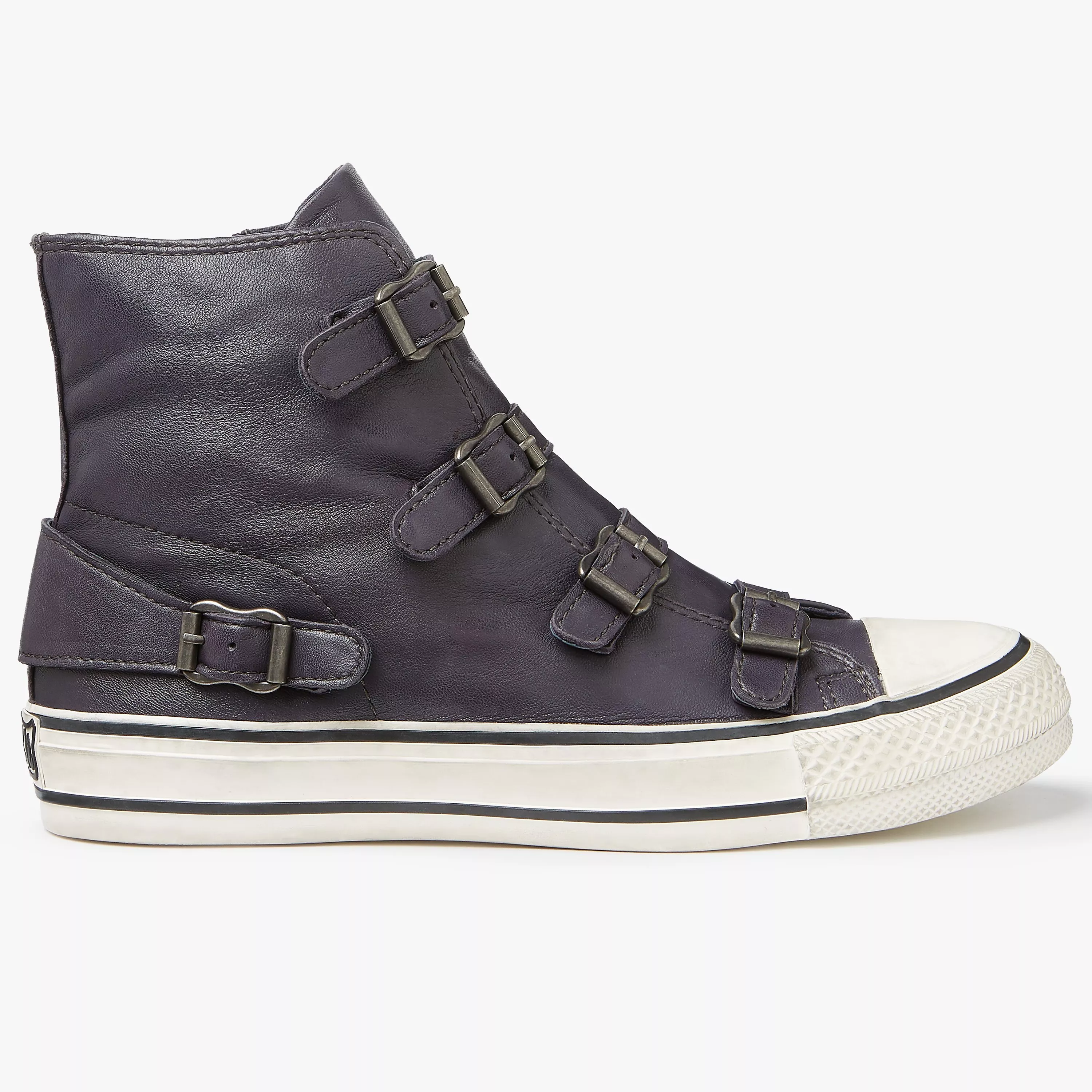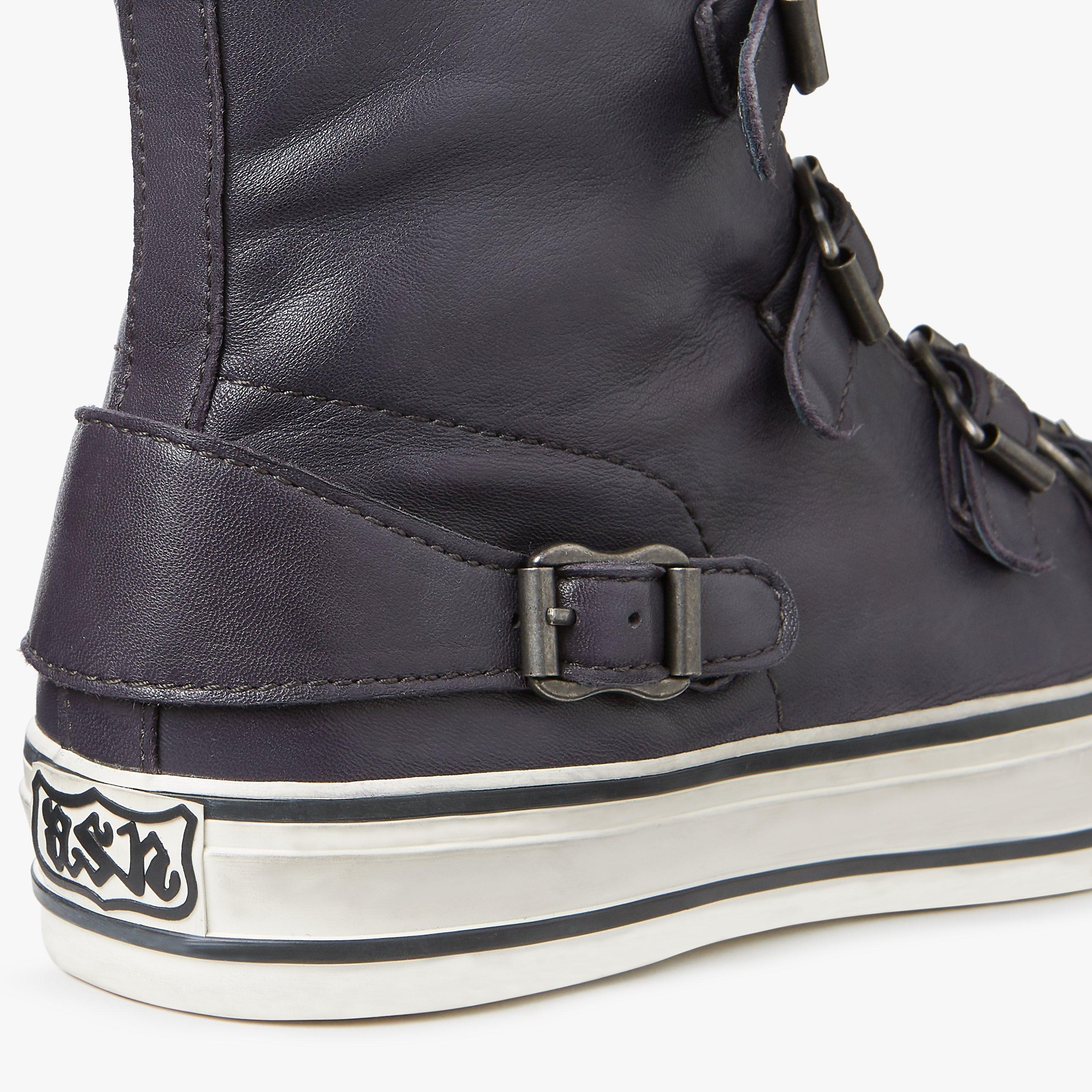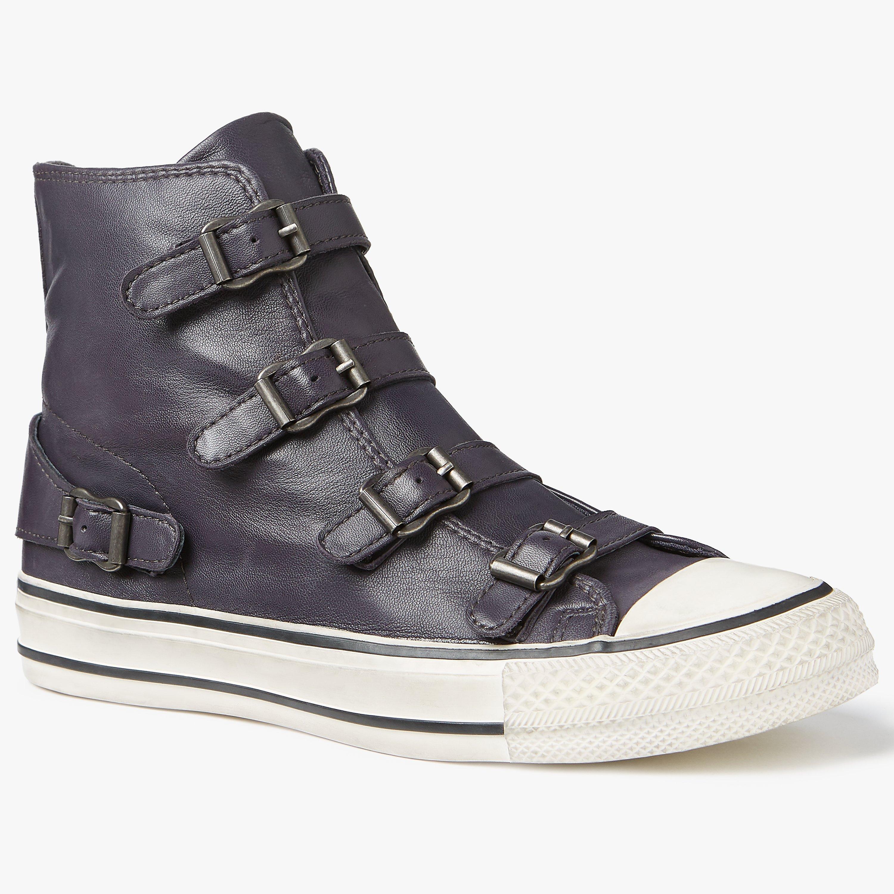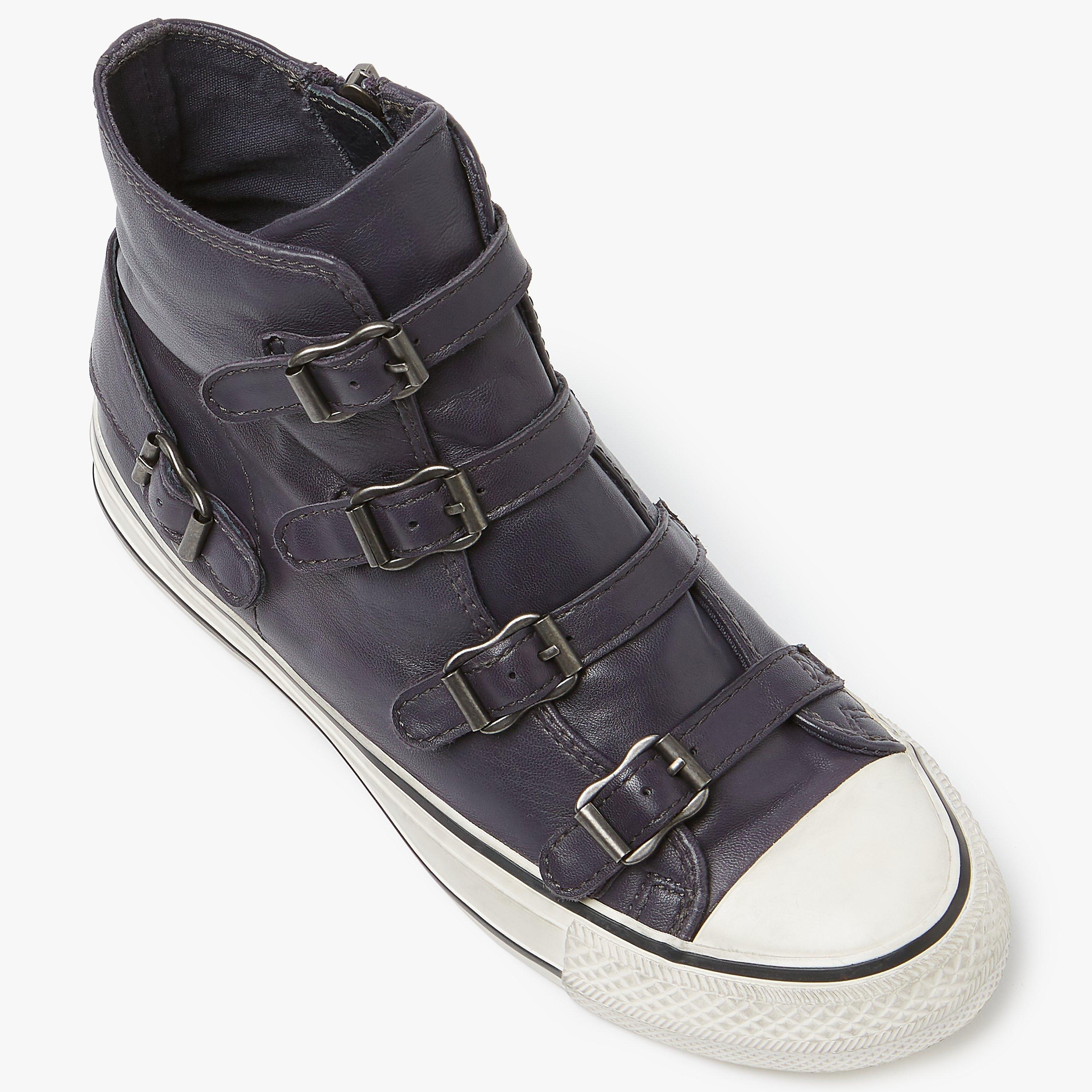 Bring a touch of edgy appeal to your casual assortment with these Virgin trainers from Ash. Featuring a high top design with multiple buckles across the front for decorative effect, a simple zip fastening at the side and and a striped sole.