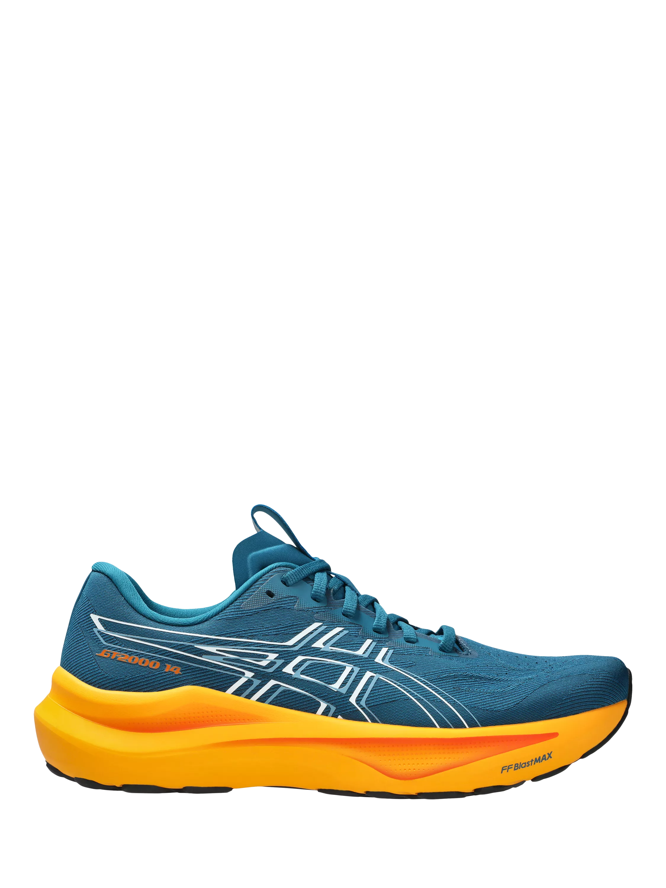 The GT-2000™ 14 shoe is designed to help provide a more energetic ride and a supportive running experience. A trampoline outsole pod is positioned in the center of the outsole. This helps produce a more responsive toe-off. The midsole is updated with a FF BLAST™ MAX cushioning unit. Creating a more energized toe-off, this foam also offers cloud-like softness during the landing phase of your stride.