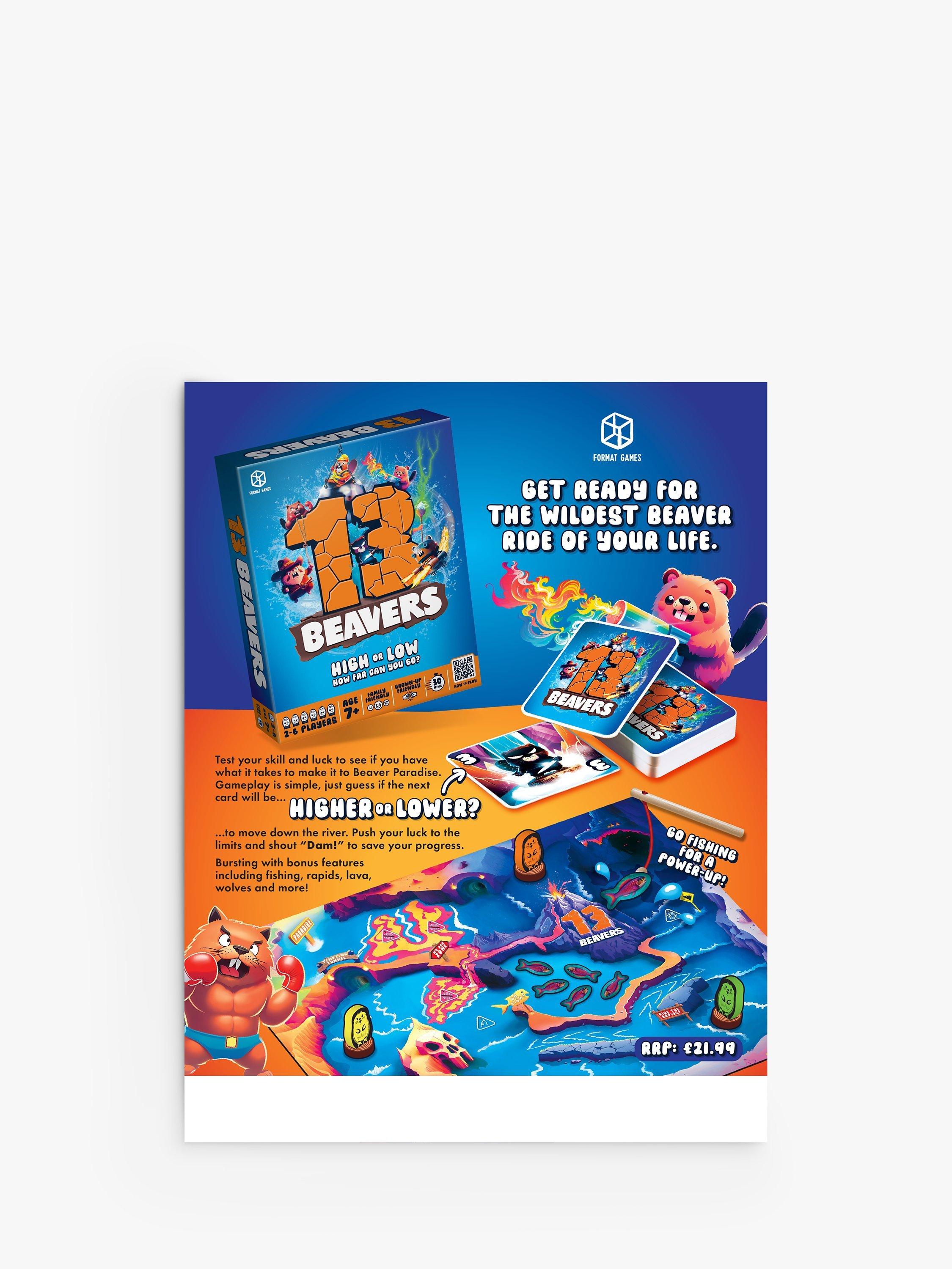 Get ready for the wildest beaver ride of your life! Legend has it that only 13 beavers have ever made the perilous journey to paradise and survived, but now it's your turn. Guess if the next card will be higher or lower to move your beaver along the river, but a wrong prediction will sweep you back to your dam! Bursting with bonus fun including fishing, rapids, lava, wolves and more, this game is totally different every time you play!