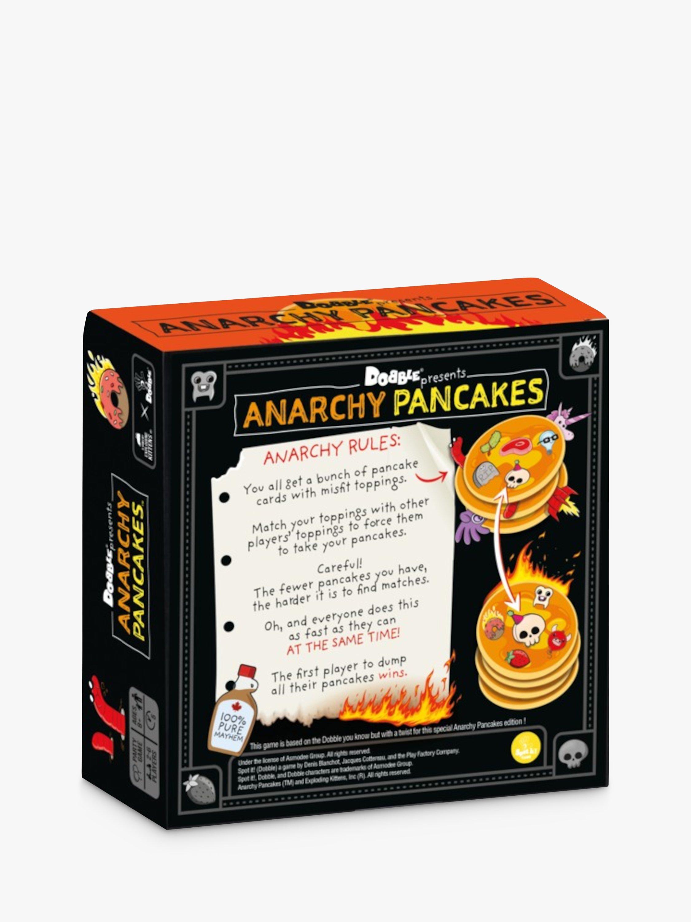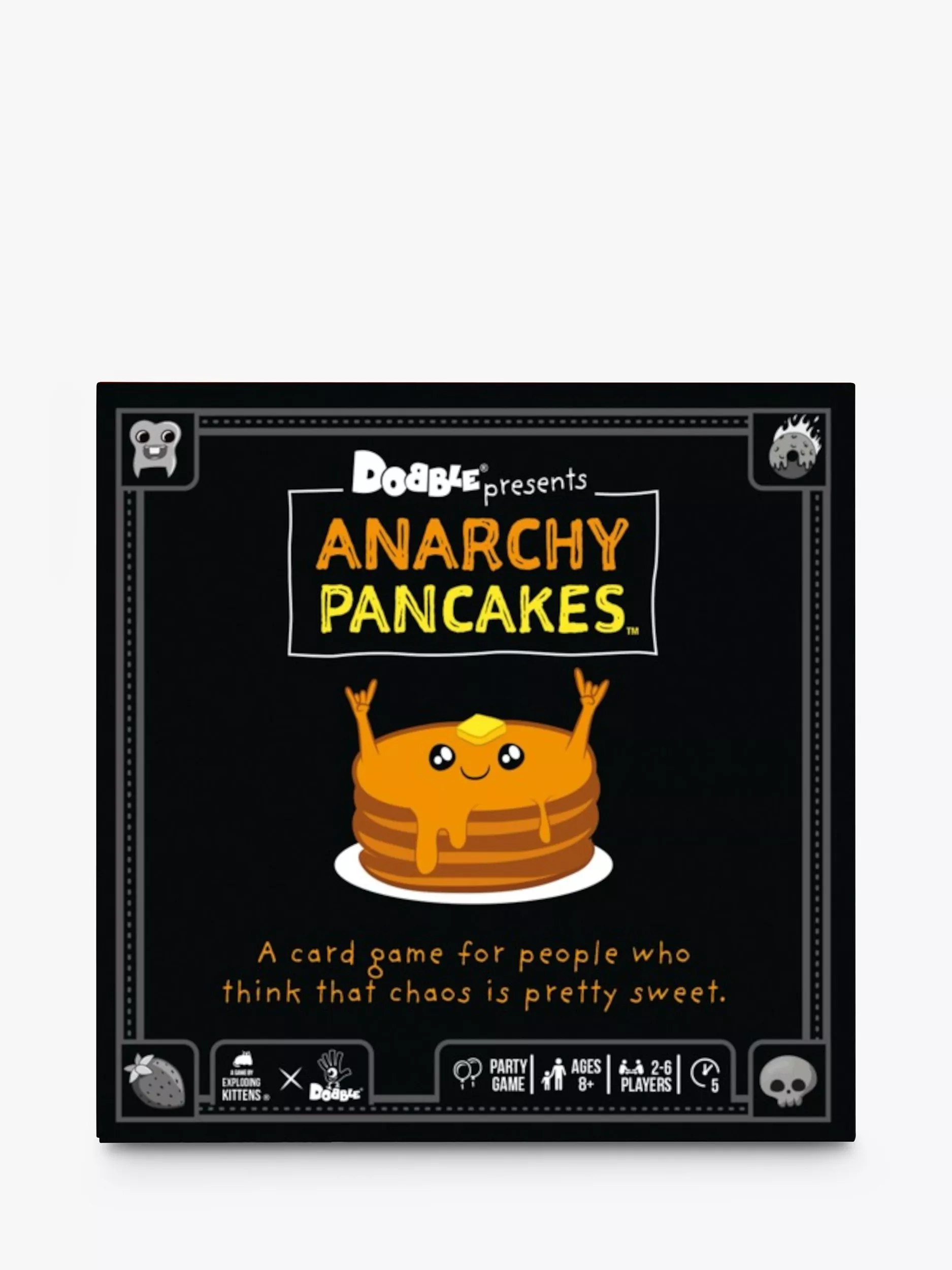 A card game for people who think that chaos is pretty sweet. In this frantic, fast-paced game, you all get a bunch of pancake cards with misfit toppings. Match your toppings with other players' toppings to force them to take your pancakes. Everyone should be working to do this as fast as they can at the same time. The first player to dump all their pancakes wins. It's 100% pure mayhem.