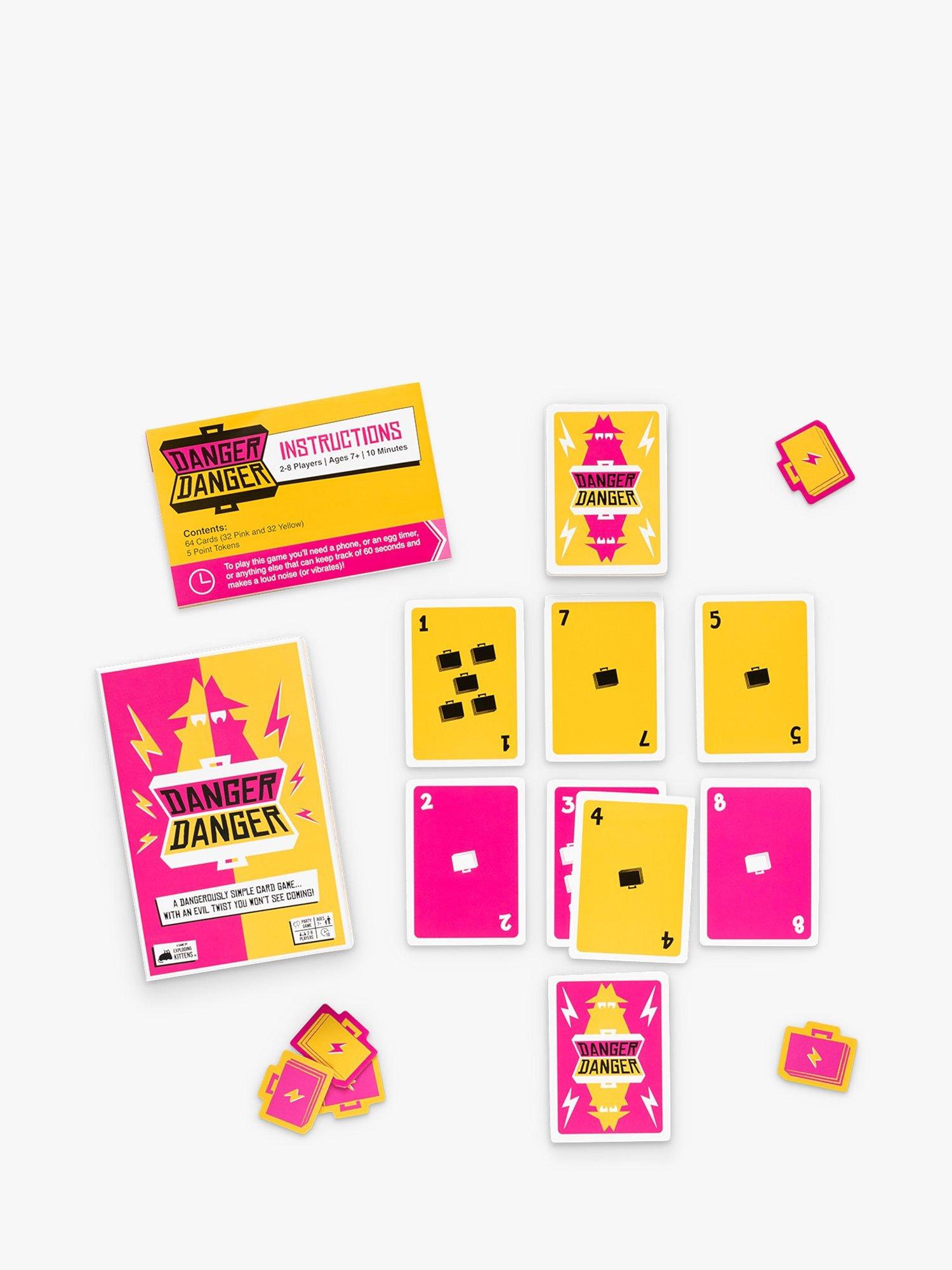 All the adrenaline of a high-stakes heist packed into a card game the whole family can enjoy. Danger Danger is a game where your team's goal is to have the most Cases showing at the end of the round. You do this by drawing and placing cards while the other team tries to thwart you. In order to win, you have to finish playing by the time a 60-second timer runs out. Oh, and you can't see the timer at all! That means it's just you, your teammates, and your combined instincts racing against an invisible clock and the other players.