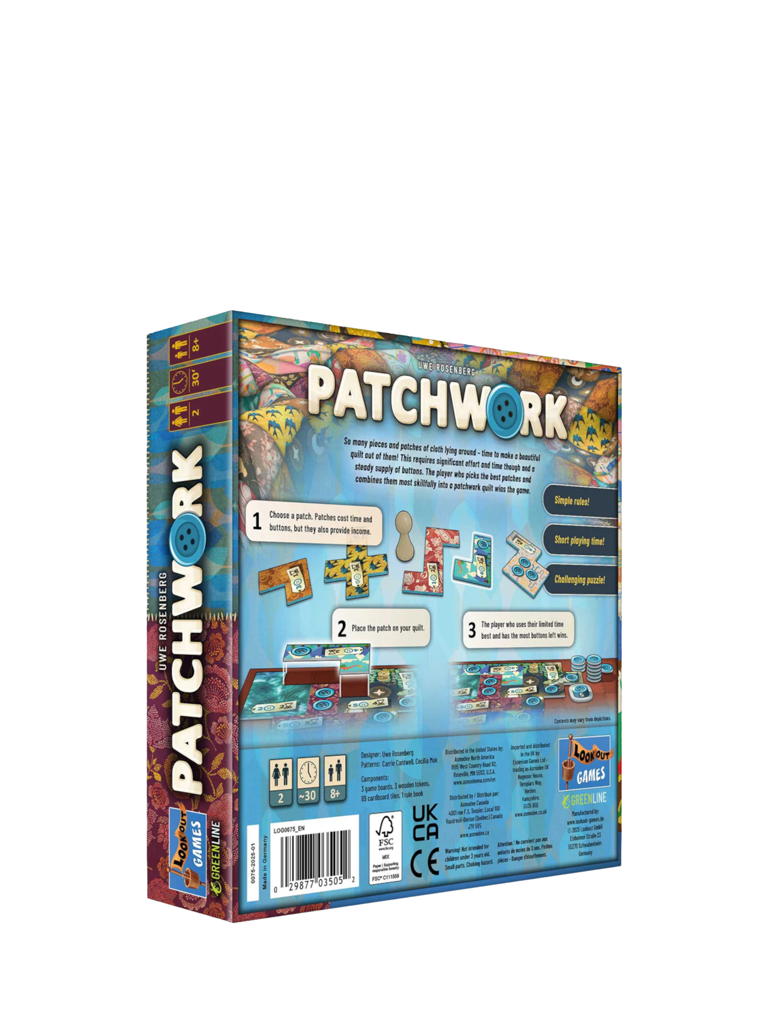 To create a beautiful quilt requires effort and time, but the available patches just do not want to fit together. So choose your patches carefully and keep a healthy supply of buttons to not only finish your quilt, but to make it better and more beautiful than your opponents.