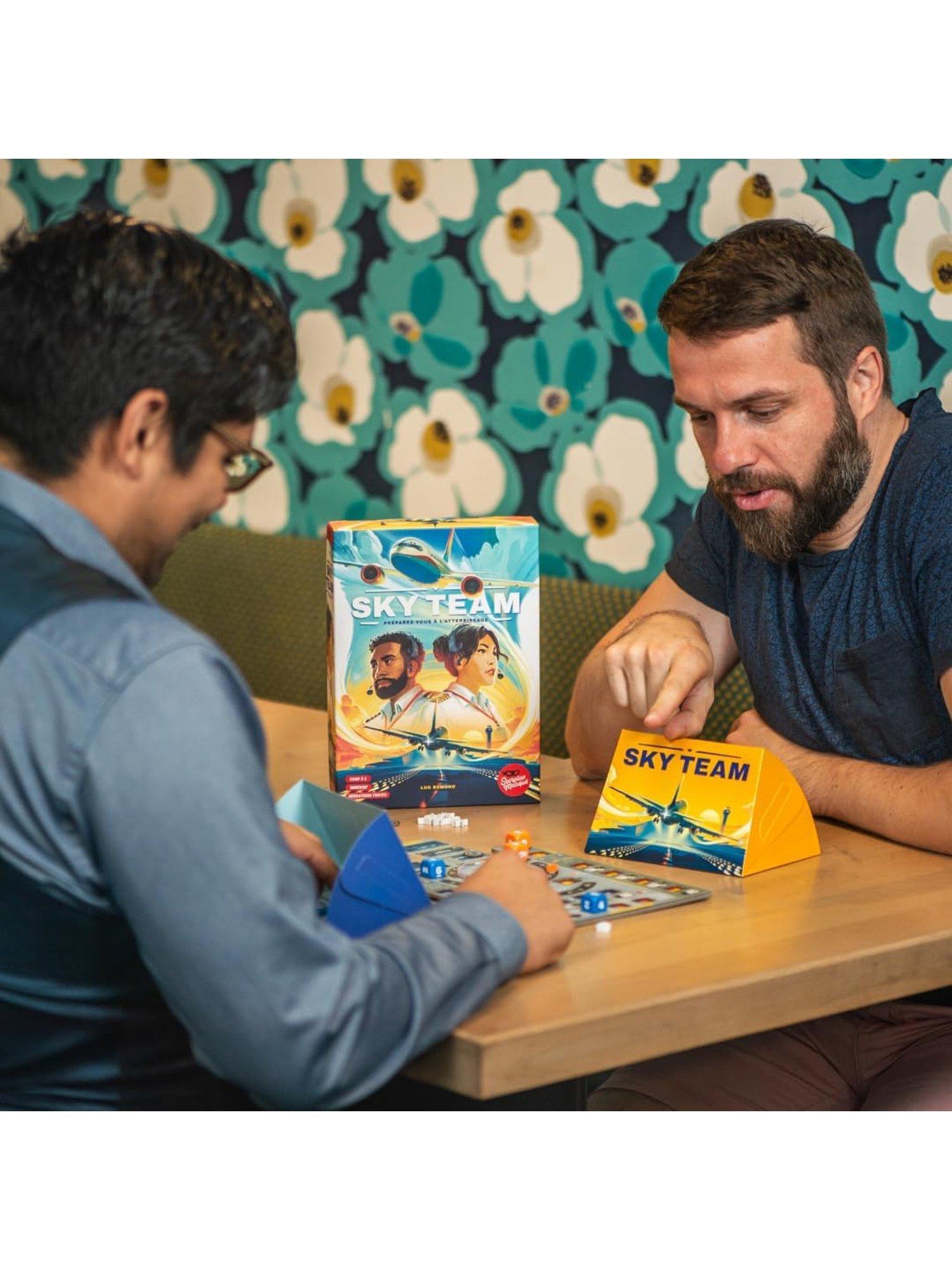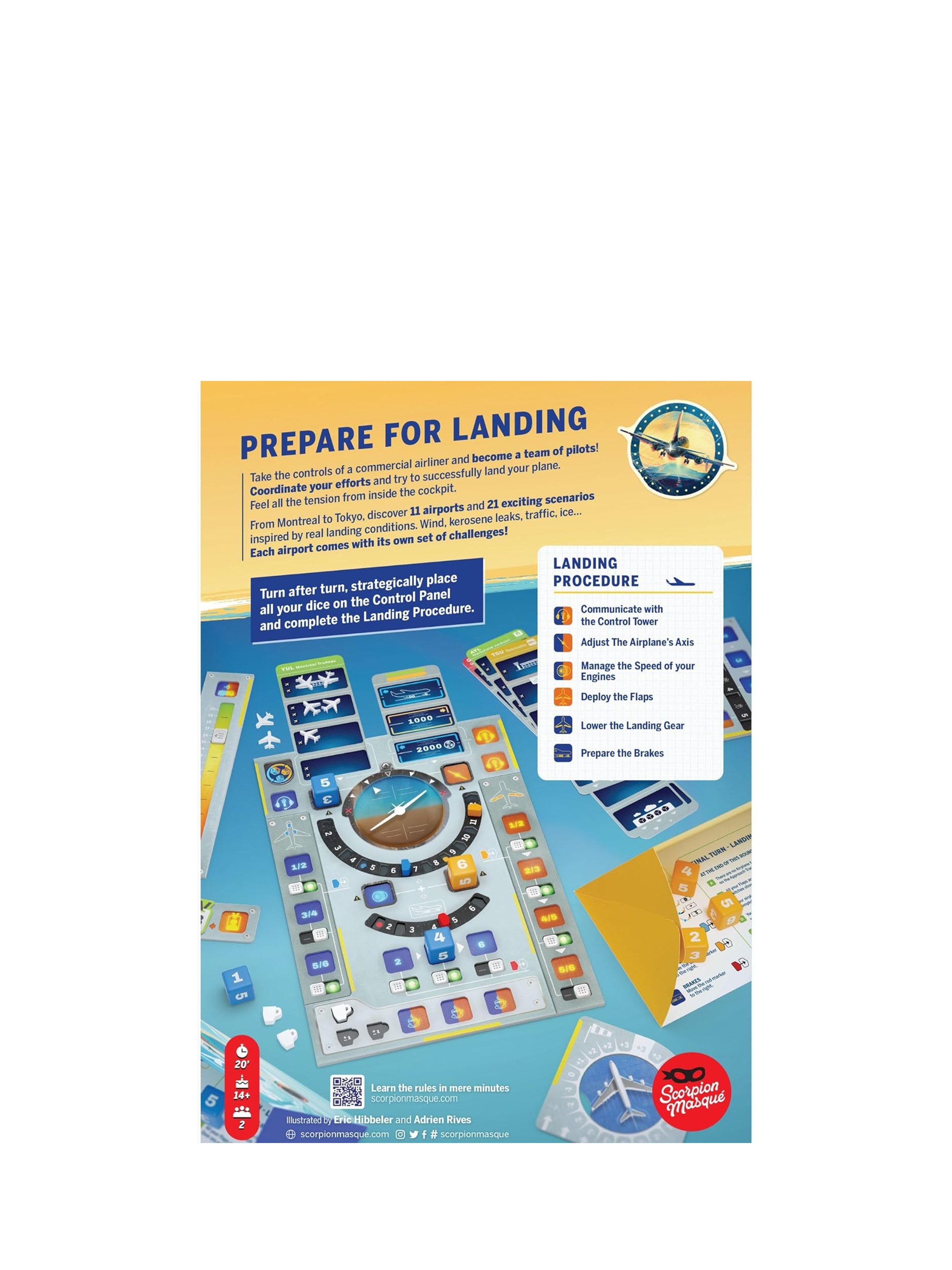 Prepare for take off! As pilot and co-pilot in the cockpit of an aircraft, your goal is to land the airline safely in different airports around the world. Assign dice to the correct spaces in your cockpit to ensure balance, speed, deploy flaps and landing gear, contact tower control and even sip your coffee. Each airport offers its own set of challenges, based on the real life airports. Be careful, don't stall the plane!