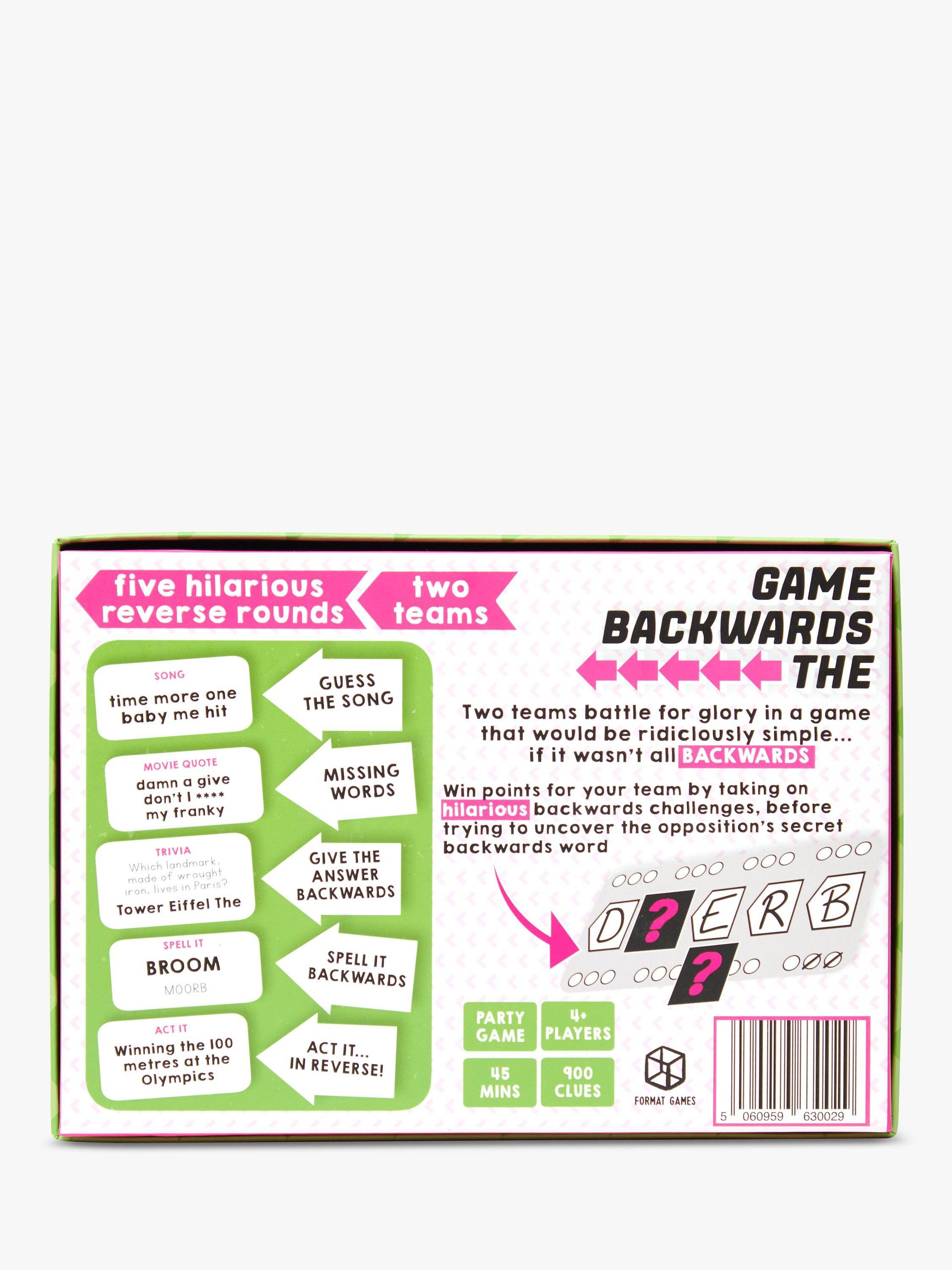 The Backwards Game is a super silly party game played in teams. All of the questions and challenges are incredibly easy... if you do them forwards. However, in this game, EVERYTHING reverse in happens!