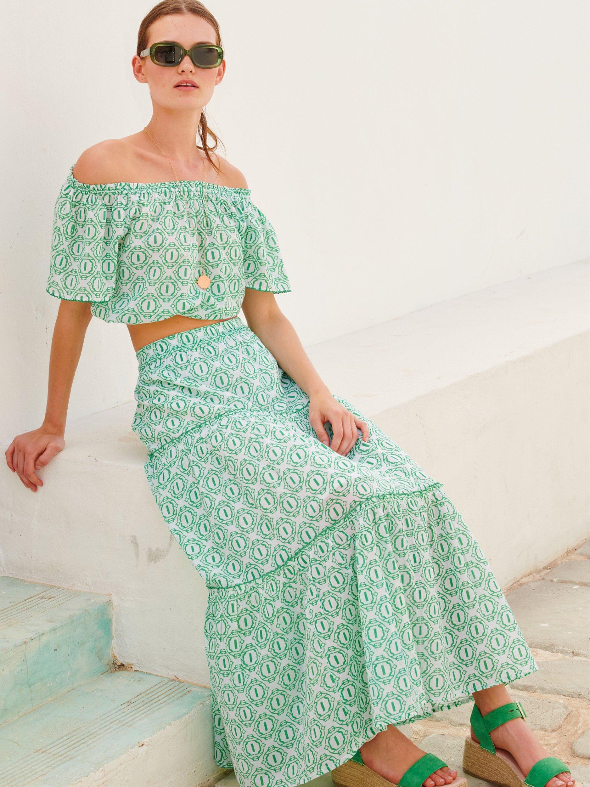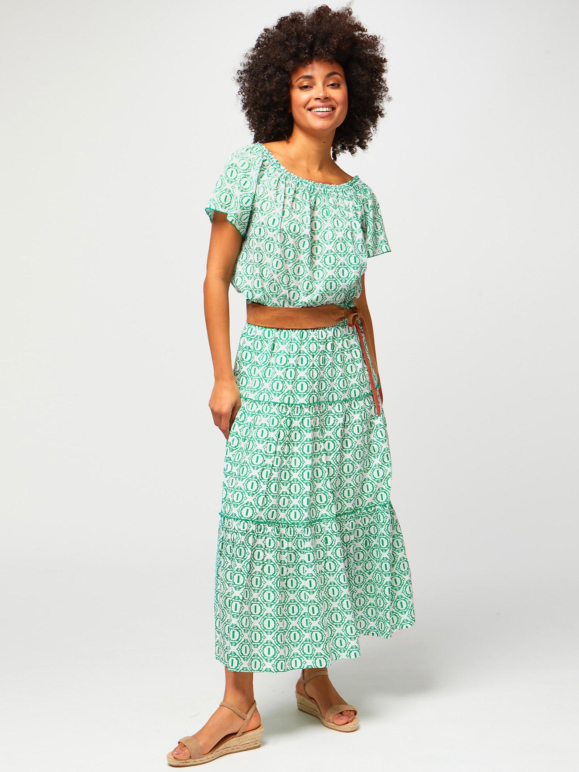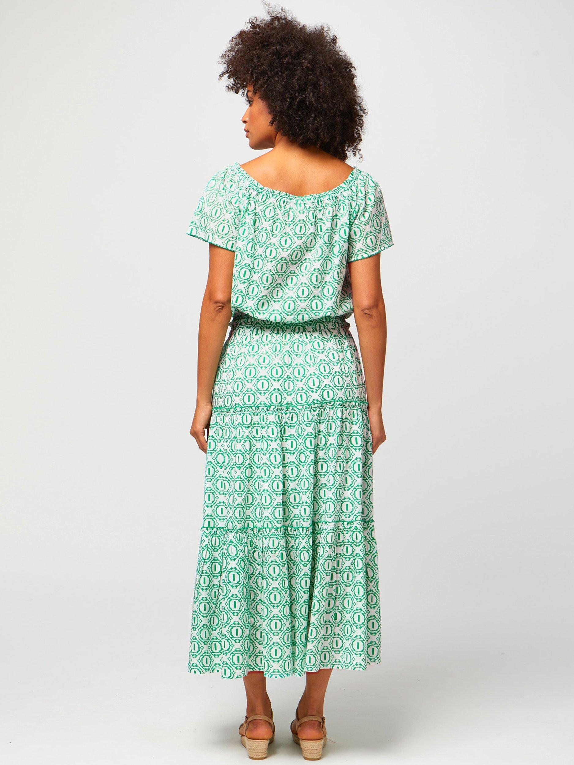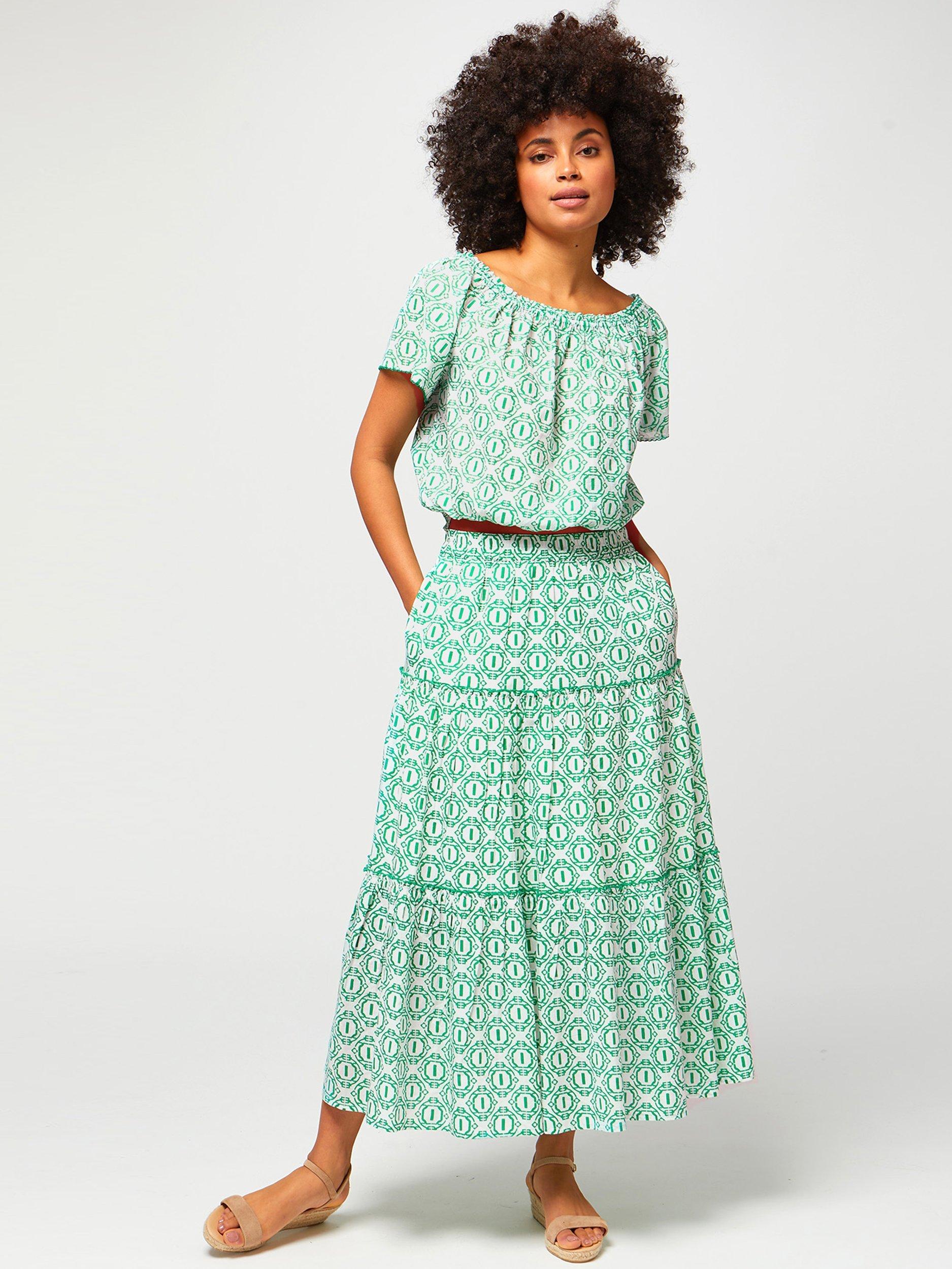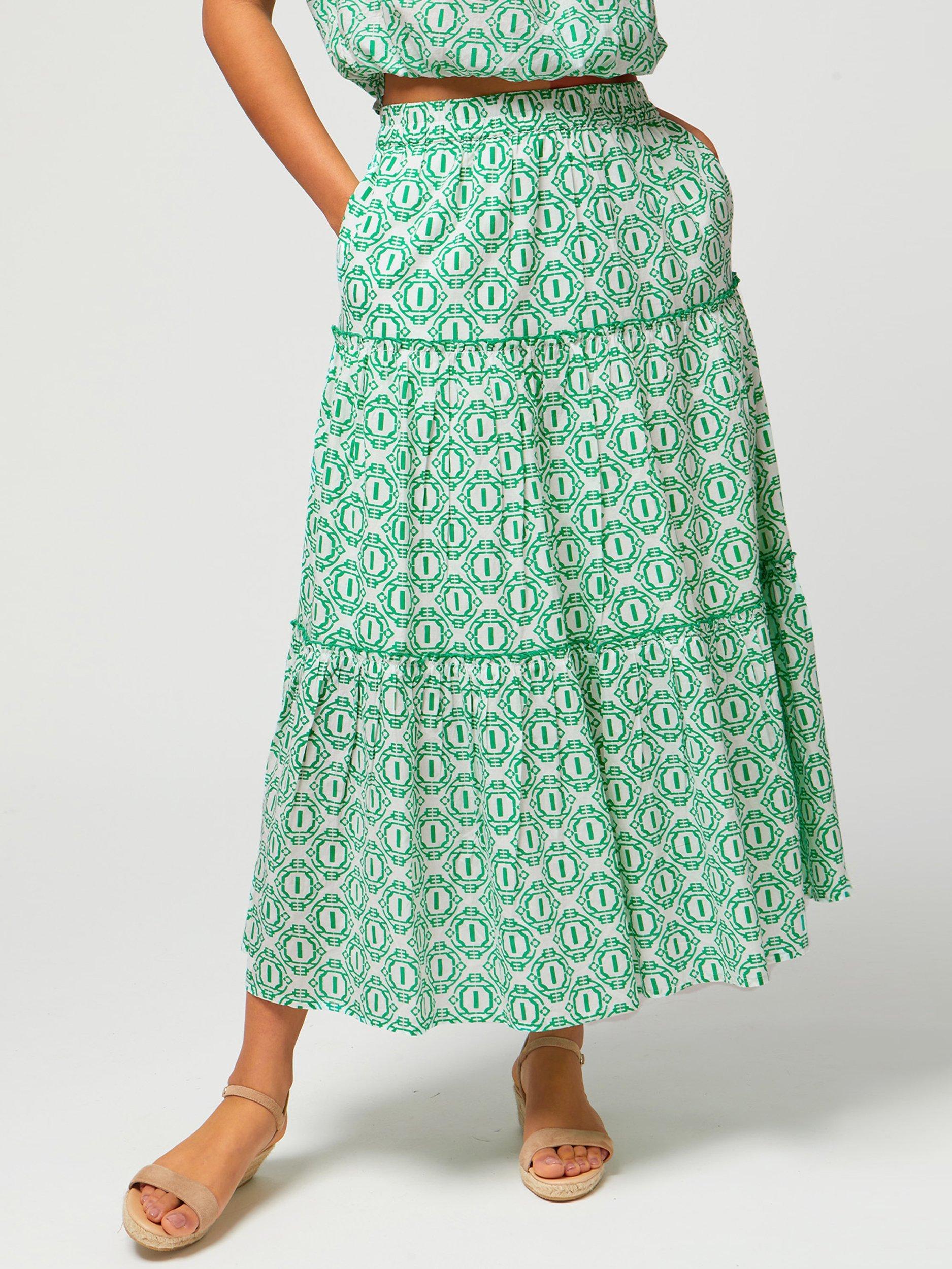 AspigaBea Tiered Skirt, Circle Geo Green