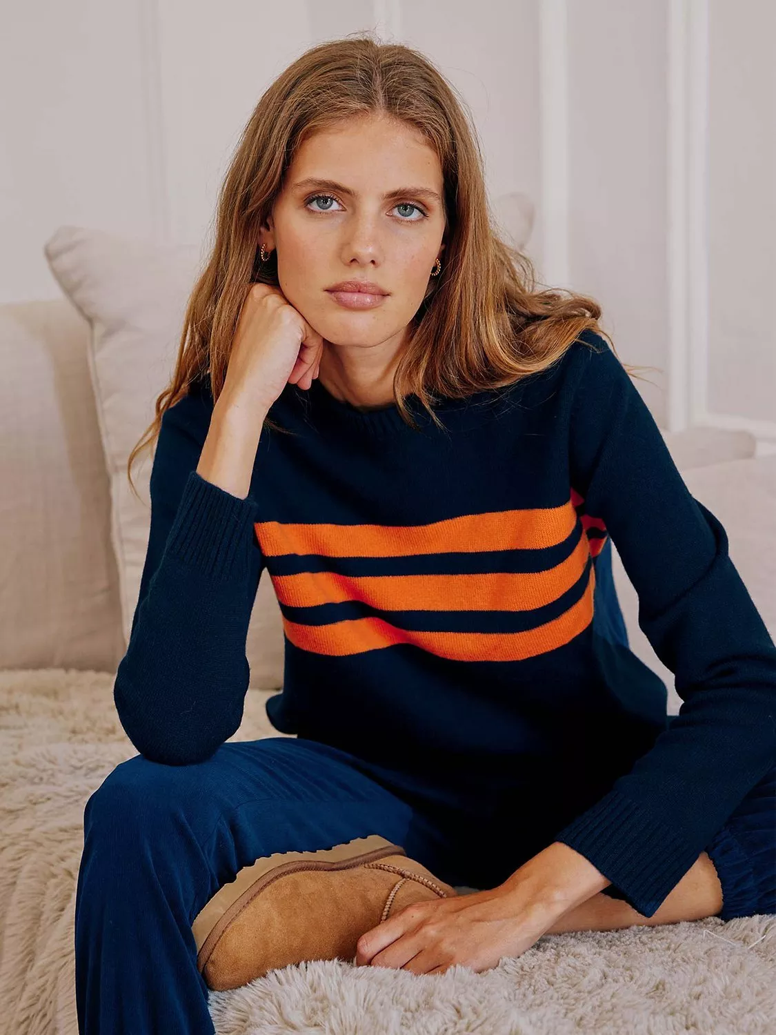Framed with a sleek crew neck, this jumper by Aspiga livens up stripes from their default status and is knitted from pure wool for a luxe piece that doesn't compromise on comfort.