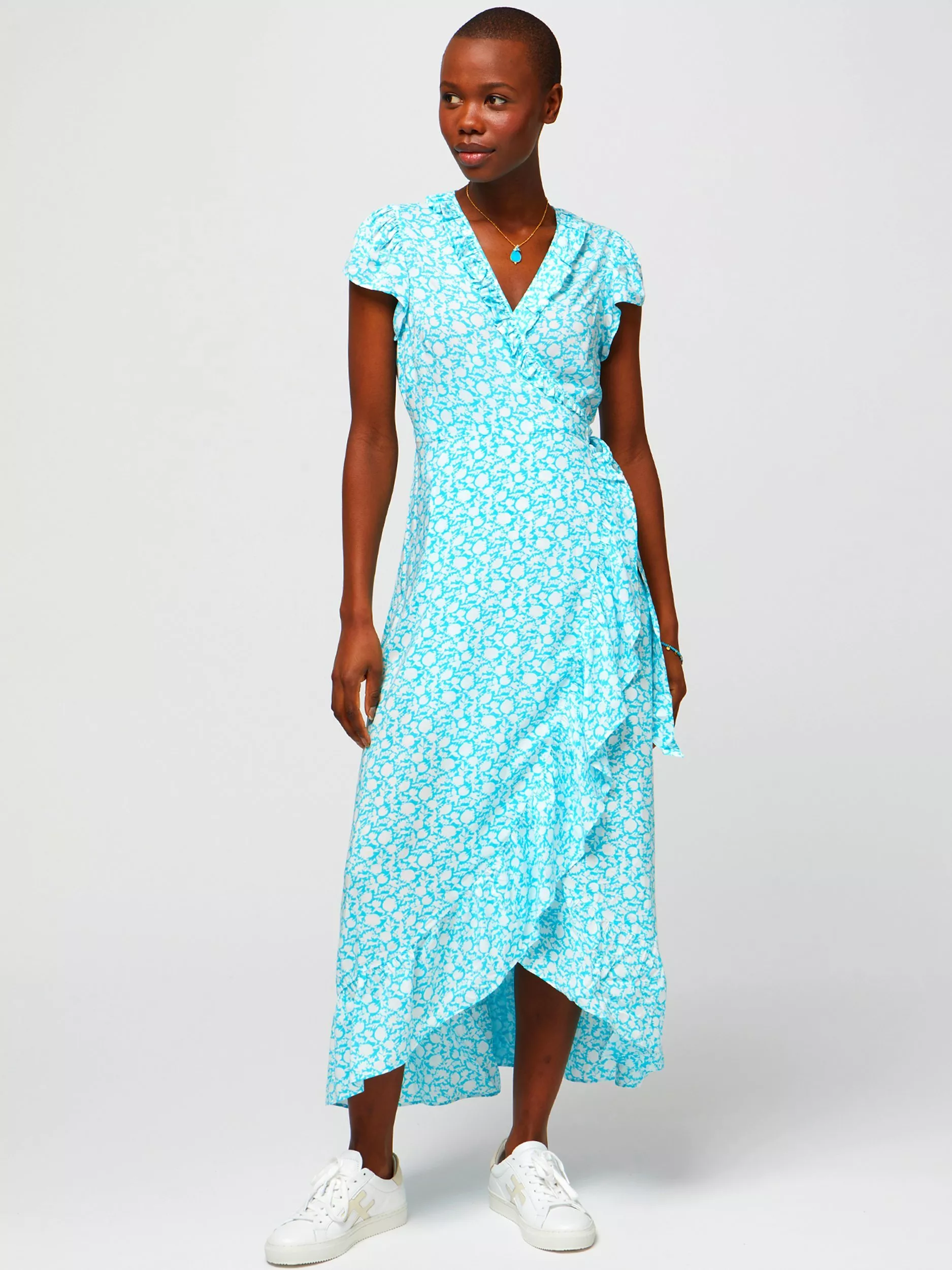 AspigaDemi Floral Print Wrap Midi Dress, Turquoise, M