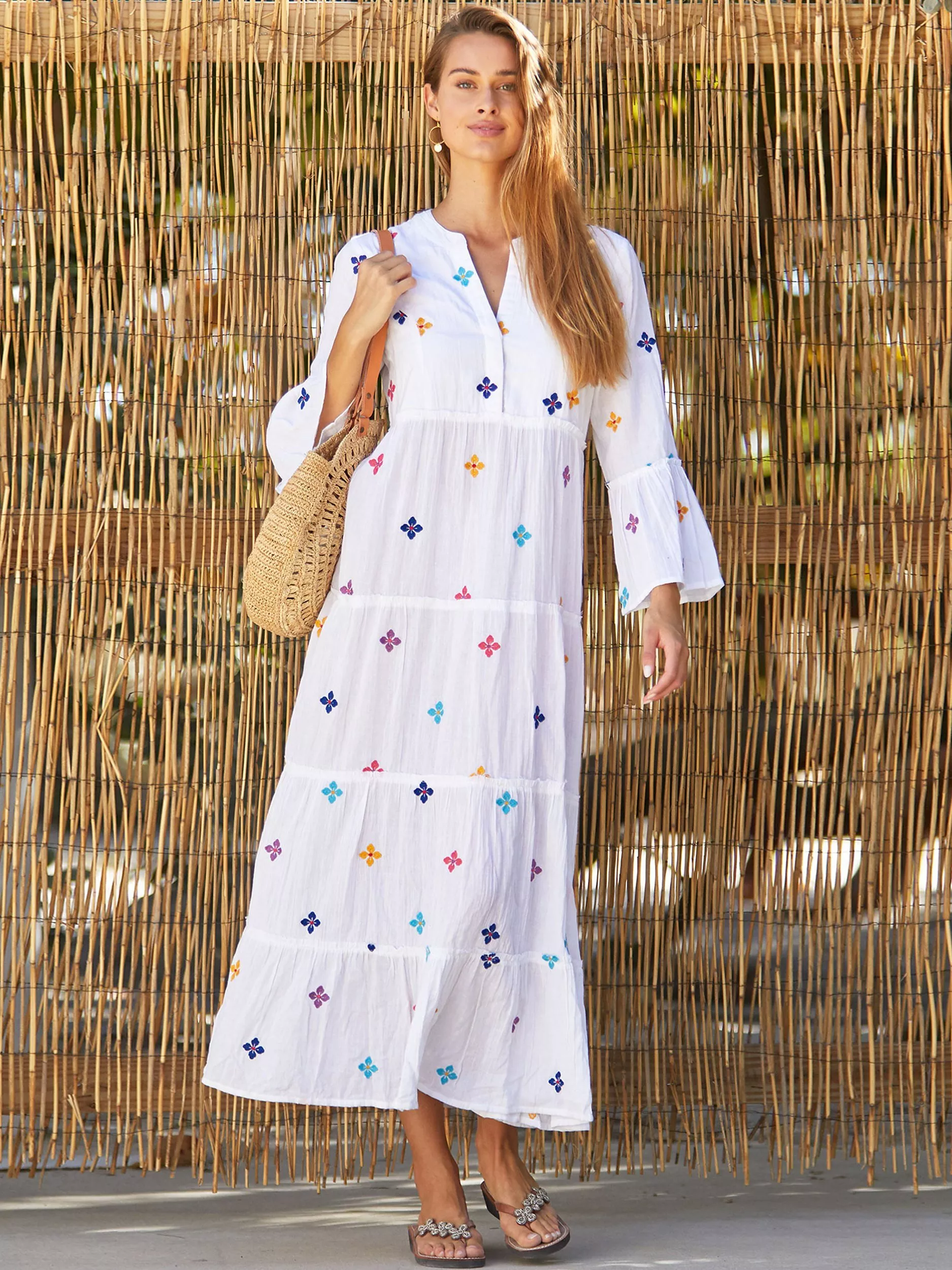 Tiered throughout for a fluid silhouette, this maxi dress by Aspiga is elevated with intricate embroidered detailing.