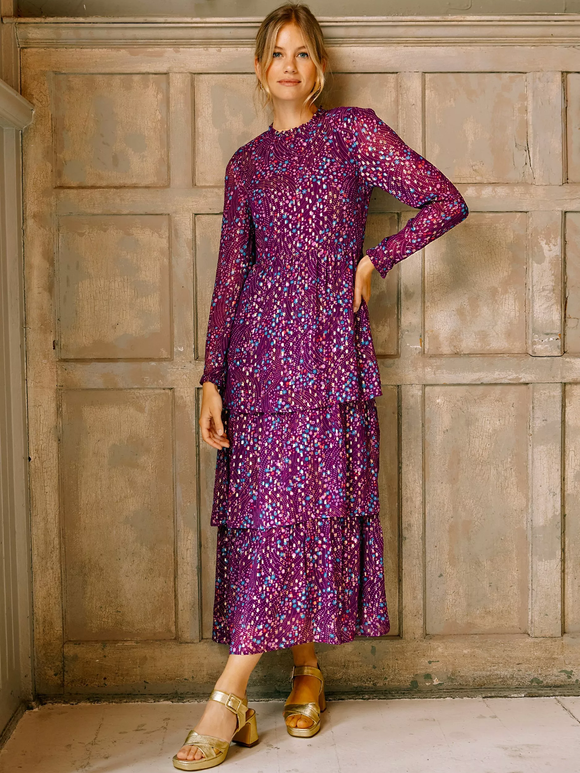 AspigaHettie Midi Dress, Purple/Multi