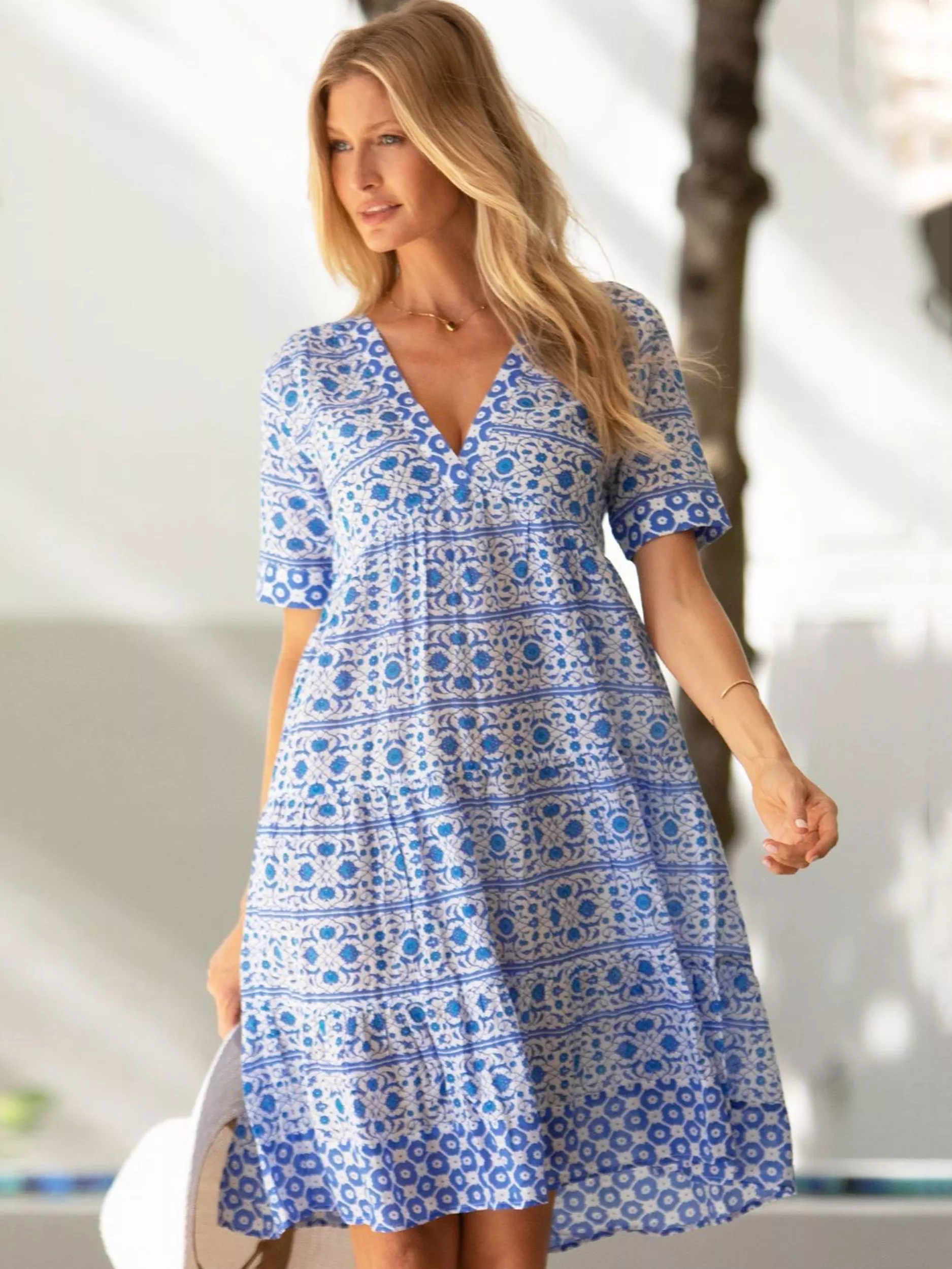 Opting for simplicity at its best, this thigh-grazing dress from Aspiga comes with a lightweight cotton composition. With a fuss-free but smart v-neckline and short sleeves, it is proof that florals are groundbreaking all year round.