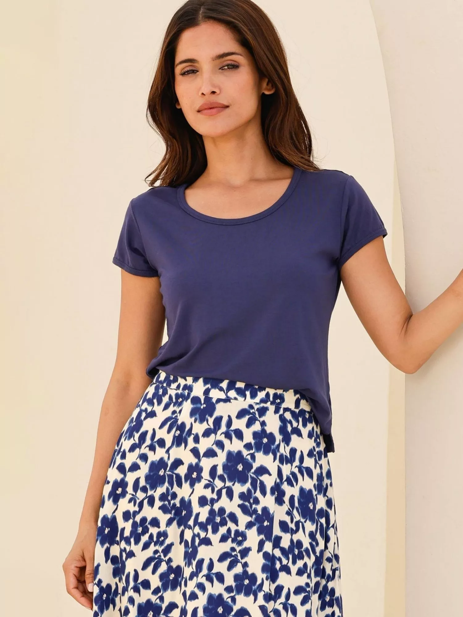 Short-sleeve T-shirt for effortless comfort and style – crafted from pure cotton for everyday freshness and cut with a flattering scoop neck for easy pairing with your favourite summer looks.
