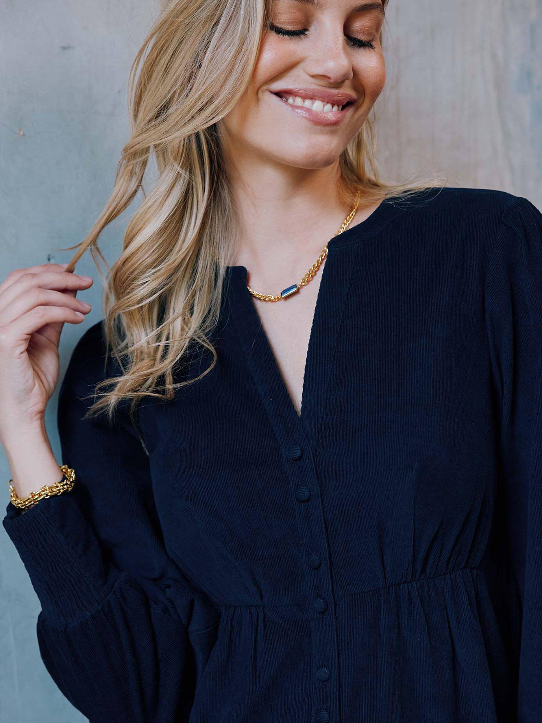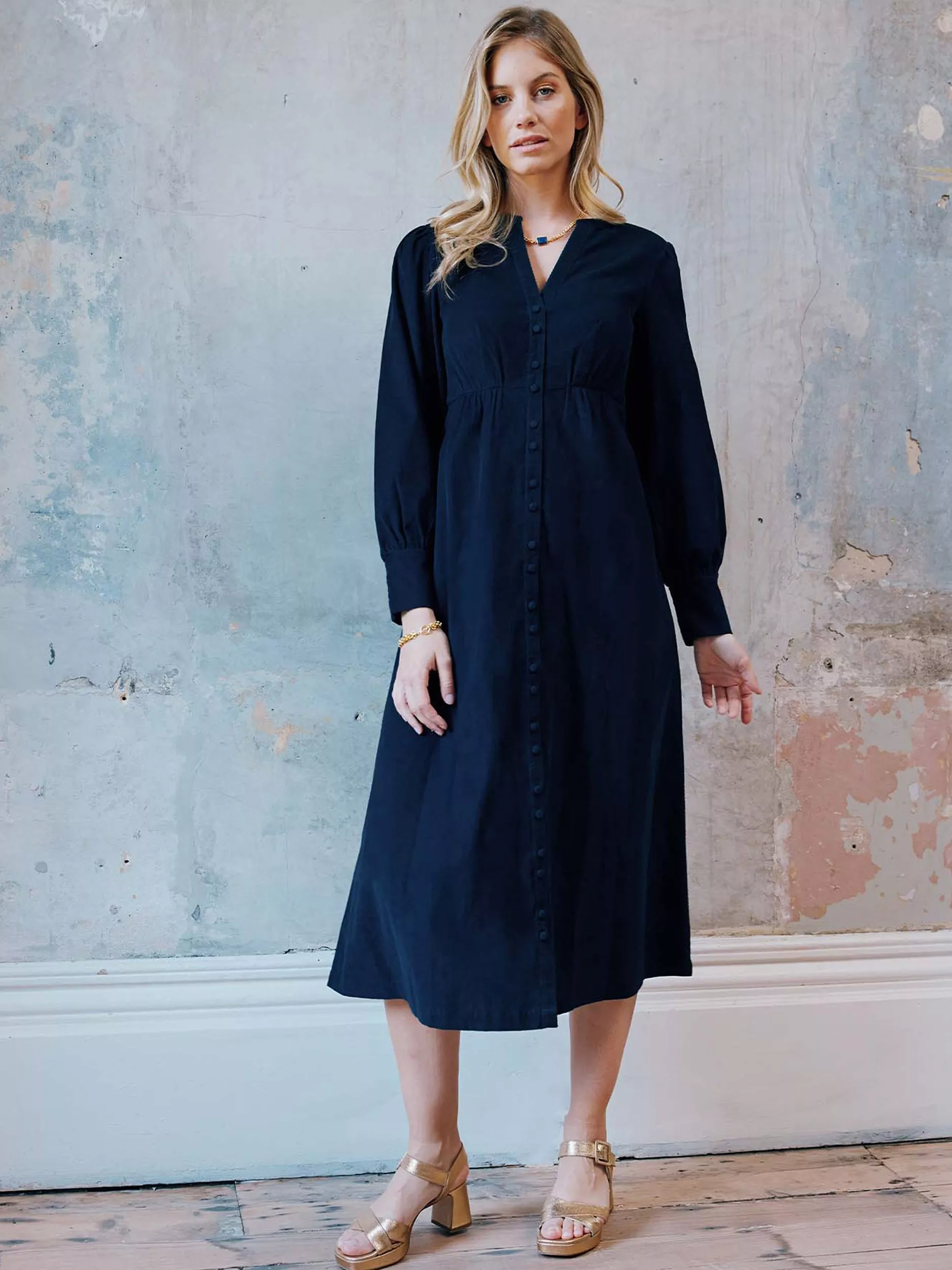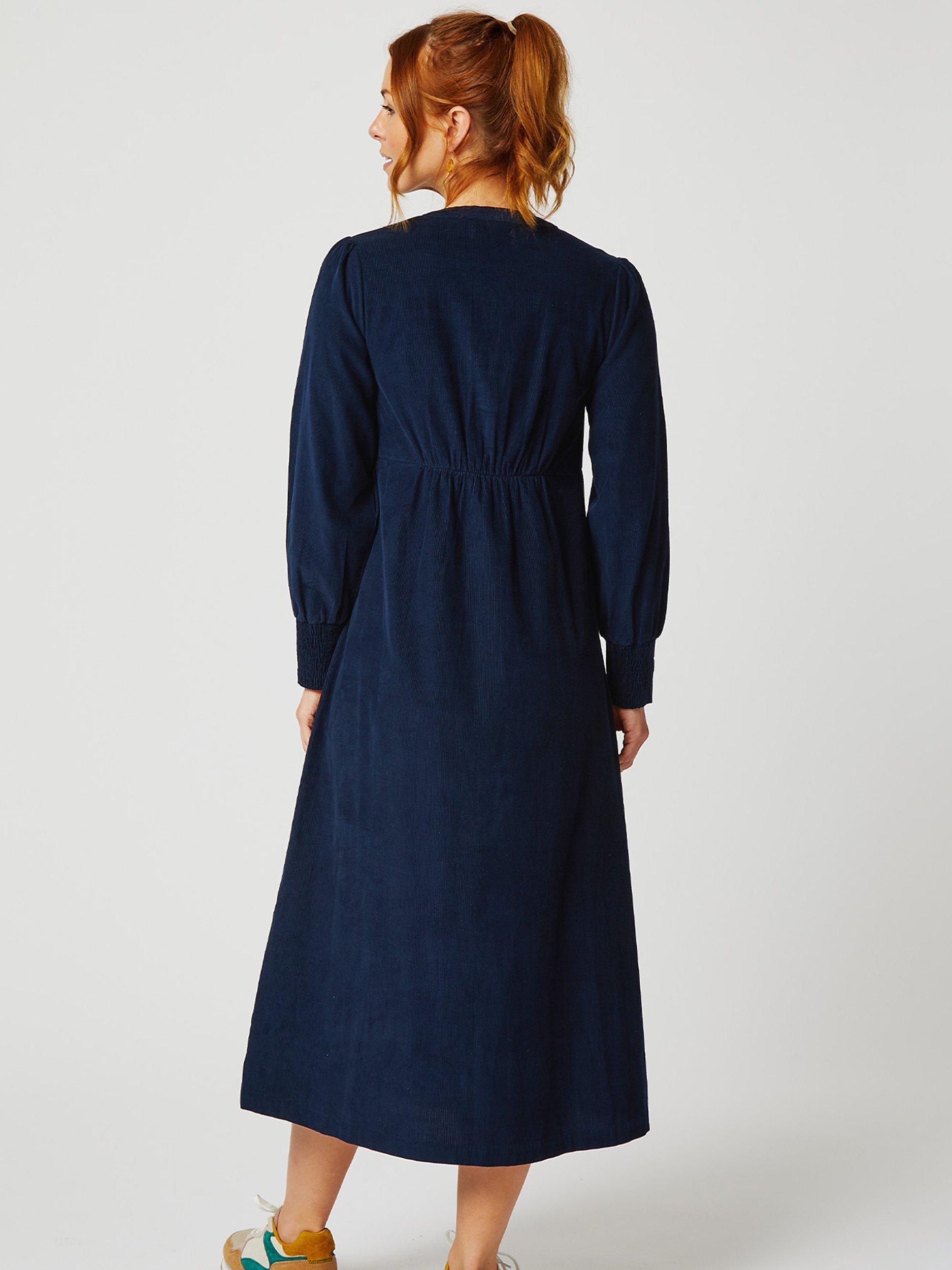 Flaring out at the hem for a feminine silhouette, this mid-length dress from Aspiga is rendered from pure cotton cord. With a universally flattering v-neckline and long sleeves, it allows you to showcase its versatility.