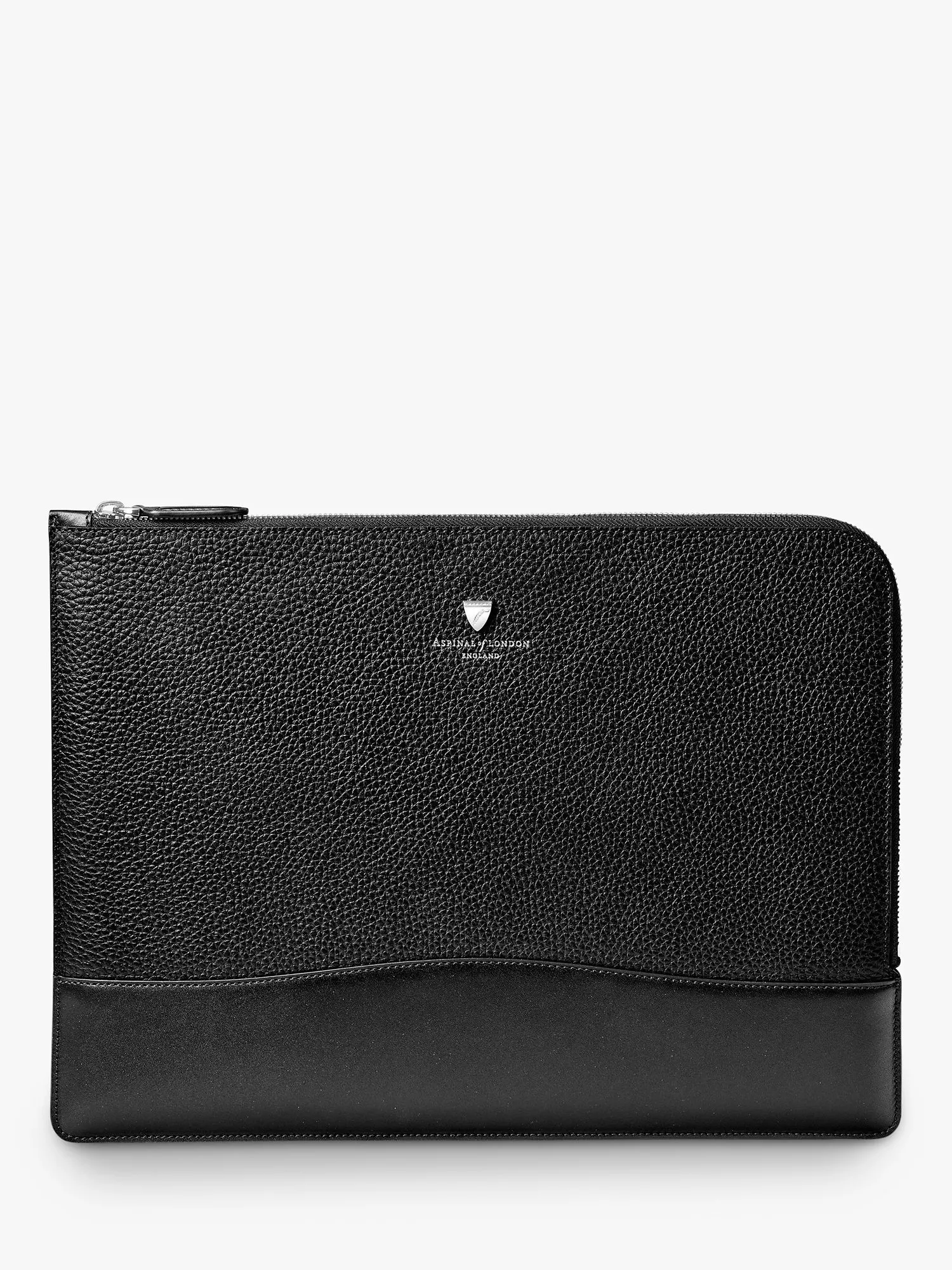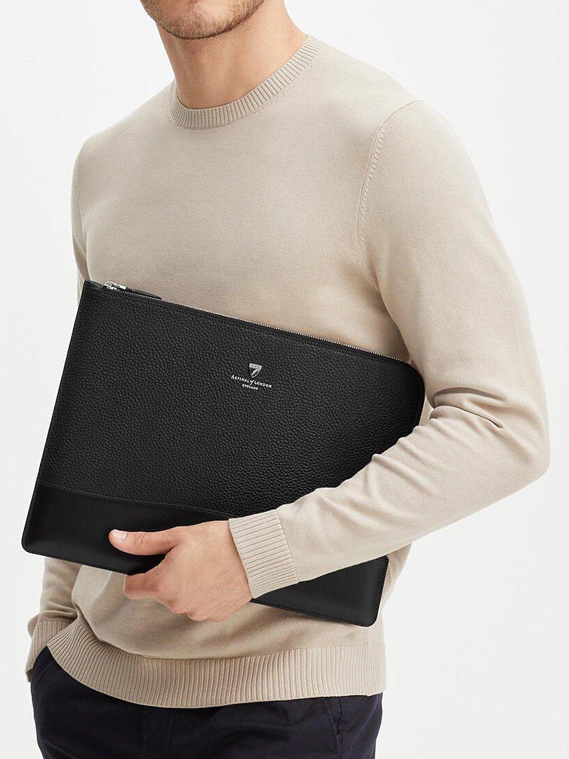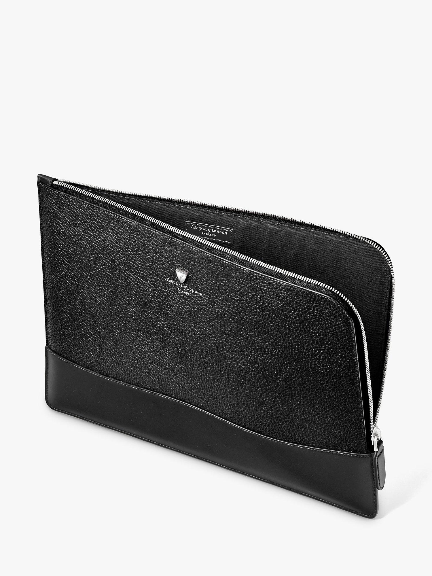 Aspinal's City Large Tech Folio will make a refined addition to your leather accessories collection. Hand-crafted from Italian full-grain leather with a fabric-lined interior, the spacious yet compact padded folio design has enough room for a 13-inch laptop or a 12.9 tablet, while the durable zip-around fastening keeps your tech secure.