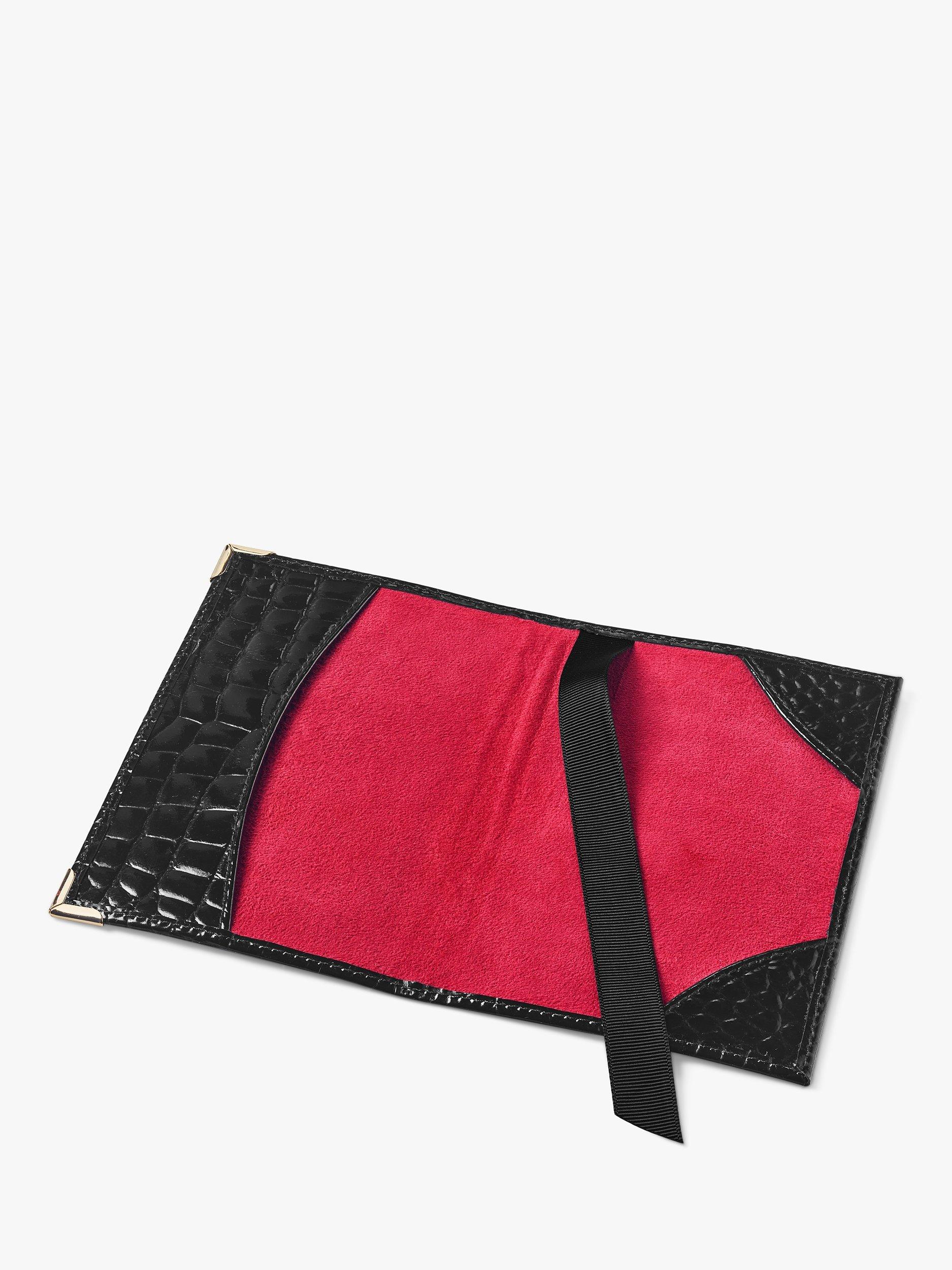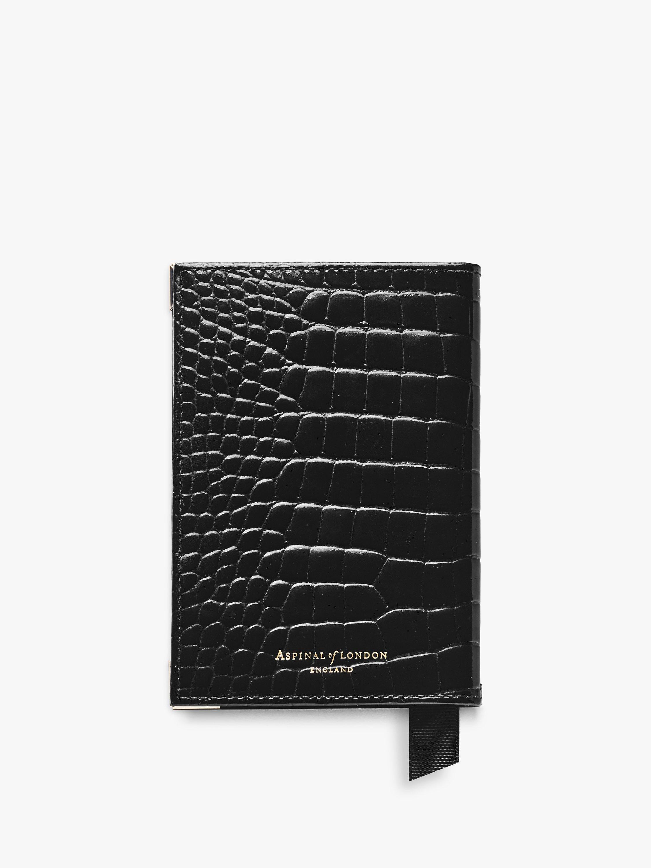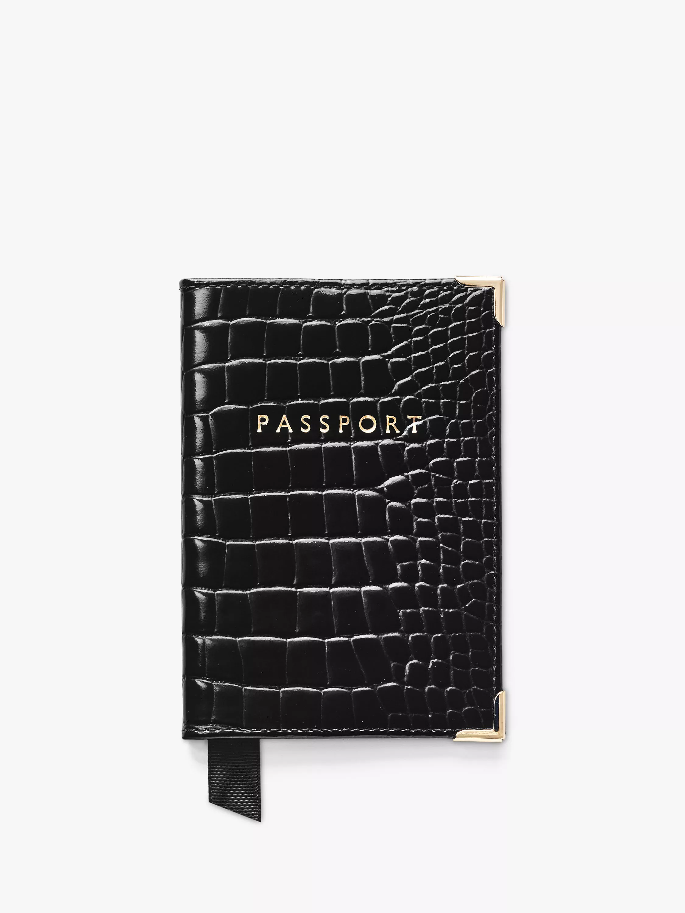 Durable enough to accompany you on adventures for years to come, Aspinal of London's Passport Cover gives you an elegant way to stay organised when travelling. Handcrafted from the finest full-grain leather in a crocodile-effect and lined in contrasting suede, this eye-catching travel accessory features a slip pocket for securely storing your boarding pass stub and a grosgrain ribbon page marker.