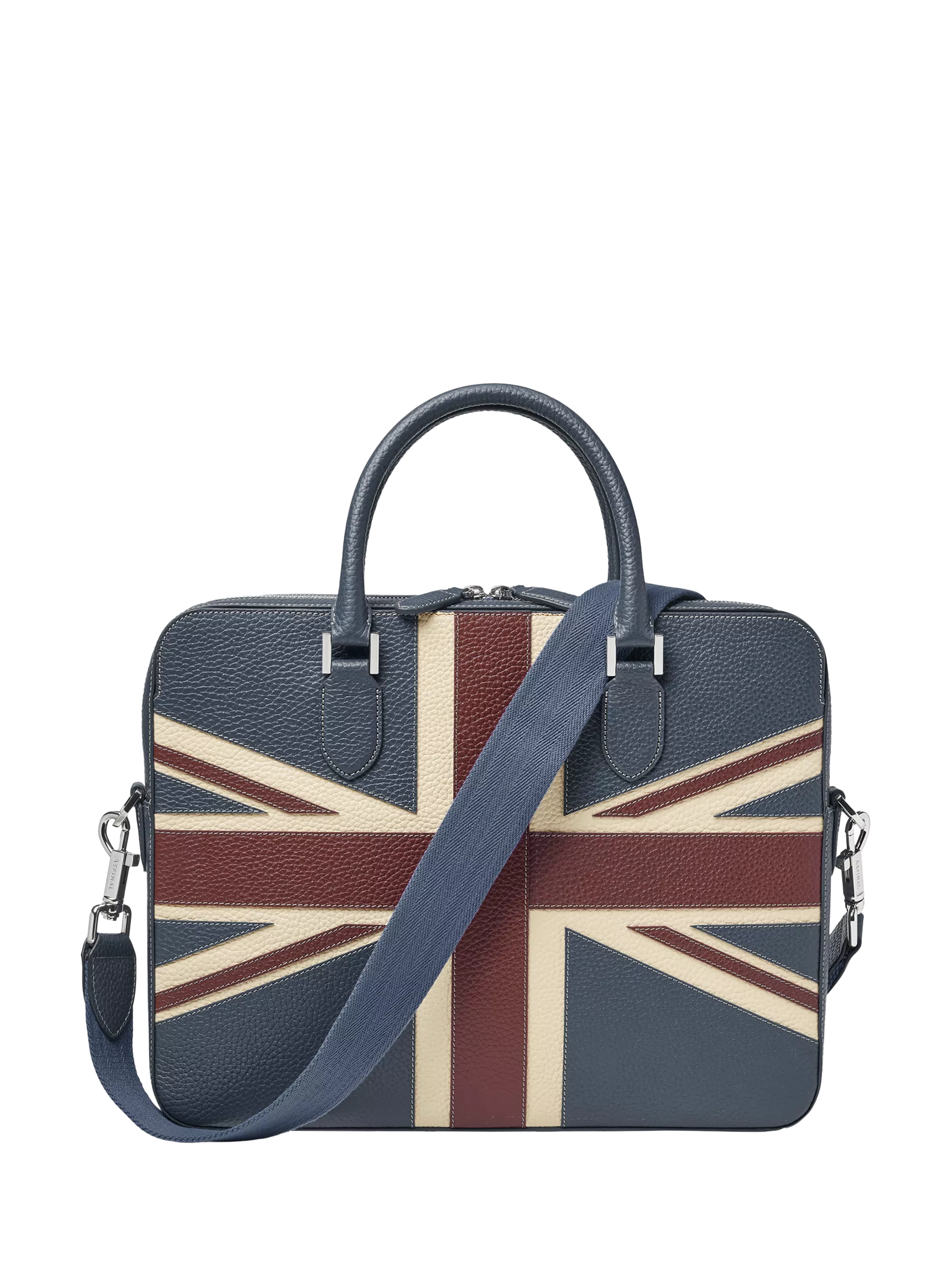 Handcrafted from full-grain leather, the spacious interior accommodates a 15.5-inch MacBook Pro, alongside three slip pockets for storing your smartphone and other business essentials, while a zipped pocket keeps wallets and keys secure. An external slip compartment allows for easy access to frequently reached for items. Complete with numerous carrying options, the Slim Leather Briefcase can be worn top handle or handsfree on the shoulder or sat atop a suitcase, securely attached to the handle via the trolley strap to the reverse of the bag.