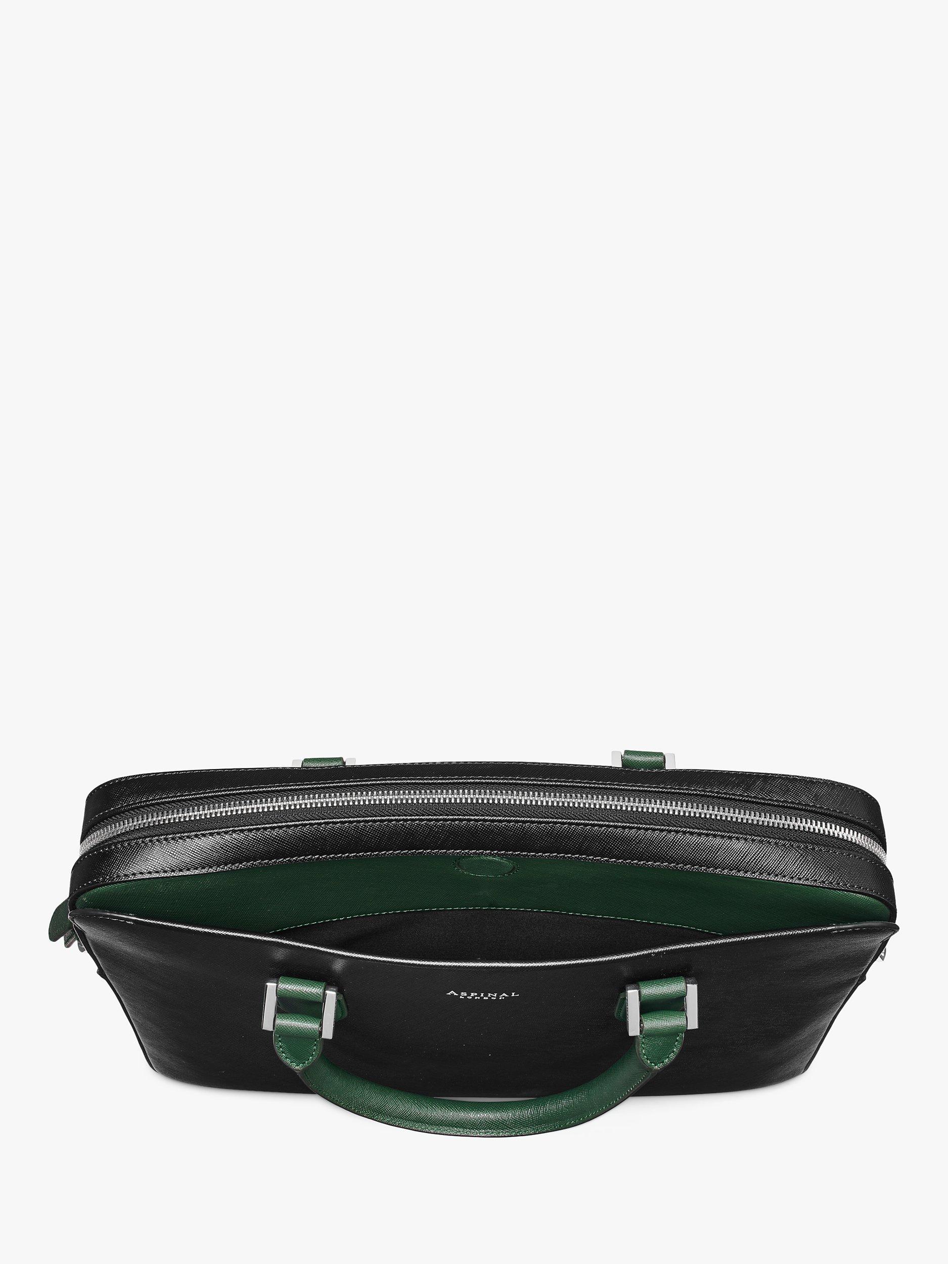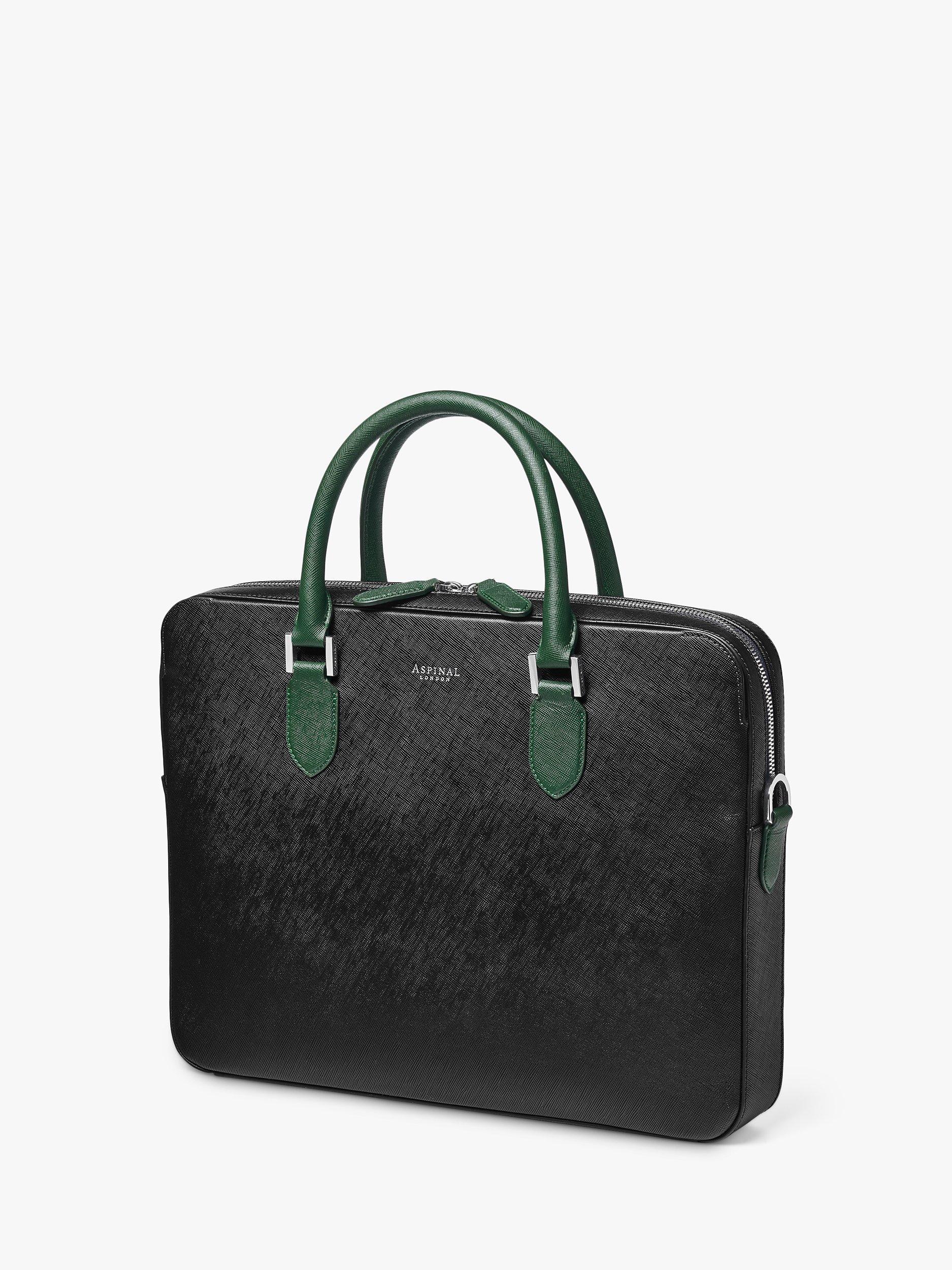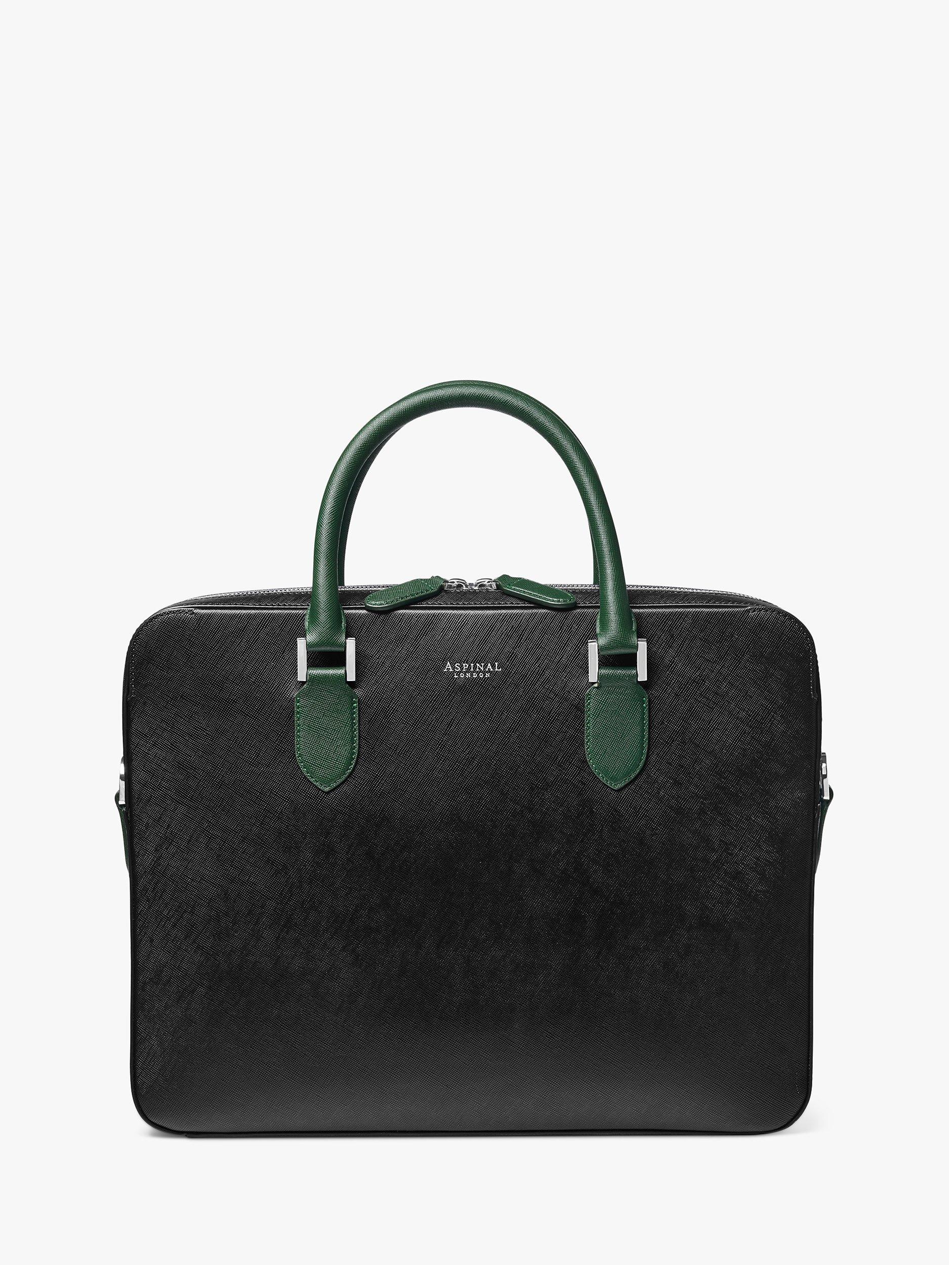 Aspinal of LondonLeather Slim Briefcase, Black/Green