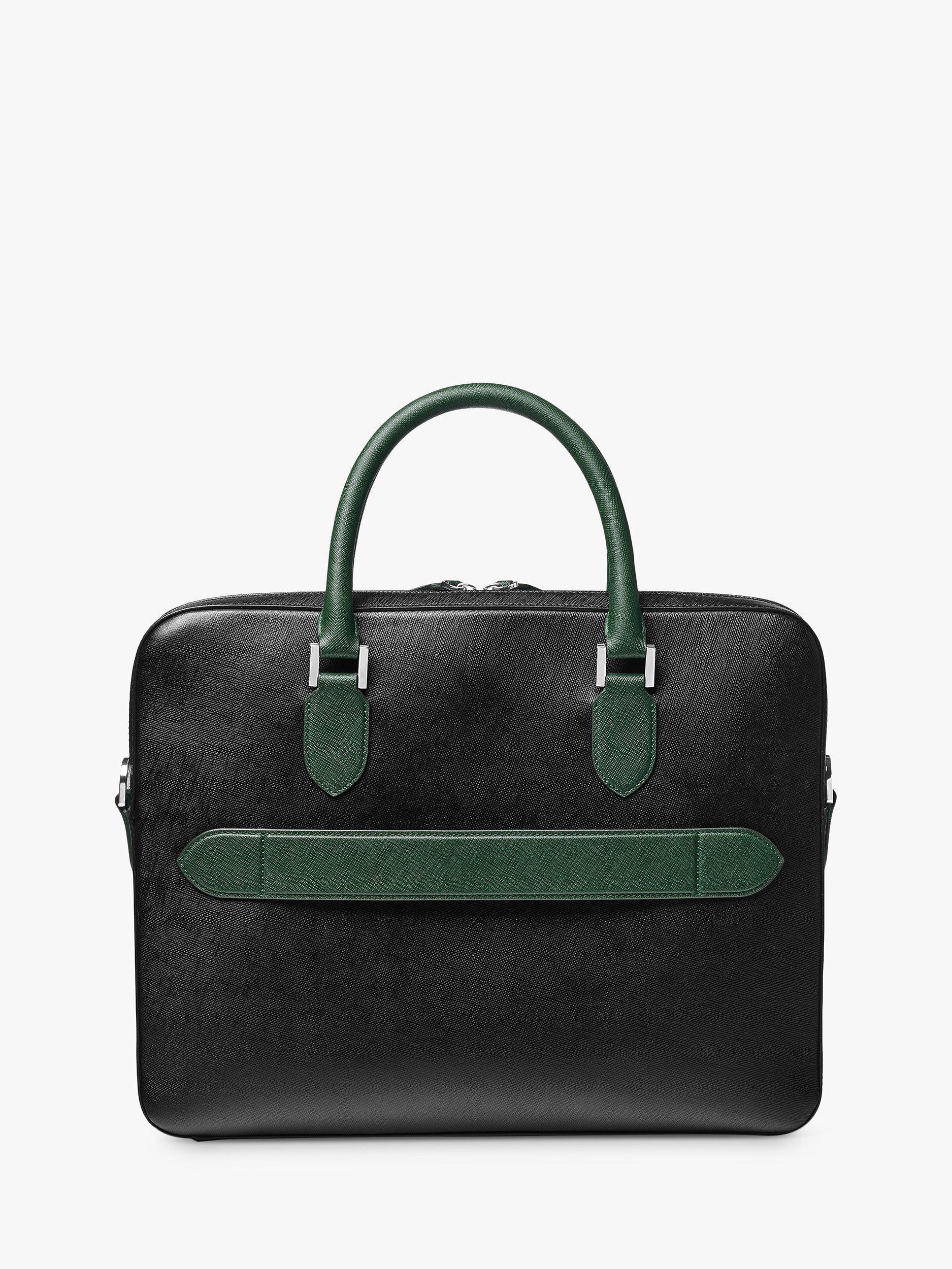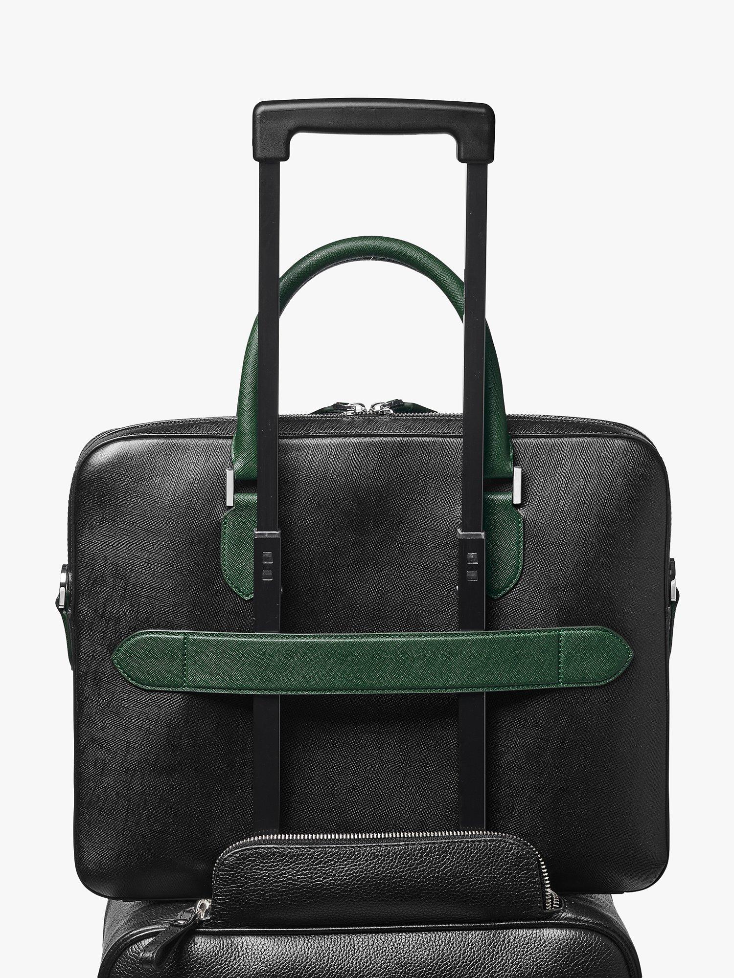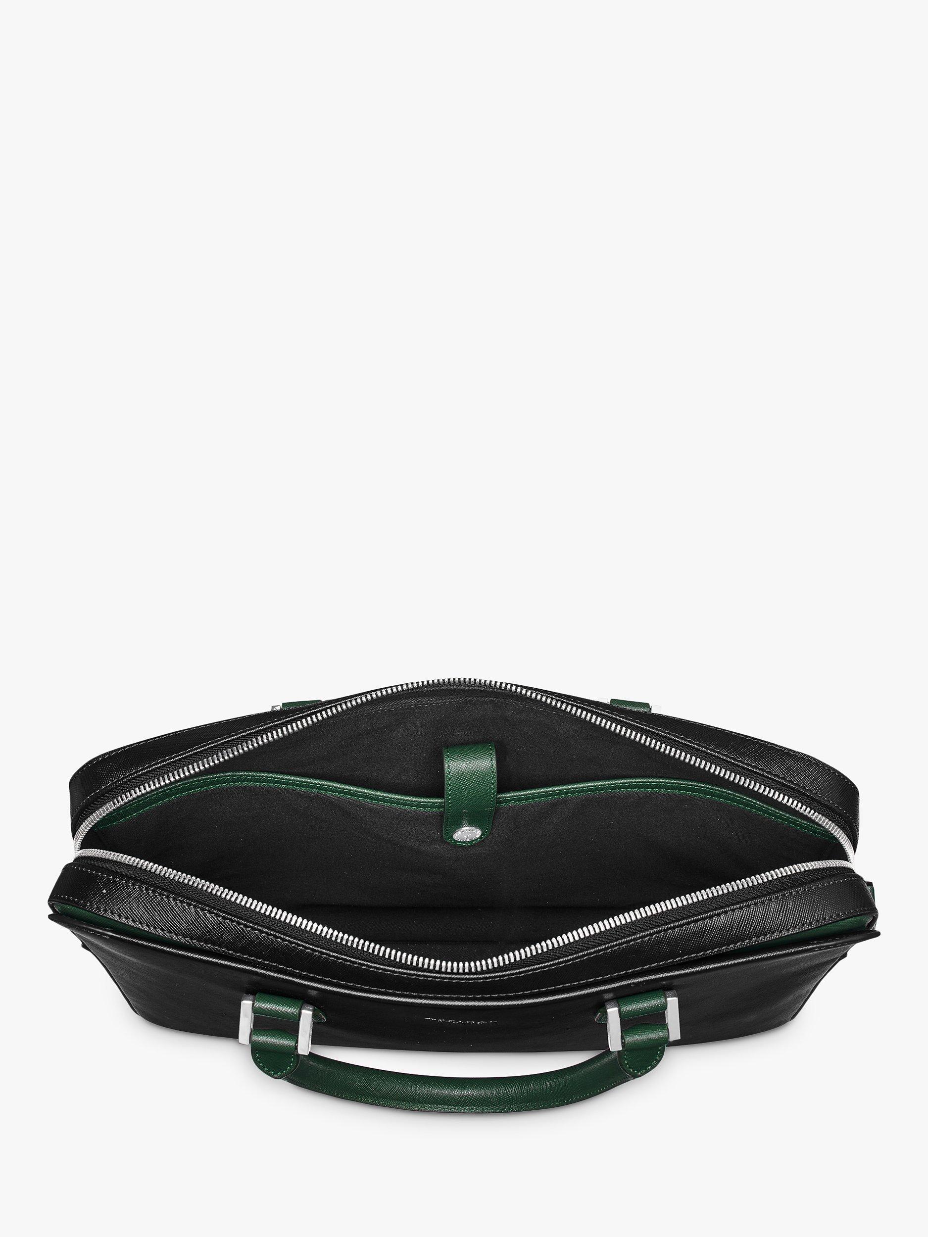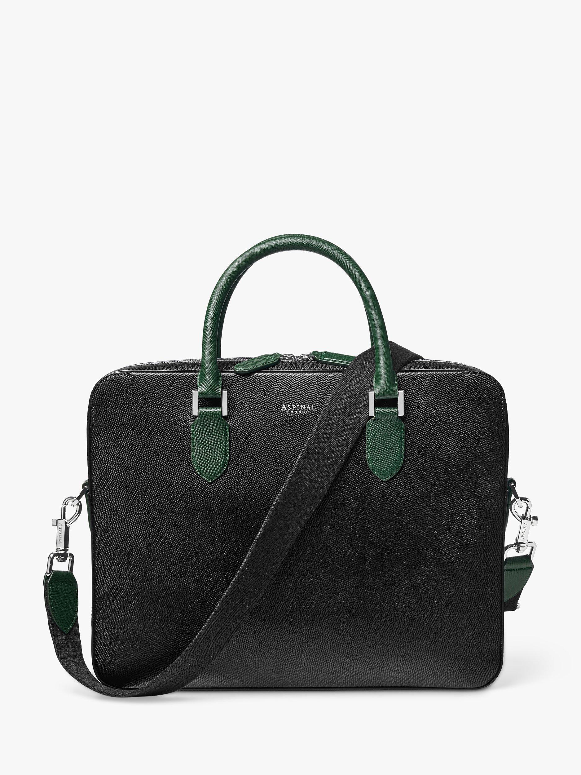 Aspinal of LondonLeather Slim Briefcase, Black/Green