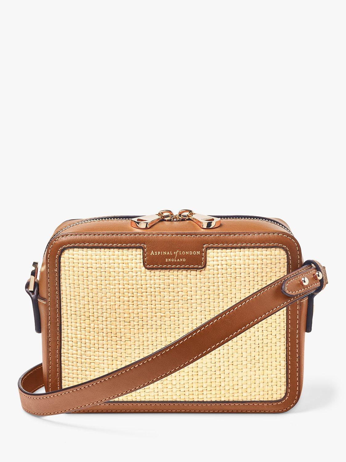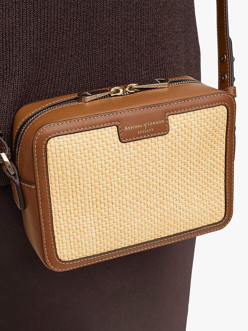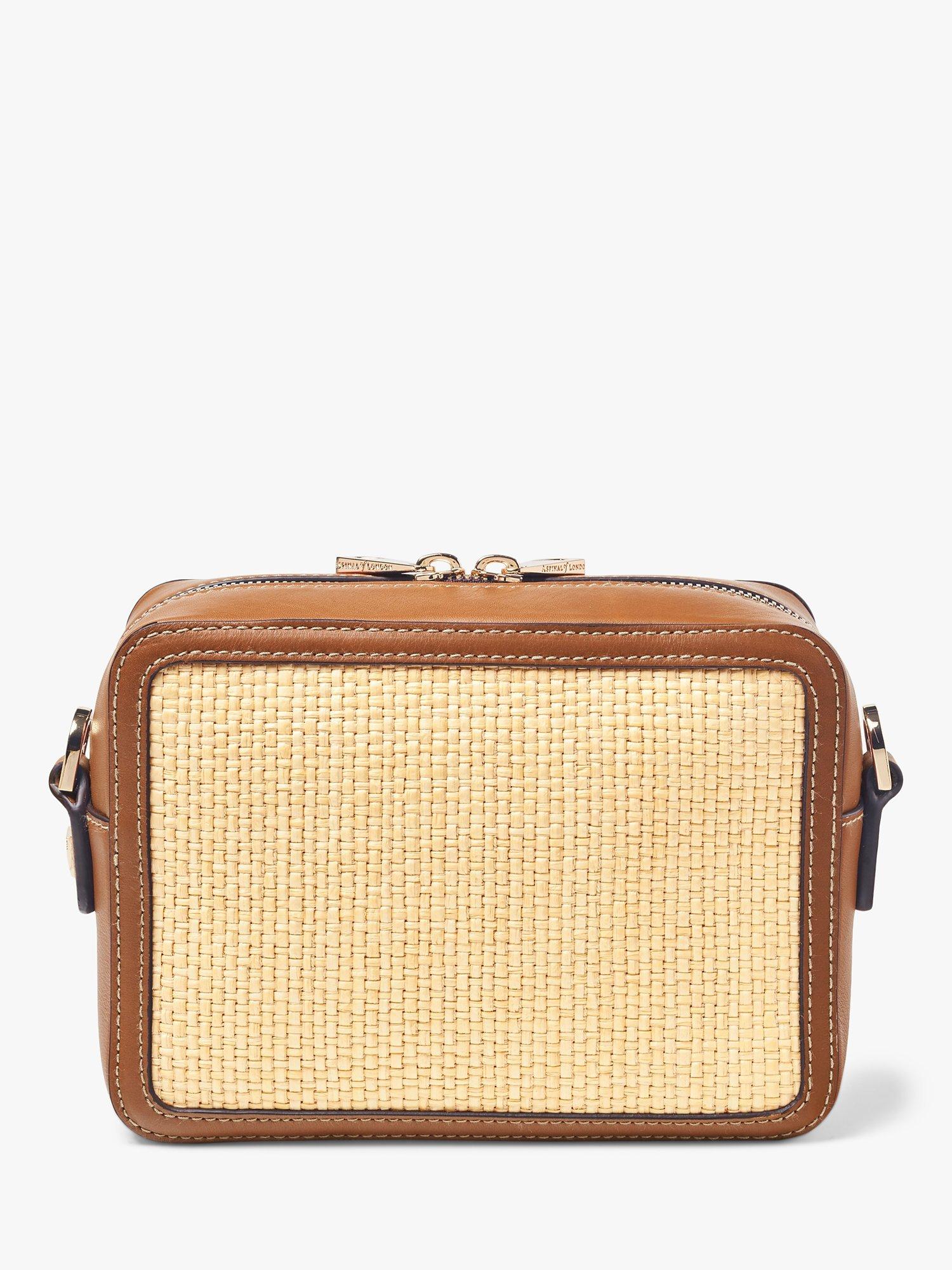 Complementing any laid-back summer wardrobe, Aspinal of London's camera bag encapsulates an effortlessly cool summer aesthetic, taking the wearer from city to sea with ease. Handcrafted from woven raffia, a natural finish provides a refined, classic raffia look. Compact yet practical, the grosgrain lined interior features an open slip pocket. Providing an understated nod to Aspinal's roots, the raffia crossbody bag is finished with a trim of full-grain leather, achieving a textural contrast to the woven body.