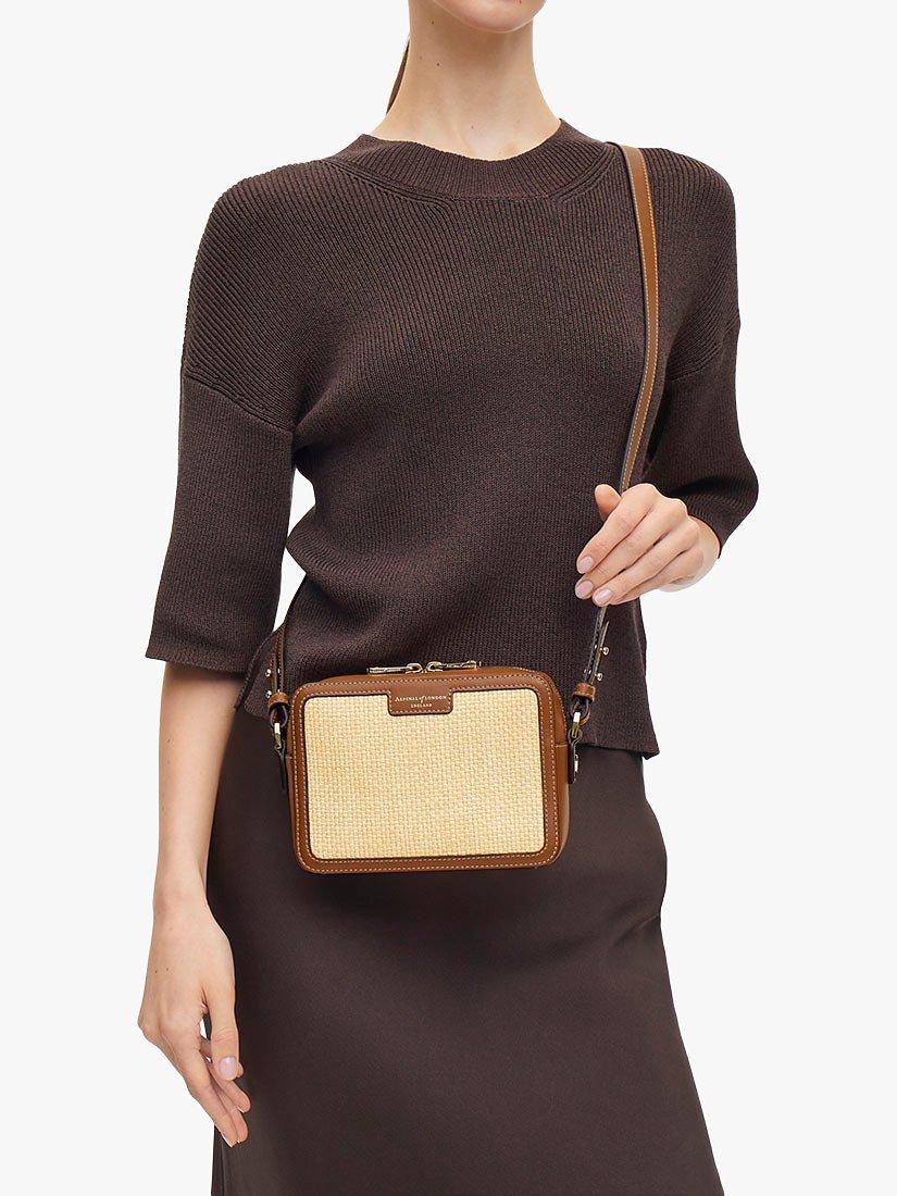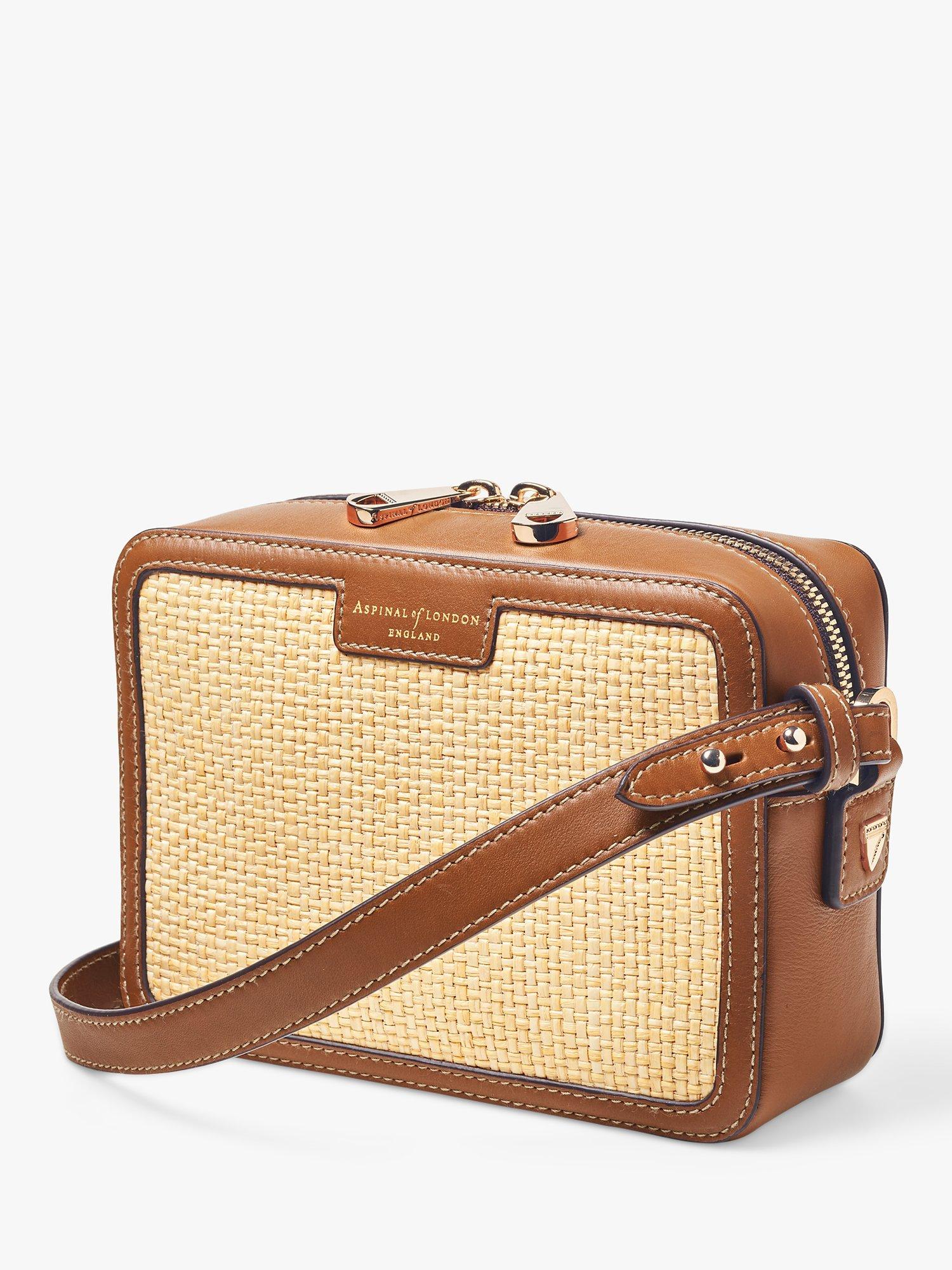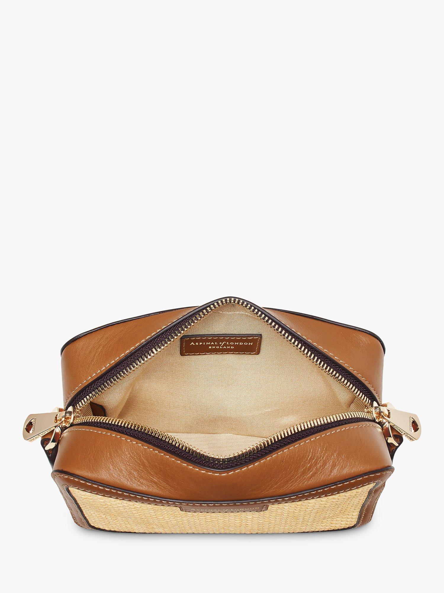 Complementing any laid-back summer wardrobe, Aspinal of London's camera bag encapsulates an effortlessly cool summer aesthetic, taking the wearer from city to sea with ease. Handcrafted from woven raffia, a natural finish provides a refined, classic raffia look. Compact yet practical, the grosgrain lined interior features an open slip pocket. Providing an understated nod to Aspinal's roots, the raffia crossbody bag is finished with a trim of full-grain leather, achieving a textural contrast to the woven body.