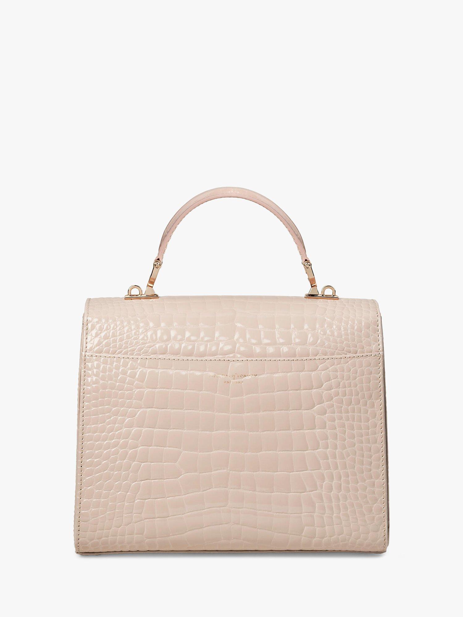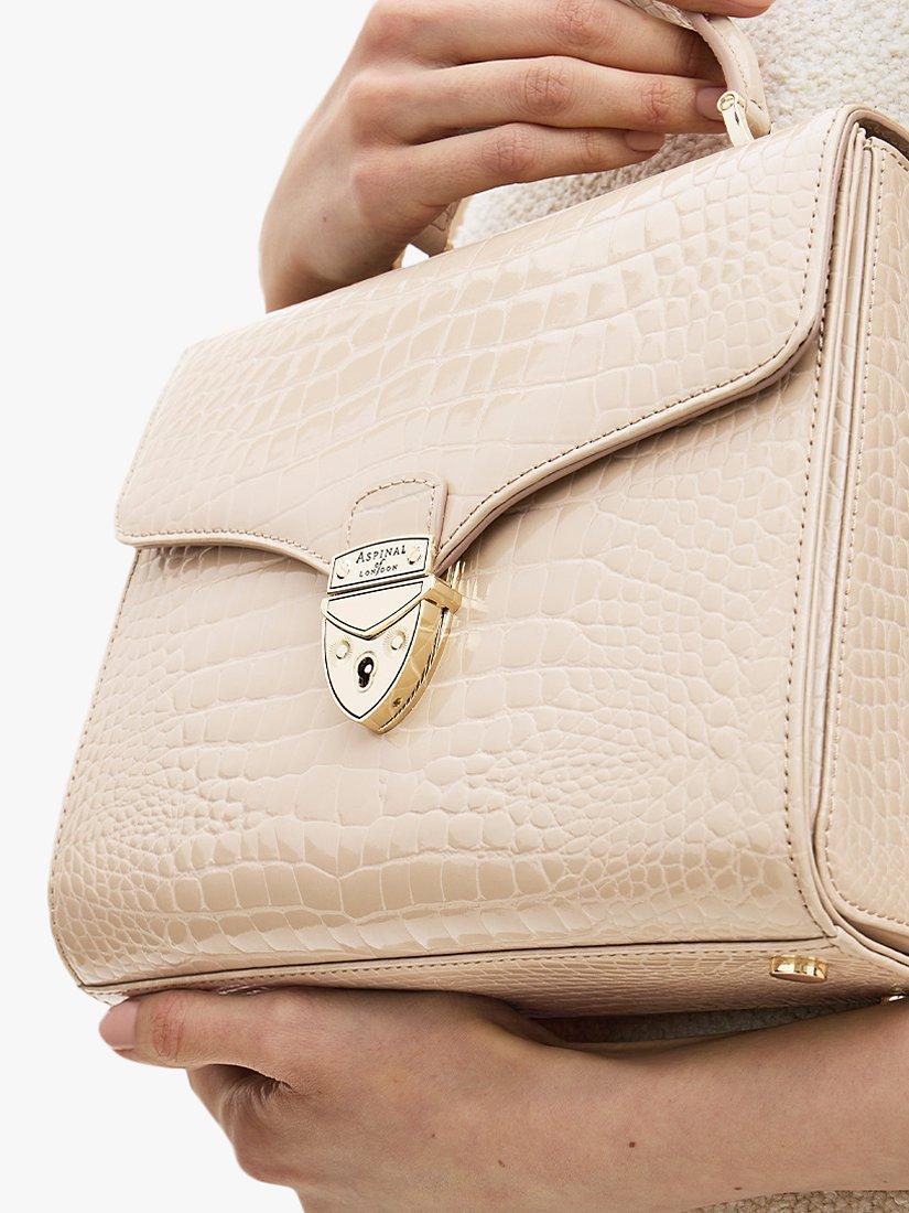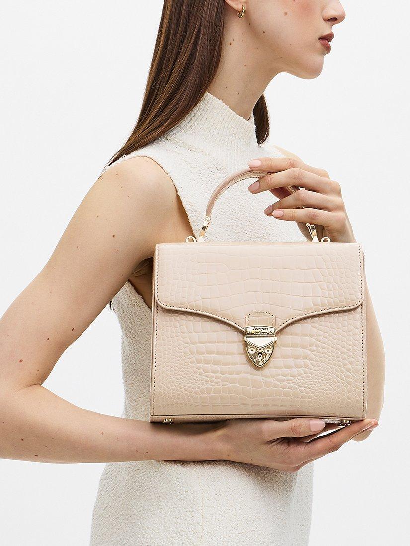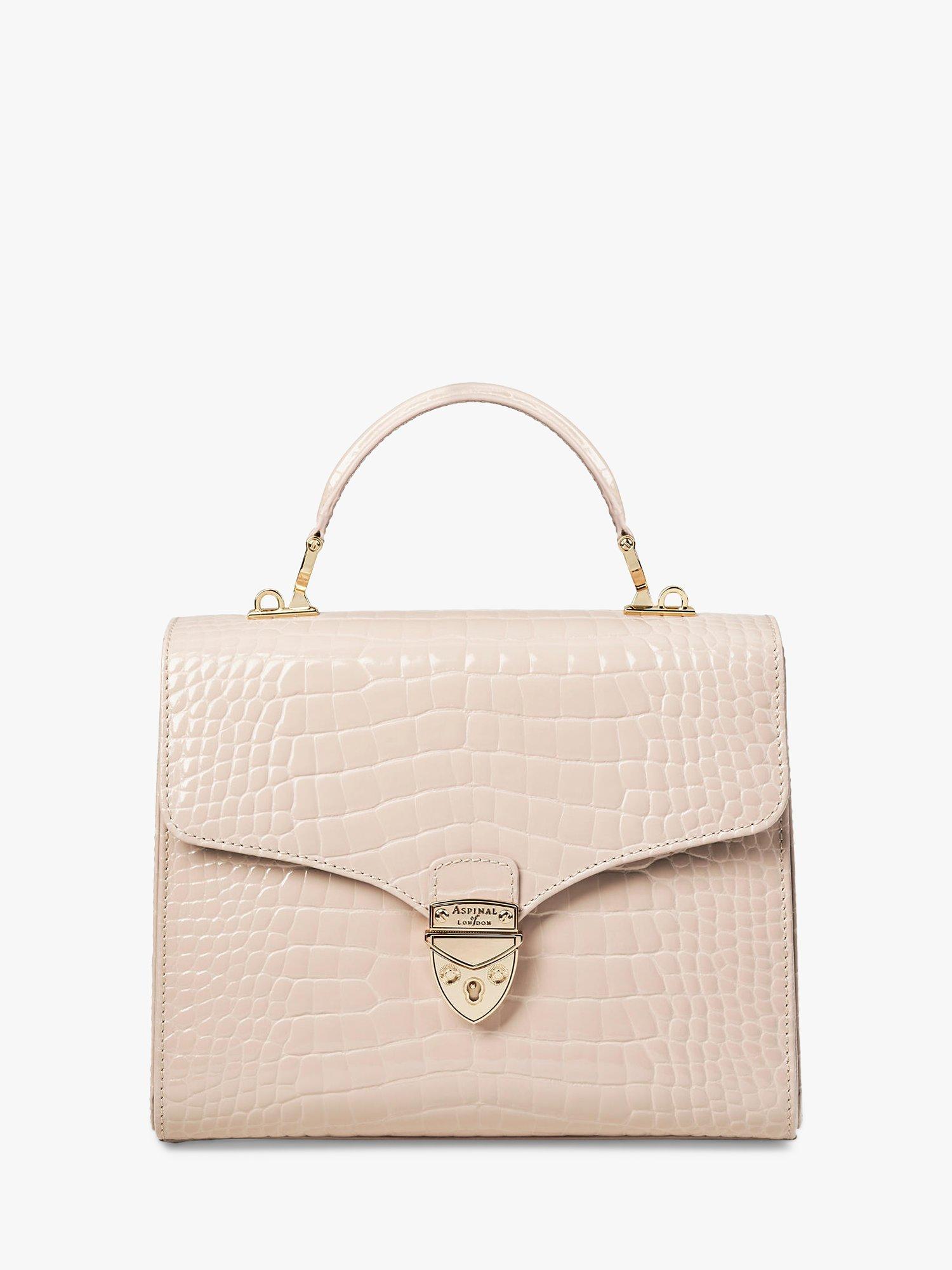 The largest size of this memorable collection, Aspinal's iconic Mayfair offers refined vintage styling with a contemporary flair. Hand-crafted from full-grain leather, it features the signature shield lock synonymous with the collection which opens to unveil a luxurious grosgrain lining with a central zipped compartment and open pockets to either side. Perfect to transition from weekday meetings to evening events, carry by the top handle or wear across the body using the detachable leather strap.