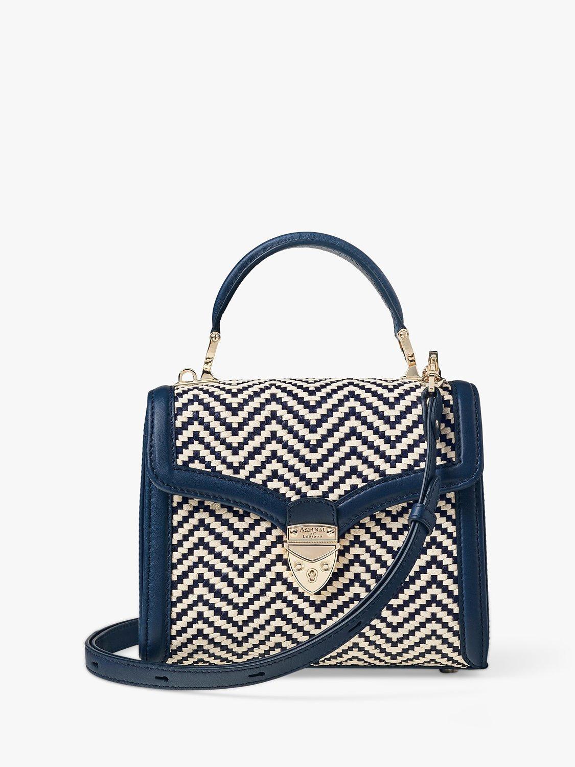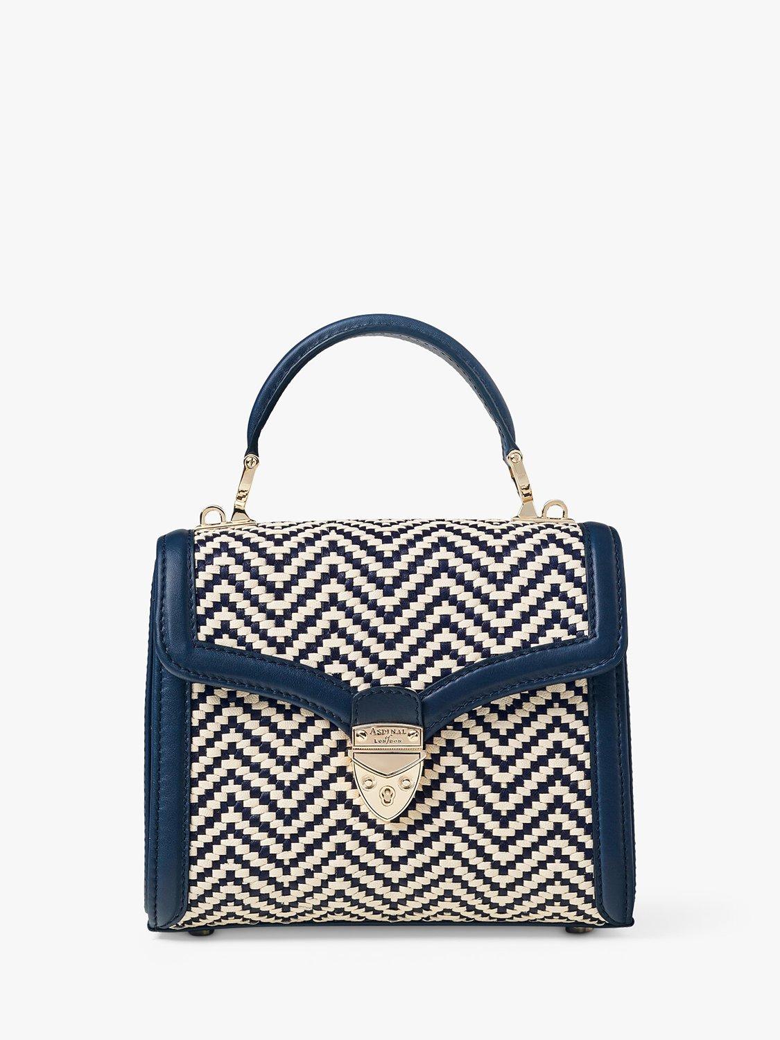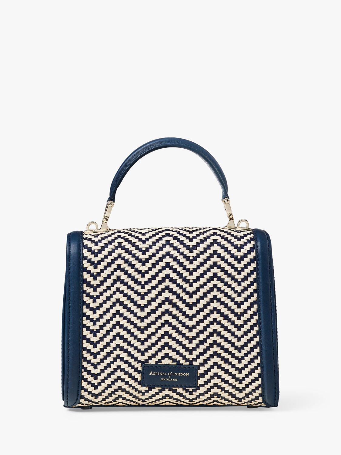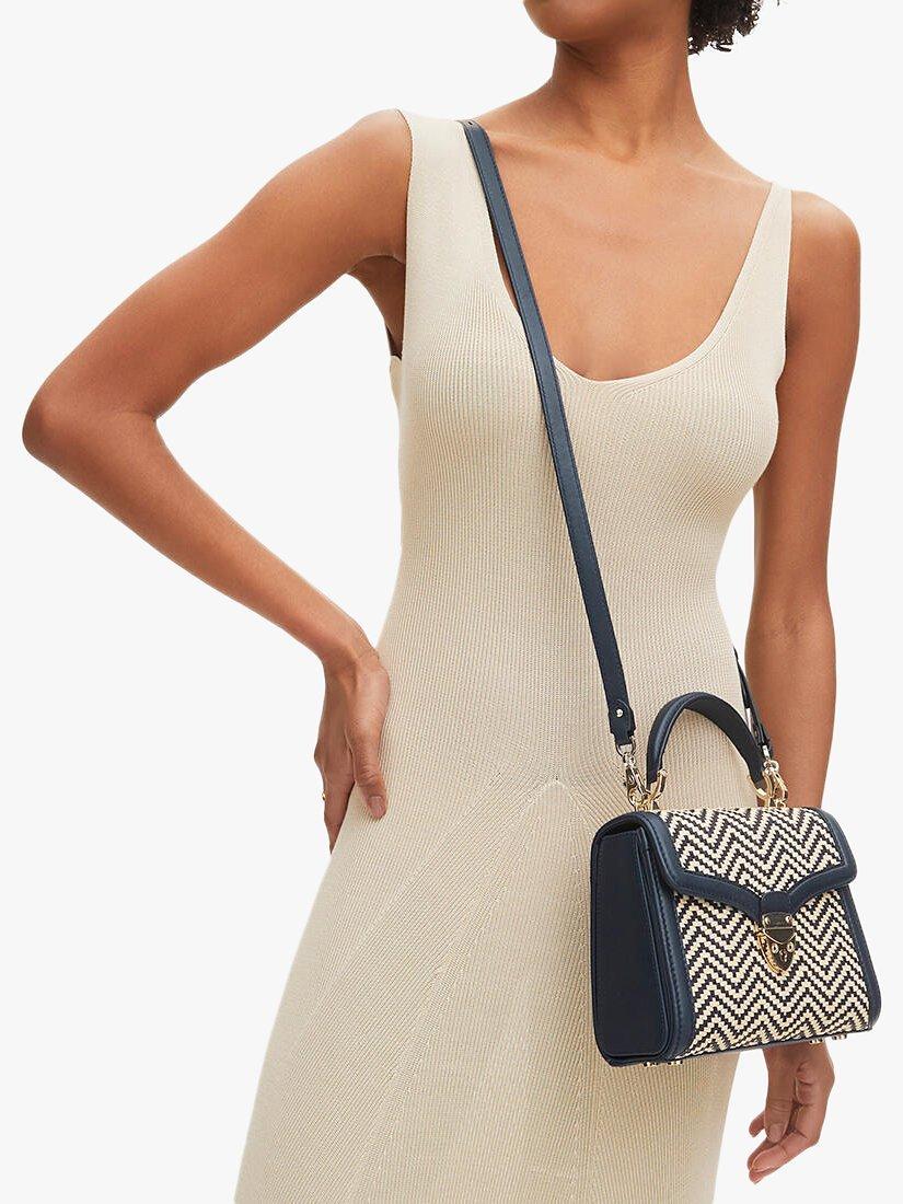Aspinal of LondonMayfair Midi Raffia and Leather Handbag, Navy/Ivory