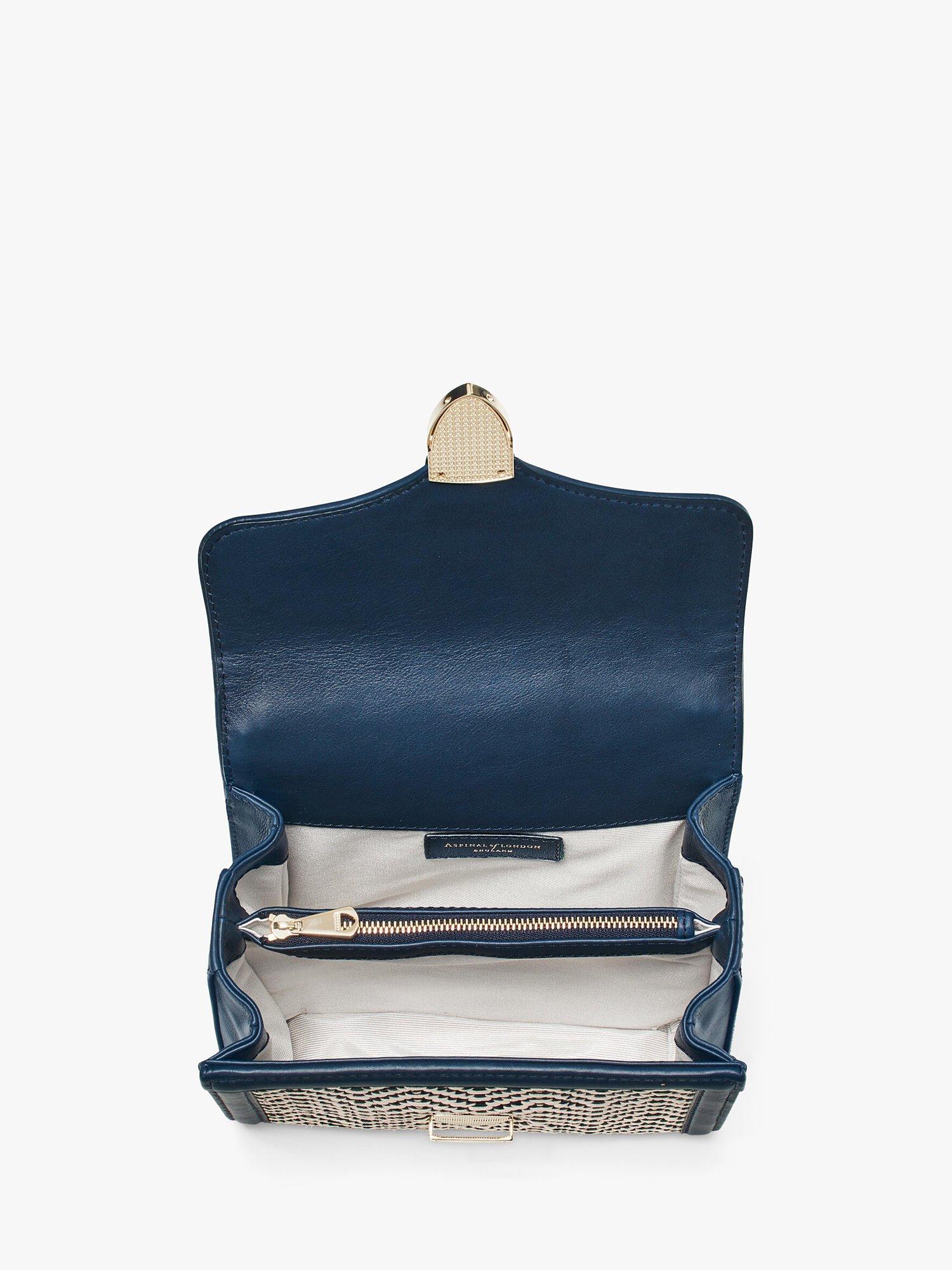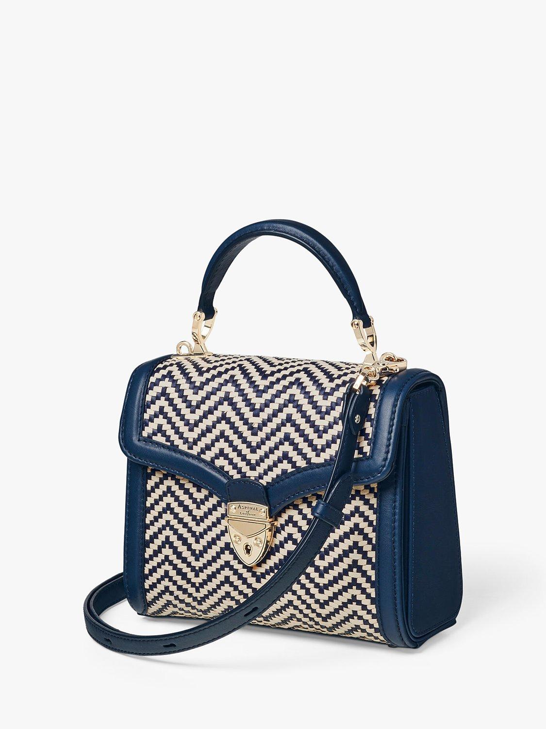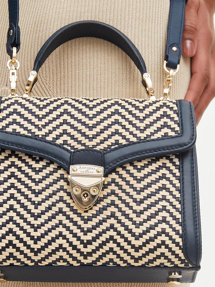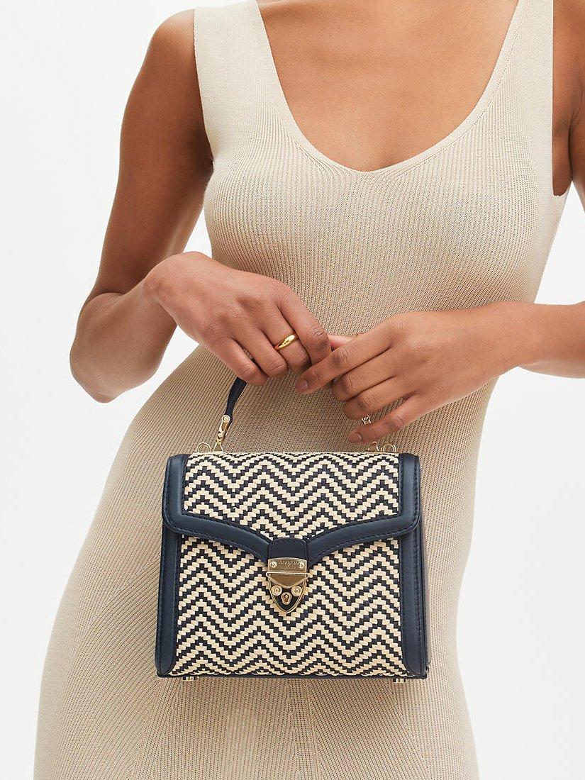 Aspinal of LondonMayfair Midi Raffia and Leather Handbag, Navy/Ivory