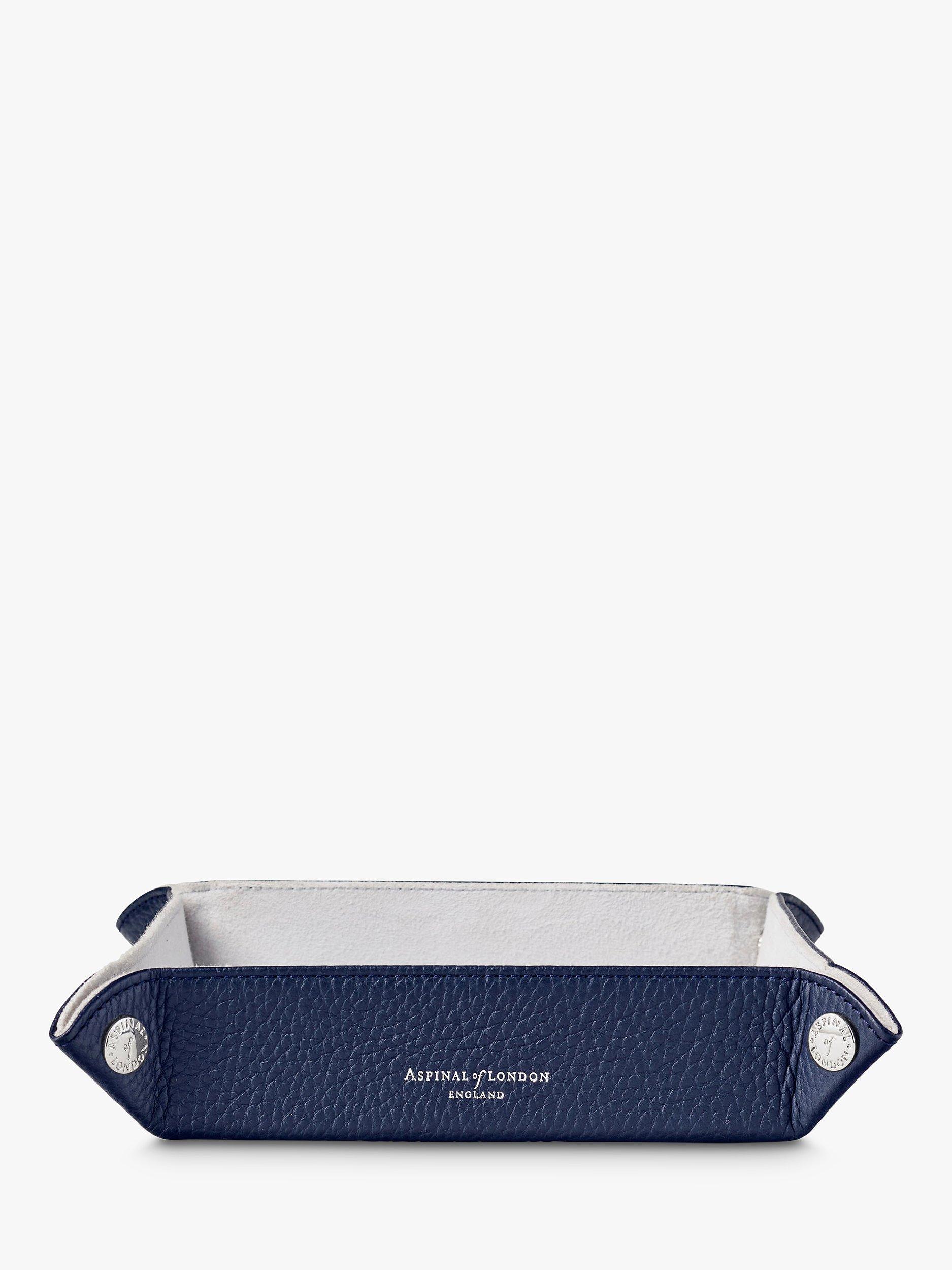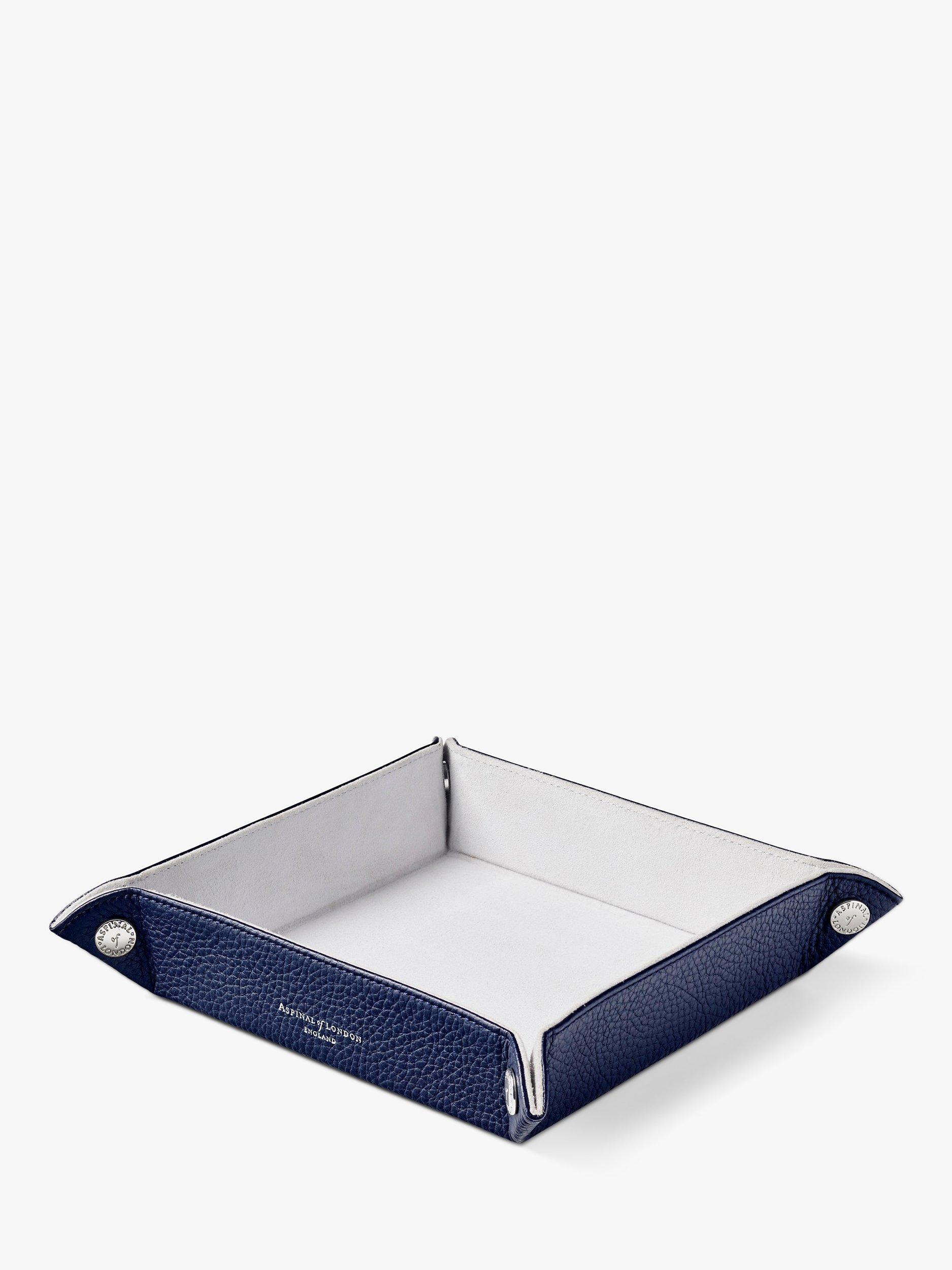 Stay organised in style with the Medium Tidy Tray from Aspinal of London. Hand-crafted from full-grain leather with decorative signature corner stud rivets and lined in luxurious soft suede, it's a must-have piece in which to store the contents of your pockets or everyday jewellery at the end of the day. Perfect for the home or office.