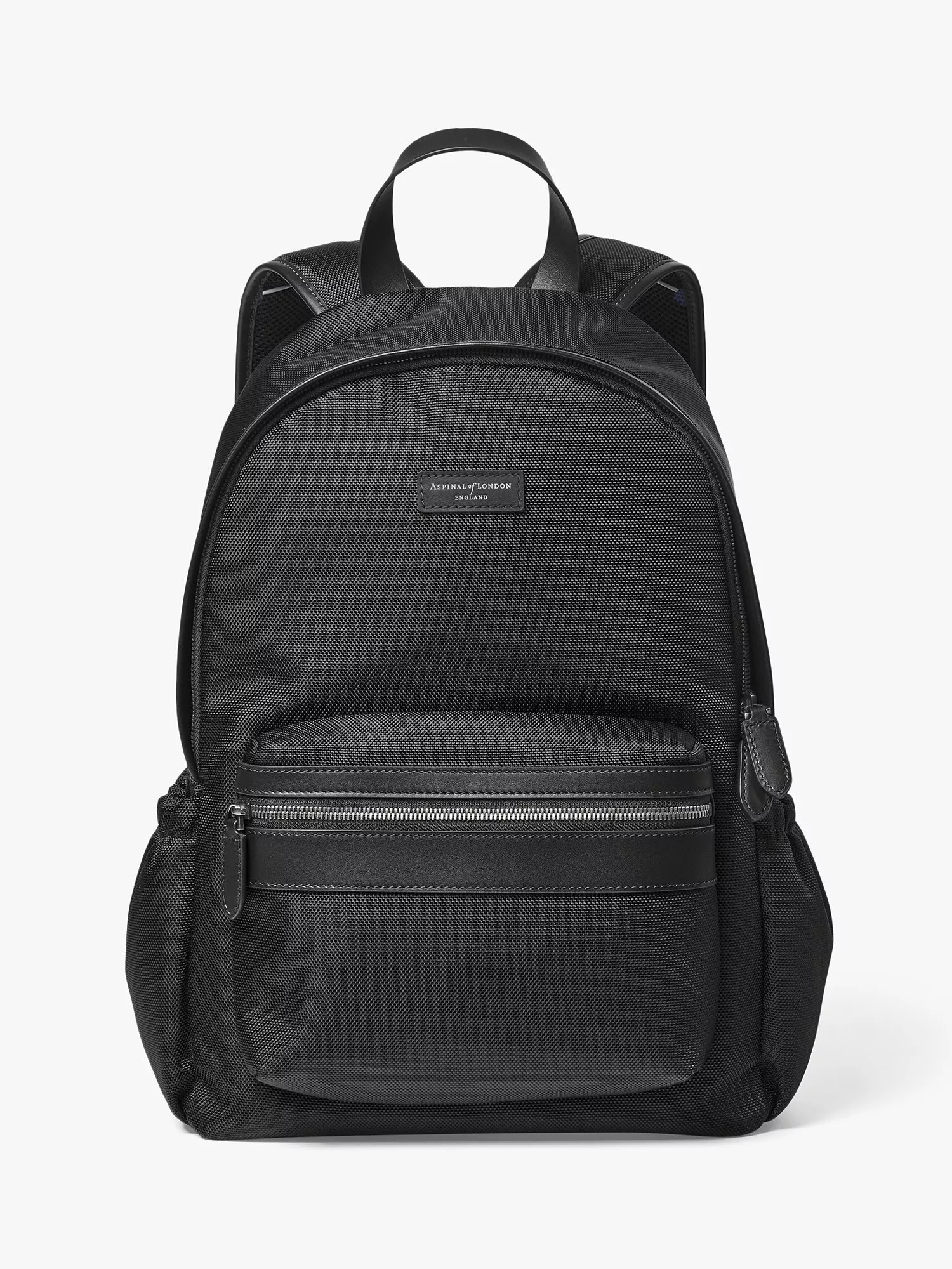 Contemporary and masculine, this Backpack is the stylish must-have for commutes and day trips. Handcrafted from durable, lightweight, tight weave nylon accented by full-grain leather, the deceptively spacious design is ready for whatever the day holds. To the front, a large zip pocket allows ample room for those quick-access essentials, such as your wallet, keys, or headphones.