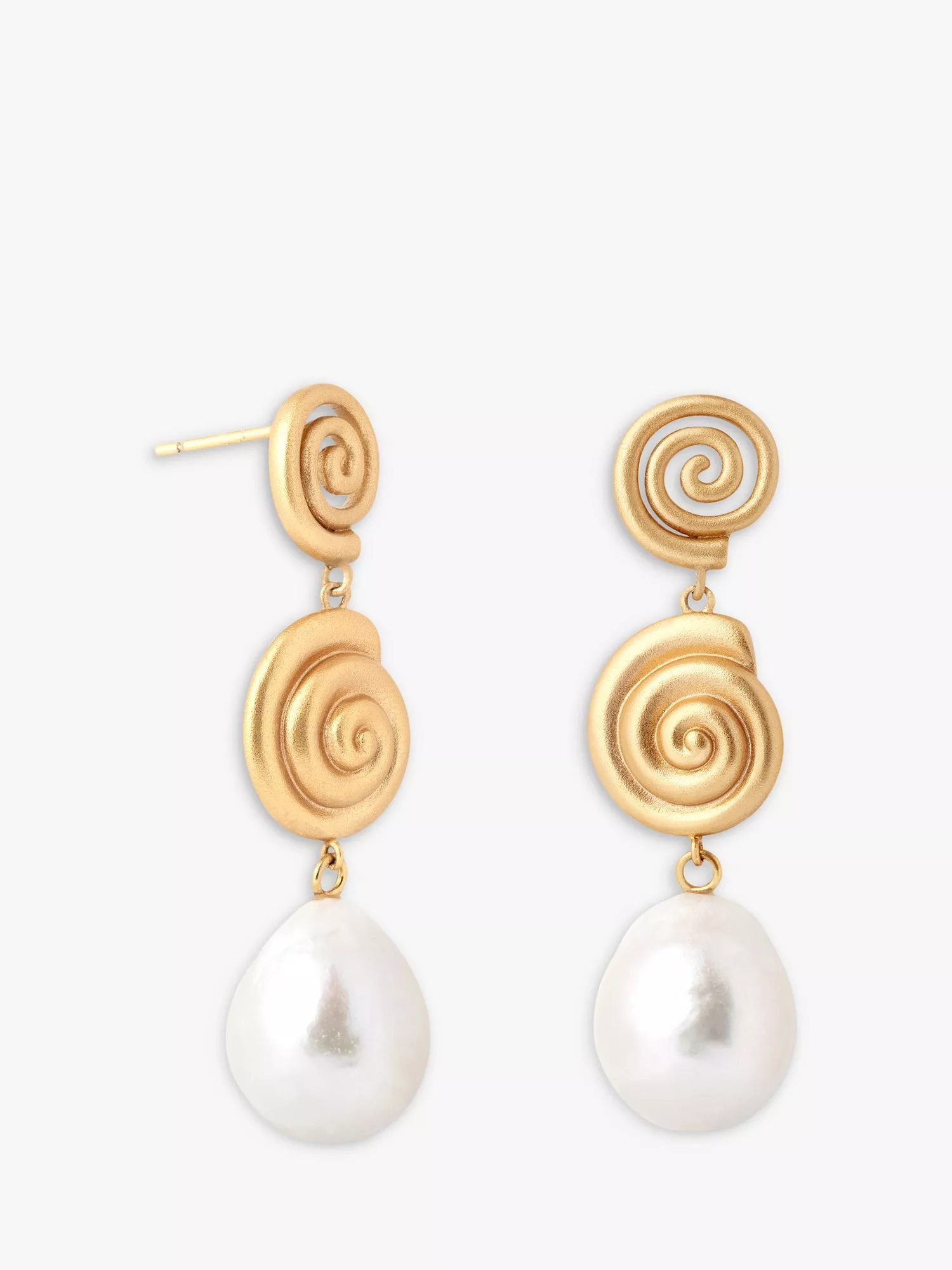 Astrid & MiyuFreshwater Pearl Shell Drop Earrings, Gold