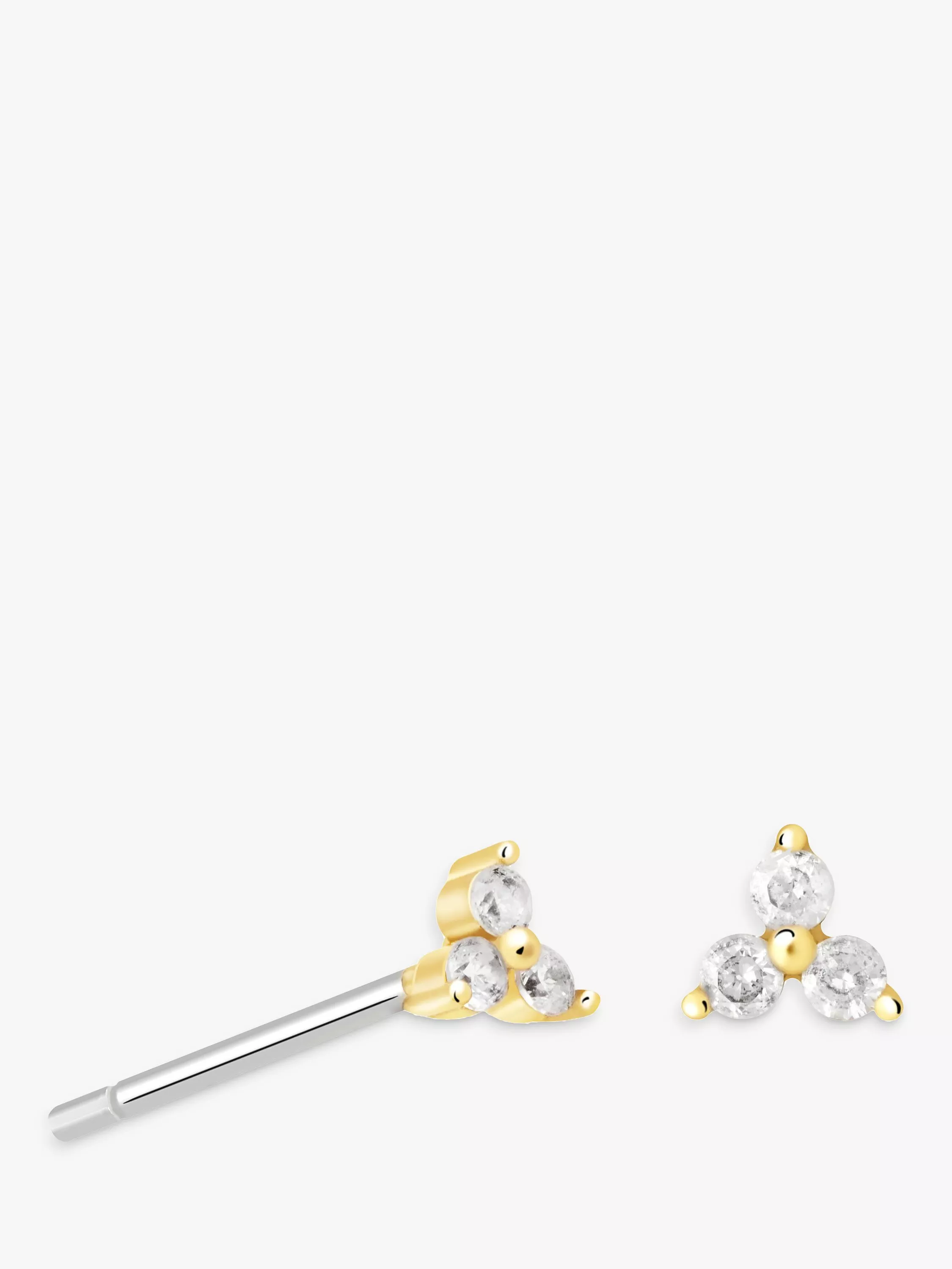Because all the best things come in threes, these triple stud earrings from Astrid & Miyu feature three sparkling cubic zirconias in a simple triangular formation. Super dainty and cute, this style looks great on its own but can also work well with huggie earrings & chunky hoops for a more statement look. Suitable for pierced ears only.