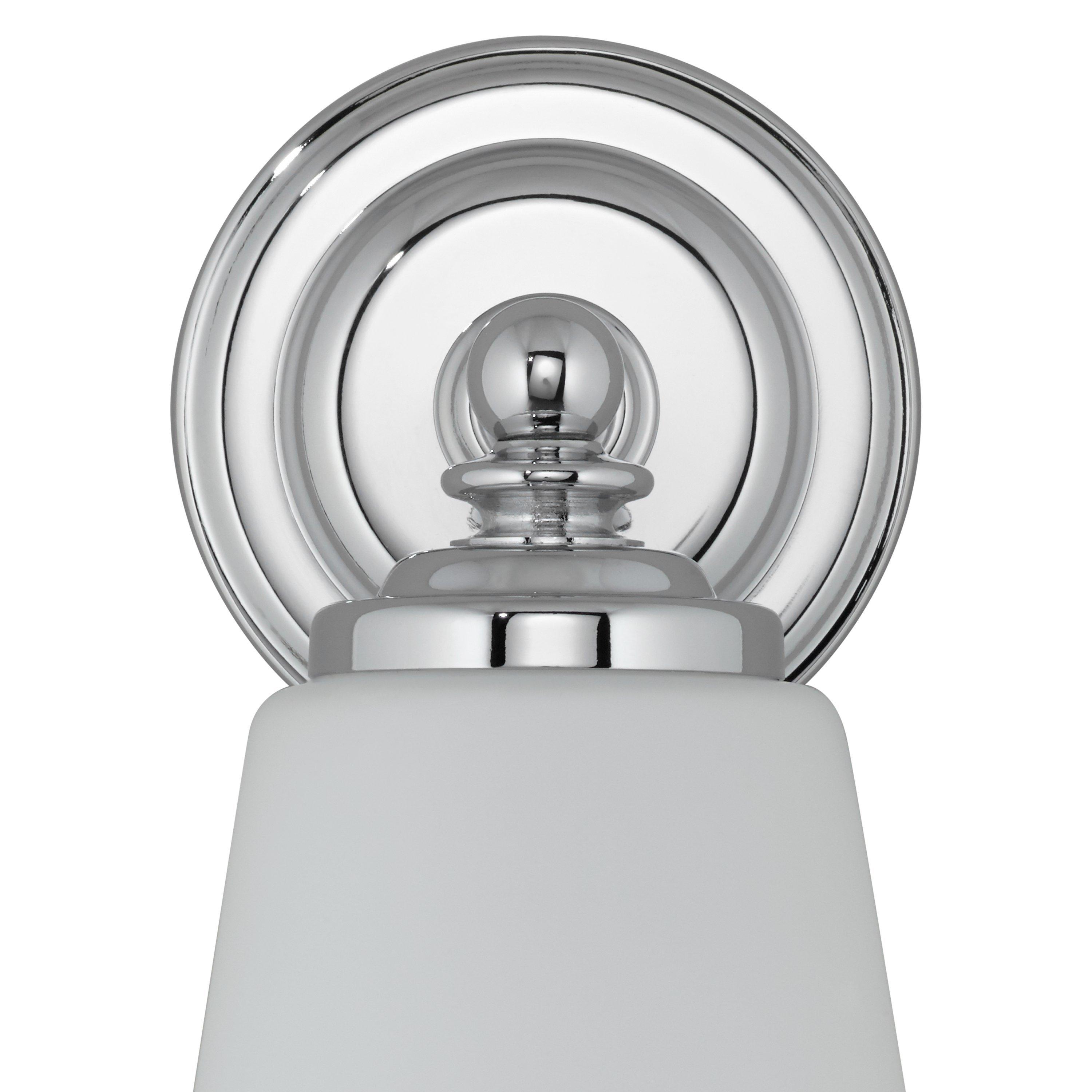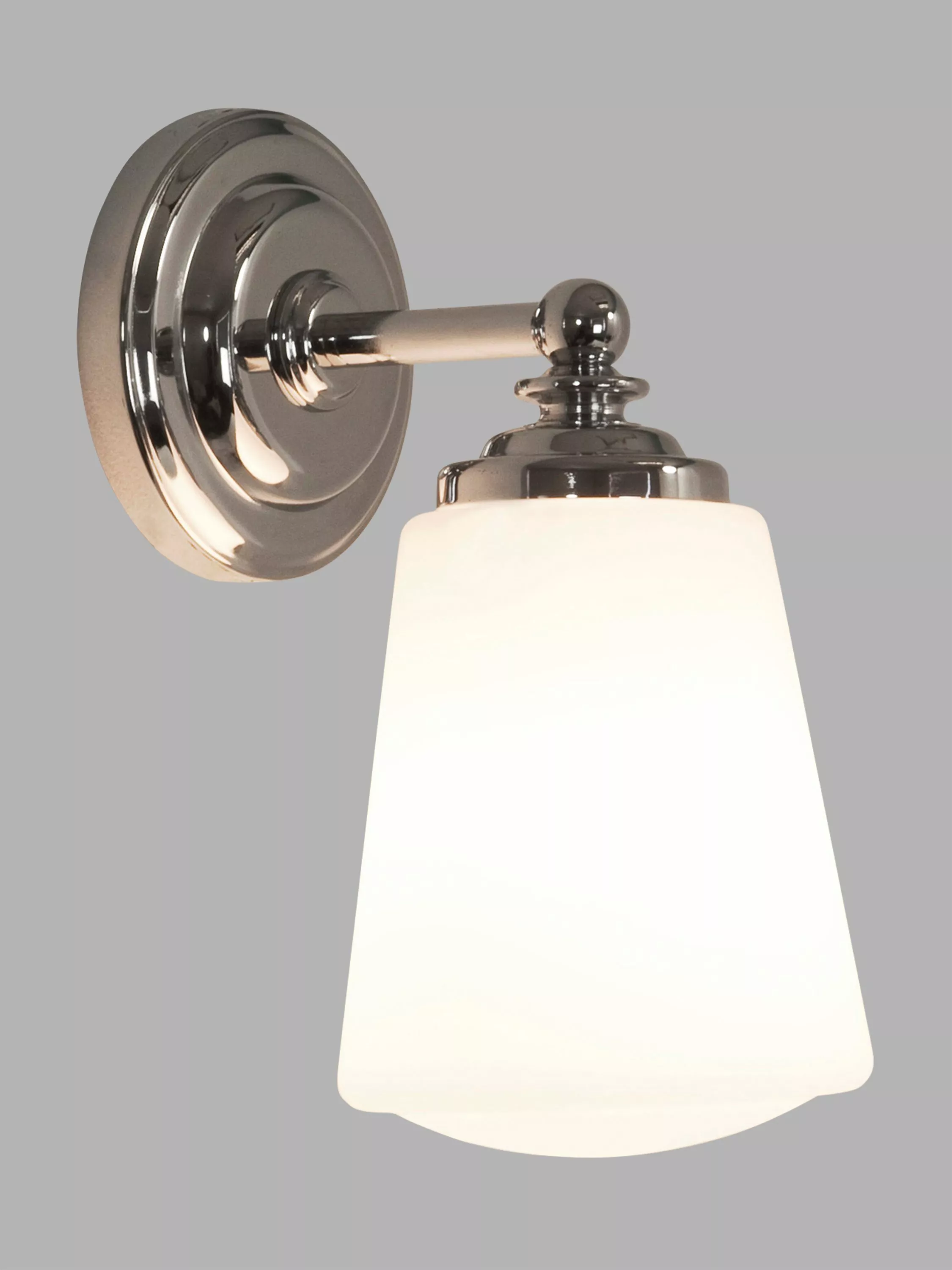Decorative yet unobtrusive, this bathroom wall light takes its cues from traditional lighting designs. It's made from matt opal glass and steel with a polished chrome finish and will add an elegant style to your bathroom, especially when installed in pairs on either side of a mirror. It creates a bright, even and shadow-free illumination while also achieving a soothing ambience.